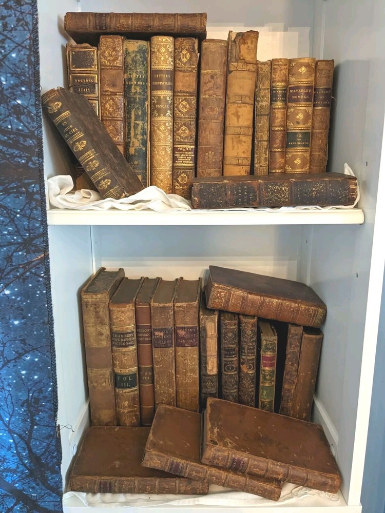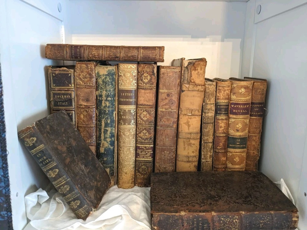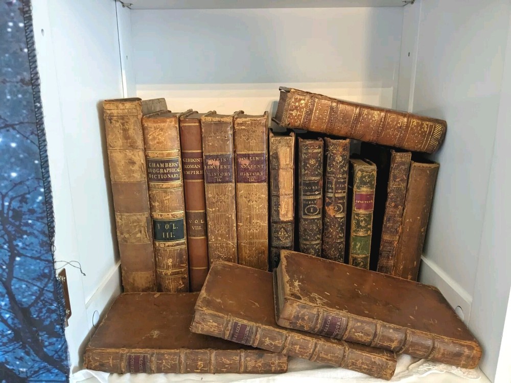 Book conditions vary from acceptable to very good condition and photos show a random selection and not the exact books you will receive. All books are from the 1800s, have leather (fully or partially) and/or marble boarded, and are mostly in the English, German, Spanish, and French language. Keep in mind that covers may be heavily rubbed, scuffed, worn or loose: spines may be scuffed, flaking and missing pieces: and pages may be discolored, loose, folded, or written on by previous owners. However, you will receive a complete book that is 100% readable. Book sizes range from 5" x 3.5" x 0.5" - 10" x 8" x 3".
