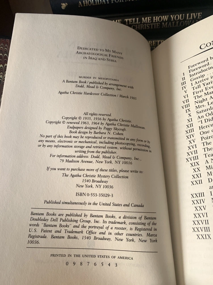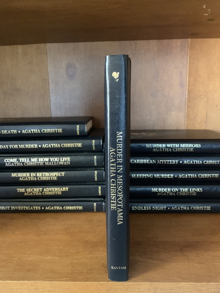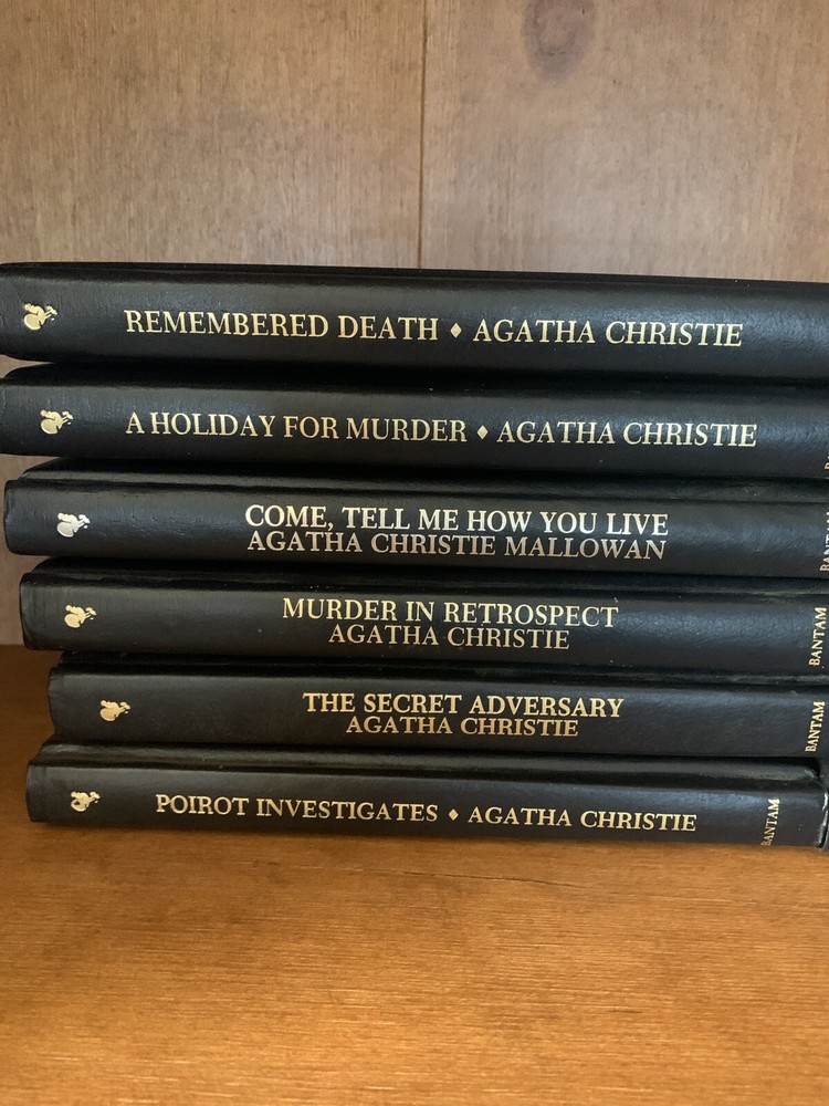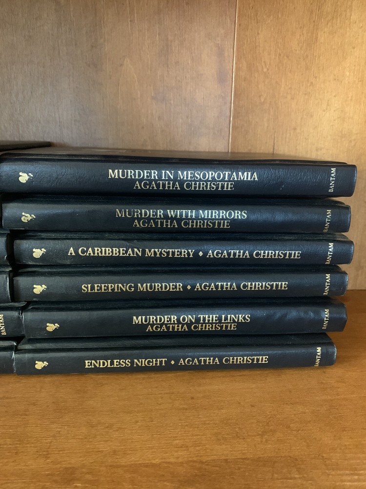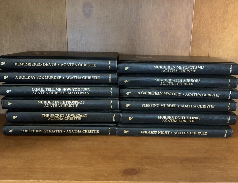 12 The Agatha Christie Mystery Collection 1985 HB Books Leatherette Bantam Includes: The Secret Adversary 5/1985 Murder in Retrospect 11/1985 Poirot Investigates 4/1985 Remembered Death 3/1985 A Holiday for Murder 8/1985 Come Tell Me How You Live 11/1985 Sleeping Murder 9/1985 Murder on the Links 10/1985 Endless Night 12/1985 Murder in Mesopotamia 3/1985 Murder with Mirrors 4/1985 A Caribbean Myster 5/1985