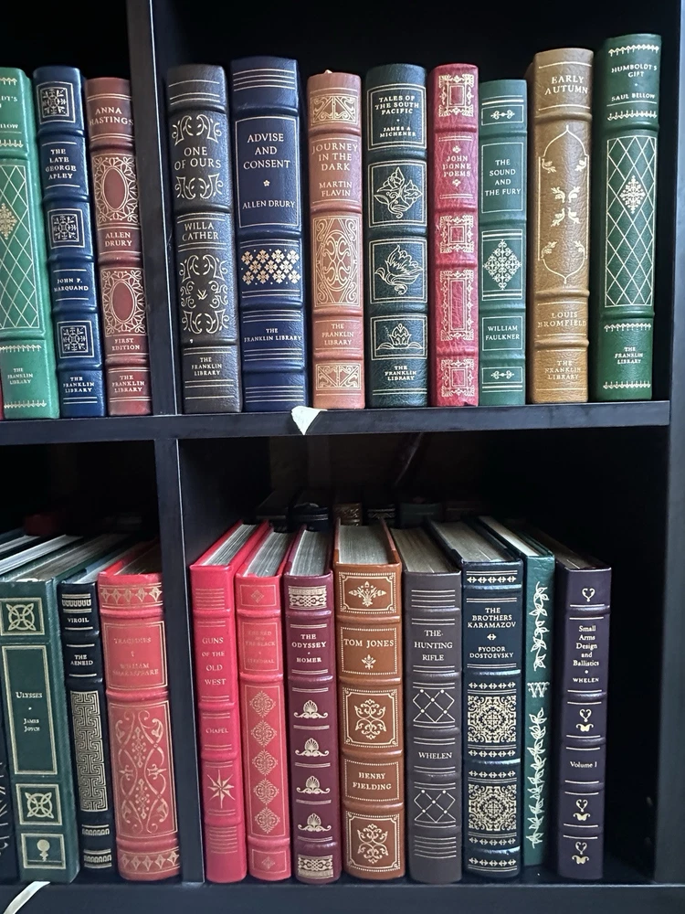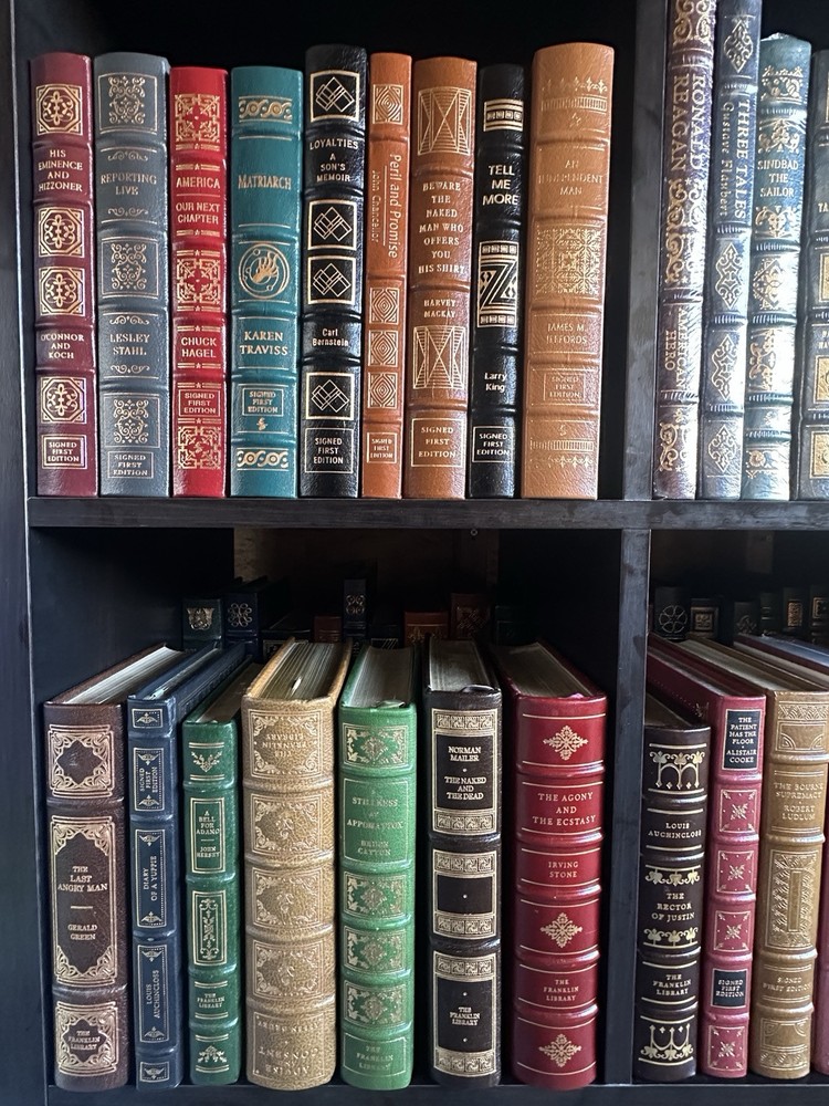 local pick up or buyer pays shipping. shipping cost is only for 10 books only the rest of the books buyer pays shipping please contact me for any questions. 19 signed franklin 15 signed Easton press. Many books are sealed and many other signed. Condition good to sealed.