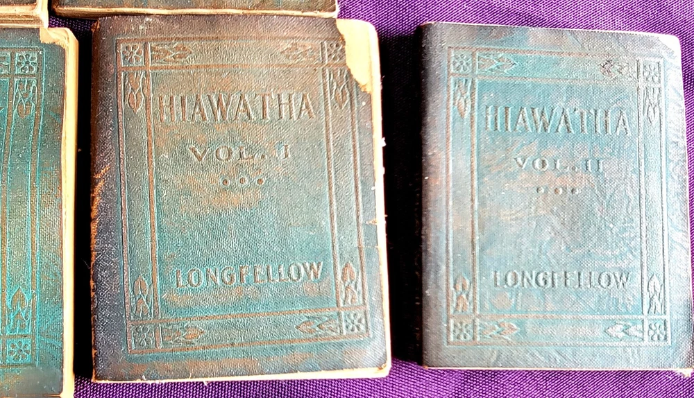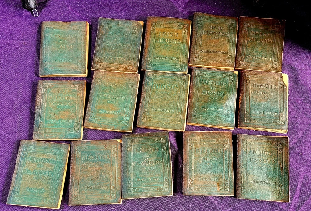 15 Antique Mini Books Little Leather Library Robert K. Hass, Inc. Publishers.. Hiawatha vol 1&2 - Longfellow Ghosts- Henrikinse Old Christmas - W. Irving A Comedy of Errors - W Shakespeare Dream Children - C Lamb Irish Melodies - T Moore Christ in Flanders - Balzac Contessa de St. Geran - Dumas Memories of President Lincoln - Whitman Land of Hearts Desire - Yeats Lancelot and Elaine - Tennyson A Tilly Loss Scandal - J Barrie Inferno vol 2 - Dante Pippa Passes - R Browning Shipping included All books in fair condition Questions please ask Peace