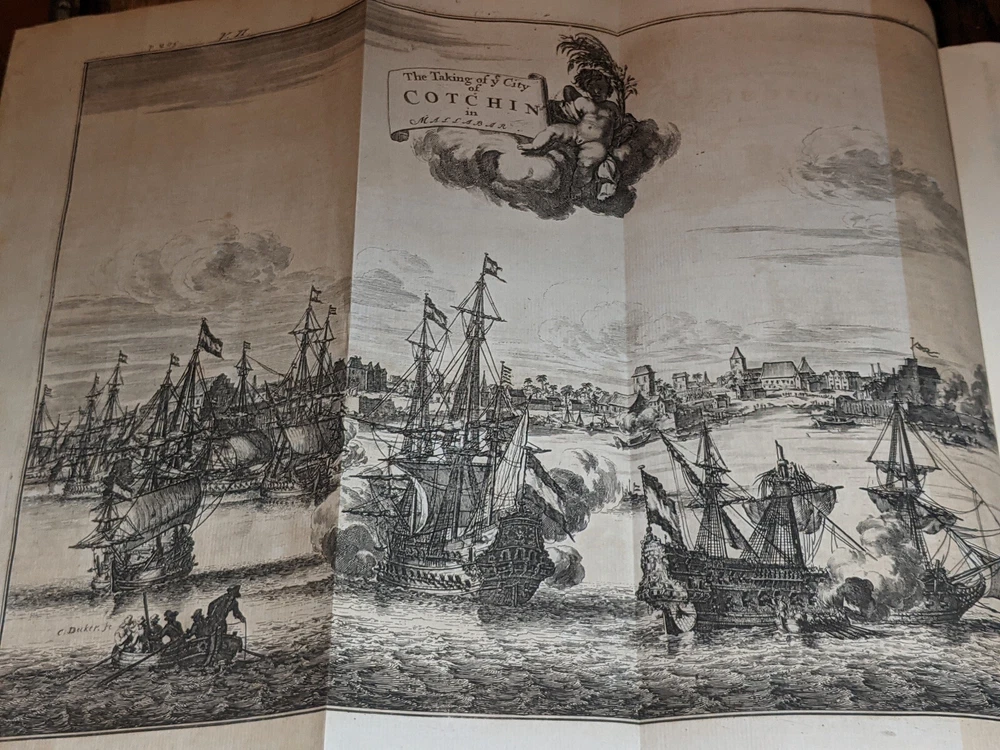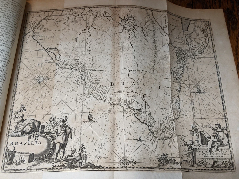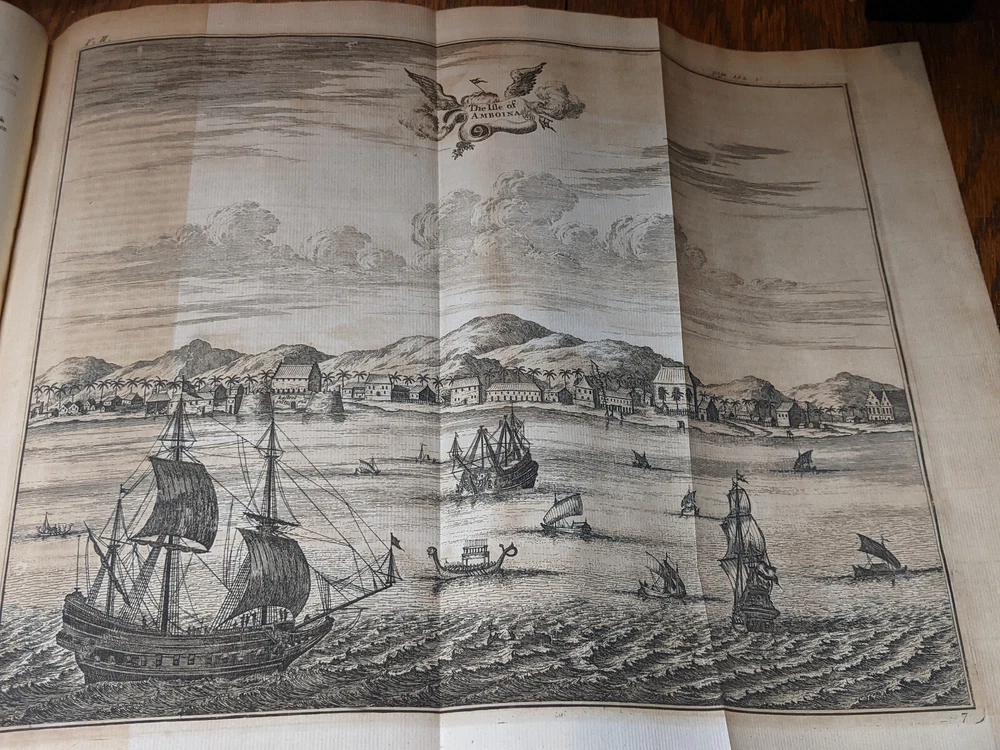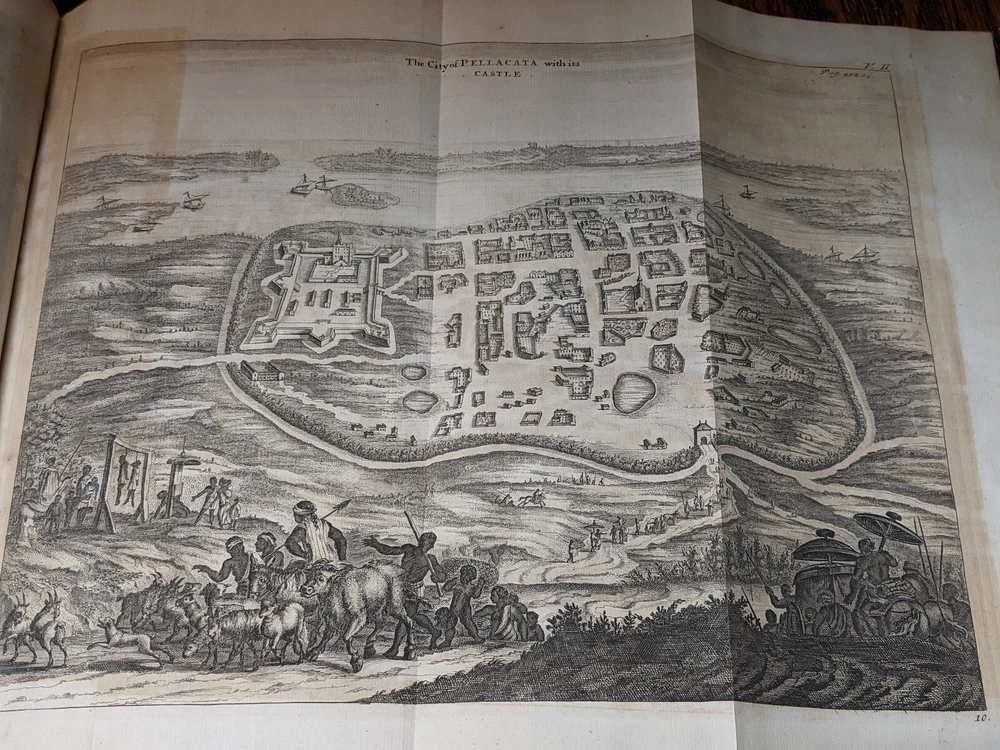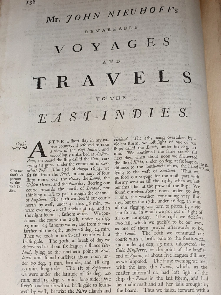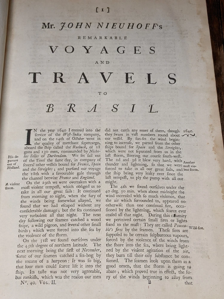 Important and rare offering "A Collection Of Voyages and Travels, Some Now First Printed from Original Manuscripts, others Now first Published in English". This is Vol. II of Six Volumes. Illustrated with a great number of useful Maps and Cuts, Curiously Engraven. The Third Edition. Printed by Mess. Churchill, For Henry Lintot, and John Osborn, 1744. This Volume II contains: Voyages And Travels Into Brasil (Brazil) And The East Indies..Containing An exact Description of the Dutch Brasil, and divers parts of the East Indies; their Provinces, Cities, Living Creatures, and Products, the Manners, Customs, Habits, and Religion of the Inhabitants...By Mr. John Nieuhoff. Publisher's full leather covered boards, 6 raised bands on spine. 744pp. Illustrated with numerous engravings, many fold-outs, maps. These are undoubtedly the most magnificent illustrations contained in any book I have offered in 20+ years. Measures 14" x 9 1/2". This is a very valuable collection, both for its range of coverage and for the fact that it gives the original accounts." (Hill). This second volume comprises voyages to Brasil (Brazil), the East Indies, Africa, East Asia, and North America. The second volume contains the first English edition of Johannes Nieuhof's Voyages and Travels, into Brasil, and the East-Indies, first published in Dutch in 1682. It is divided into two parts; the first being concerned with Nieuhof's stay in Brazil and the second relates to his voyages in the East Indies and South Africa. The second part on his voyage to the East Indies, contains a detailed description of areas and pearl fishing, also Batavia, Malaya, etc.. Also included in this volume are: Travels, Adventures and Observations of Captain John Smith into Europe, Asia, Africa, and America 1593 to 1629. Two Journals: The First Kept by Seven Sailors in the Isle of St. Maurice in Greenland 1633-1634. Captain Thomas James's strange and dangerous voyage in his intended discovery of the northwest passage into the South-Sea, in the years 1631-32. The Life of Christopher Columbus, and the History of His Discovery of the West-Indies. Pyramidographia: or, A Description of the Pyramids in Egypt. An Account of Cochin-China. etc. RARE. The 6 volume set listed elsewhere for $41,000. Volume is in good condition. Pages are surprisingly primarily clean & bright; minor/moderate damp staining on fore-edge margins. No musty, loose, or missing pages, plates, or maps. Some illustrations display tanning/foxing. Front board is detached, rear board loosely connected. Wear on corners and edges of boards. A couple cracks along spine. Some soiling and rubbing on main boards. Smoke-free home.