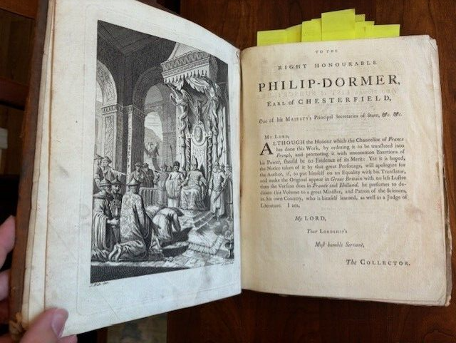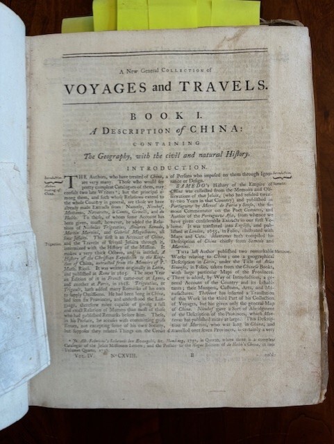 A NEW GENERAL COLLECTION OF VOYAGES AND TRAVELS; Consisting of the Most Esteemed Relations, Which Have Been Hitherto Published in Any Language, Comprehending Everything Remarkable in Its Kind, in Europe, Asia, Africa and America. Volume IV only! By John Green Published: London, 1747. 751 pp. + index. Hardcover in full leather binding. Board are rubbed and loosening. Lacks the title page, text starts with the dedication page. Has 62 of the 69 plates called for (ie 7 are missing). Some of the plates have odd fold lines and may be chipped or creased. However, the plates present (especially the non-folding ones) appear to be in good condition. Full typed list of plates present / absent included in photos on listing. I've done my best to describe the book, but if you have additional questions, please don't hesitate to send me an e-mail.