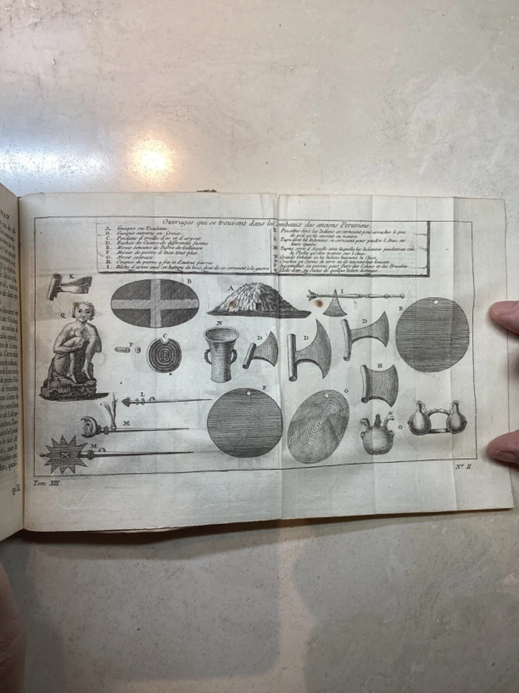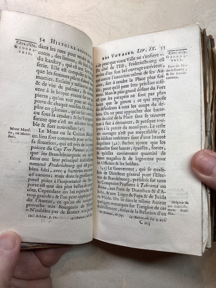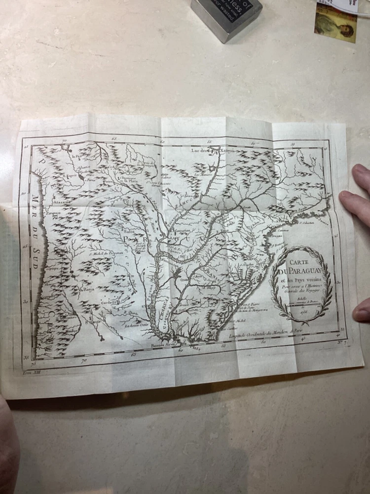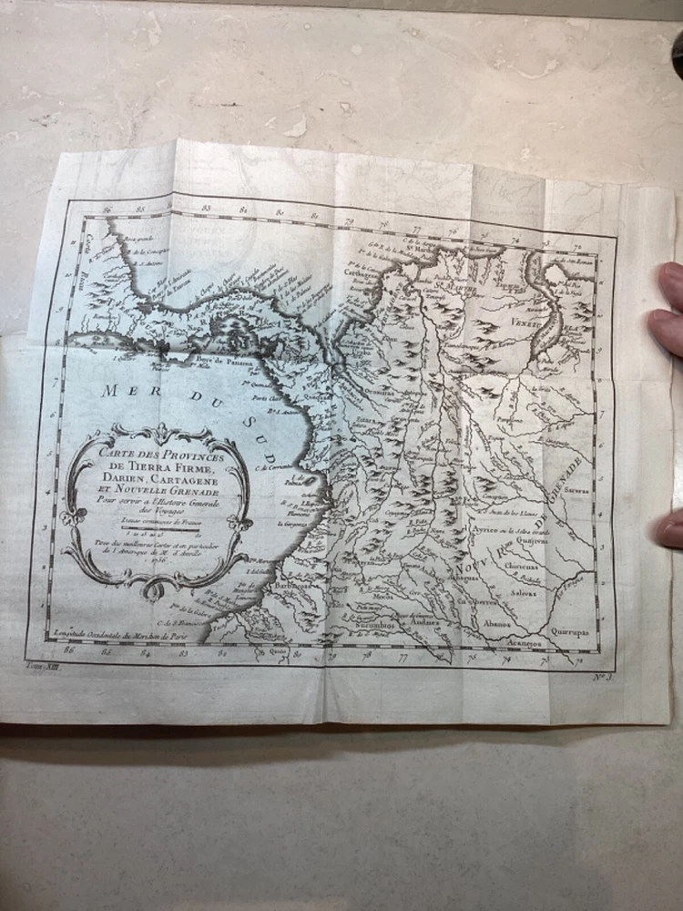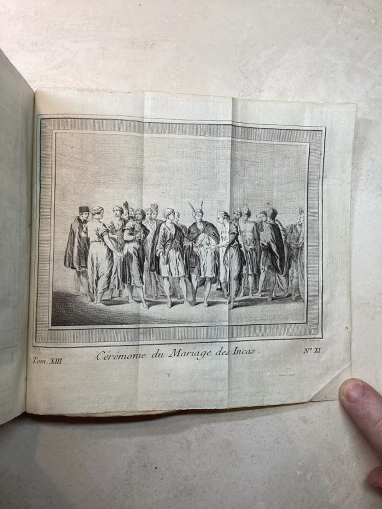 Travel back in time with this unique piece of history. The Histoire Generale des Voyages, Ou, Nouvelle Collection 1748 is a fascinating book that explores the adventures of explorers and travelers in Europe. Written by Mer and Terre, this original book in French is a great addition to any collection. The binding of this book is made of leather and it was published in Paris by Quai des Augustins. It covers subjects such as exploration, travel, and history. This is a perfect item for collectors interested in antique books. Don't miss the chance to own a piece of history. the book is an excellent condition. Overall, all of the maps and pull out diagrams are present and an excellent condition as well. The front cover, and back cover of the book have significant wear as evidenced in the pictures, but the binding and the covers are firmly attached. The book has no water damage, foxing or wormholes the pages are bright and clear. There is no writing in the book of any kind. The book is not X library and is a unique piece of history.