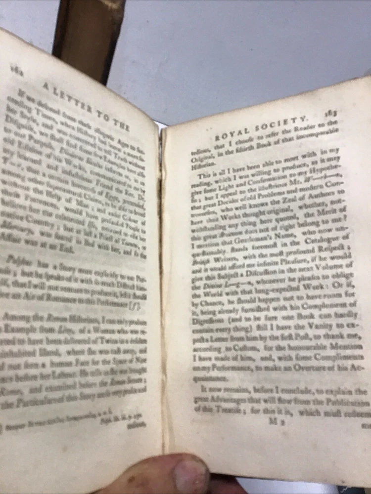This 2-volume set of "Fugitive Pieces" by various authors is a must-have for any collector of antique books. Published in 1765 by J. Dodsley in London, these leather/hardcover books are in English language and cover a range of topics. The books are perfect for anyone interested in sets and will make a great addition to any collection. The binding of these books is stiff but intact and the pages are clean without any tears or folds. The author has done a great job of collecting and organizing the information in a logical manner. Overall, this is a fantastic set of books that any antique book collector will love. 1765 Fugitive Pieces on Various Subjects 2 Volumes Set, Robert Dodsley Fugitive Pieces, on Various Subjects. By several Authors. I. Crito: or a Dialogue on Beauty. II. An Account of the Emperor of China's Gardens, near Pekin. III. Deformity. By William Hay, Esq. IV. Lucina sine Concubitu. Address to the Royal Society. V. A Modest Defence of Gaming. Vi. The Pretty Gentleman. VII. The Polite Philosopher. VIII. Plan of an Essay on Delicacy. [Volume I] I. A Vindication of Natural Society. II. History and Antiquities of the Ancient Villa of Wheatfield. III. Fragments of ancient Poetry, collected in the Highlands of Scotland. IV. An Account of Russia, in the Year 1710. V. A Journey into England. By Paul Hentzner, in the Year 1598. VI. A Project for raising an Hospital for decayed Authors. VII. A Parallel, in the Man [DODSLEY (Robert)], ed. Published by London: Printed for J. Dodsley., 1765 Size 4.7/8” x 7.1/8” 352 & 357 pages. Binding is stiff but intact, separation on cover multiple imperfections as seen in picture being 255+ years old. Bookplate of Sir Ashton Lever who was a businessman and collector; friend of Captain James Cook. His property included coal mines and Manchester real estate; had a great interest in ornithology. In the 1760s and 1770s, acquired an enormous collection of birds and other natural history. He also collected ethnographical material, owning the largest group of objects brought back by Cook's expeditions. Keep in mind the shipping price also covers handling fees, packaging materials & time, not just postage. See our eBay store for thousands of our other items. B12D