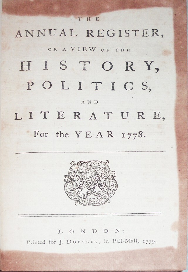 This week, we will be listing a Wonderful Collection of Antiquarian Books and Historical Memorabilia, including numerous Annual Register volumes. Please, check out our other items to save of shipping. Good Luck! This is a Great, Rare, Early "The Annual Register, or A View of The History, Politics, and Literature, For The Year 1778 " book . This wonderful Old piece has a Great, Early design, with a Gold Gilt embossed Leather binding, is Loaded with 500+ pages of Historical information & the News of the day, is an Original, Antique piece and Rare to Find. This includes: American Revolution : General George Washington Crosses The Delaware River Battle of Saratoga Slaves POW's Raising British Regiments Debates in Parliament General Horatio Gates Hostile Army in Philadelphia General Henry Clinton General William Howe General Lee Continental Congress New York City Evacuation of Philadelphia Sandy Hook Island Toulon Squadron French Fleet at Rhode Island D'Estaing Boston Nantucket Treaty with France Benjamin Franklin President John Hancock President Henry Laurens And Lots More! Other : Voltaire Sir Walter Raleigh Indians/Native Americans of North America - Manner of Making War Fossils Fishing - Newfoundland, Canada Sleepwalking Oliver Goldsmith And More! This appears to be in Nice, Tight condition. #6712 - 3 Payment is expected within 7 days of purchase. Thanks