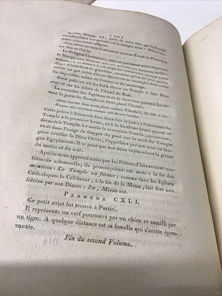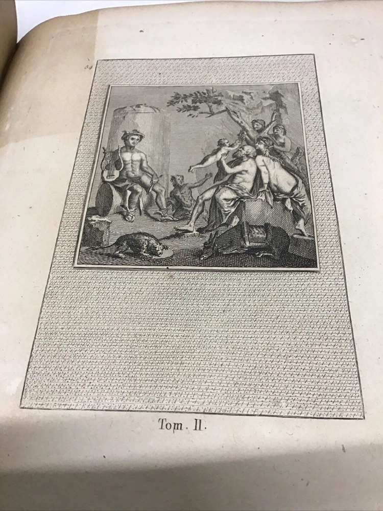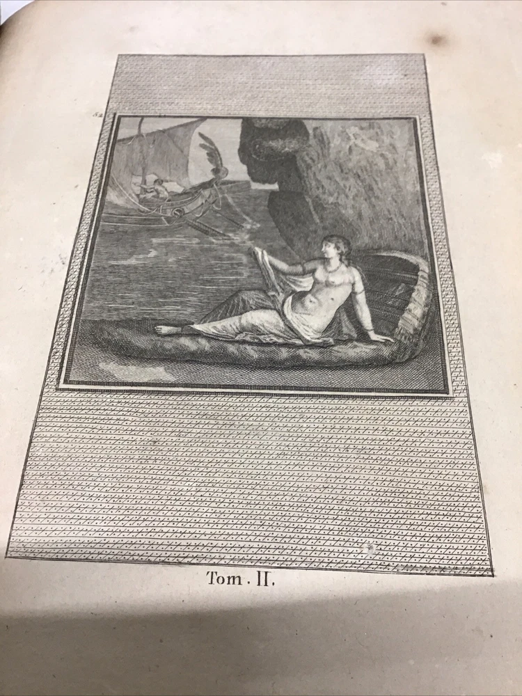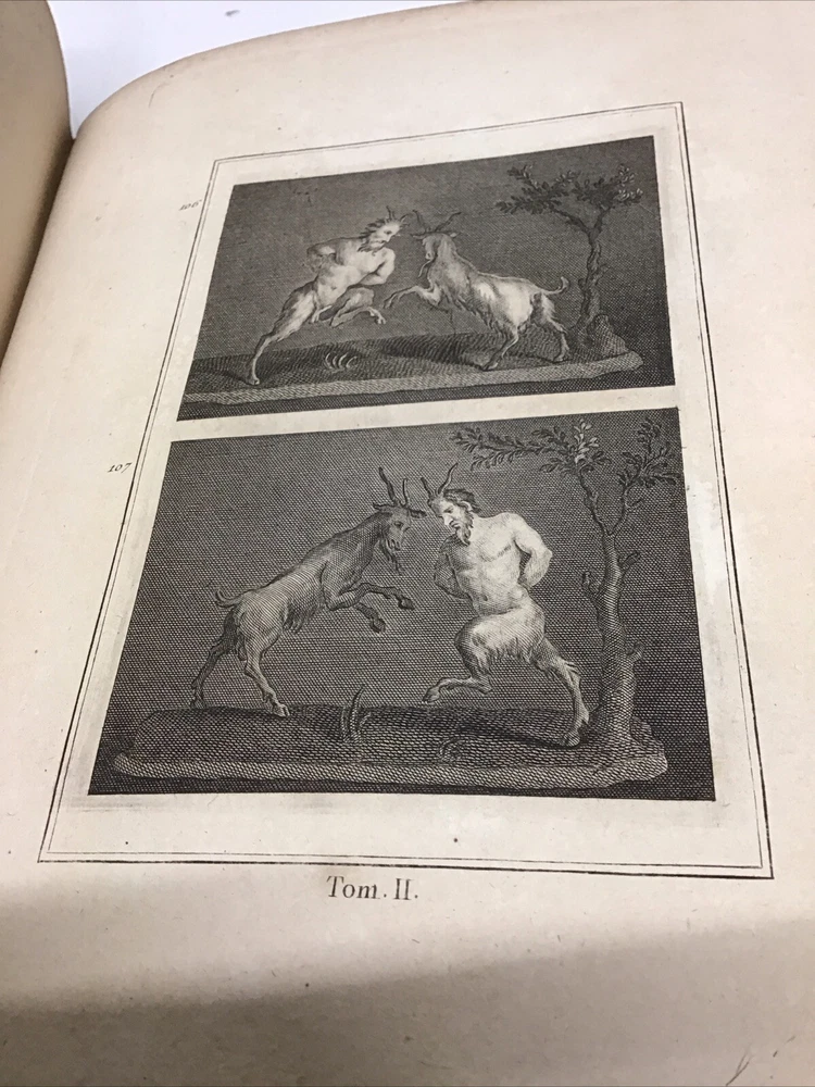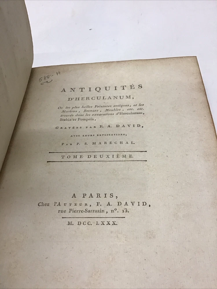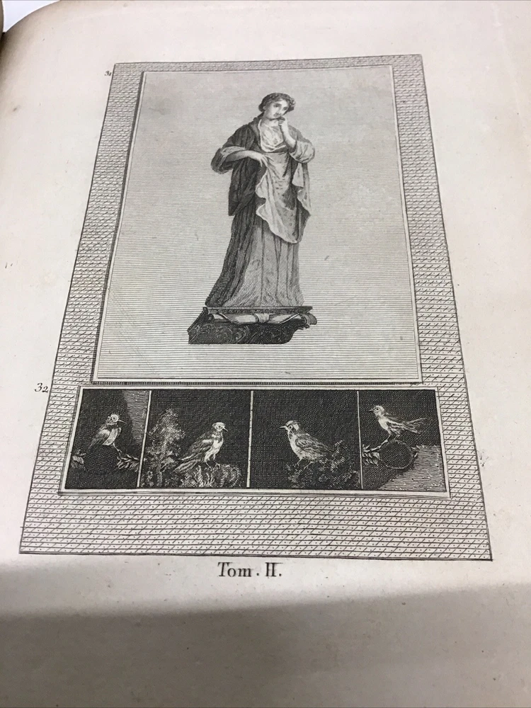 L'ouvrage présente les magnifiques peintures antiques, marbres, bronzes, meubles et autres objets découverts lors des fouilles d'Herculanum, Stabia et Pompéi. Graveur : Les gravures ont été réalisées par F. A. David. Auteur : Les explications accompagnant les gravures ont été rédigées par P. S. Marechal. Éditeur : Le livre a été publié à Paris en 1780 par l'auteur, F. A. David, situé au 13 rue Pierre-Sarrazin. 1780 Antiquités d'Herculanum, Excavations Herculaneum,Stabia,Pompeii Vol. 2 - 72 Plates Size 8.1/8” x 10” 212 pages then 72 engraving plates. Has wear to cover and pages have some discoloration as seen in pictures. Has some separation of cover but intact being 240+ years old. The book showcases the beautiful antique paintings, marbles, bronzes, furniture, and other artifacts discovered in the excavations of Herculaneum, Stabia, and Pompeii. Engraver: The engravings were done by F. A. David. Author: The explanations accompanying the engravings were written by P. S. Marechal. Publisher: The book was published in Paris in 1780 by the author, F. A. David, located at 13 rue Pierre-Sarrazin. Bookplate of an engraving of a coat of arms, likely dating back to the 18th century. The text "I.C. Berndt del. et Sculp. Francoff." indicates that the engraving was designed and sculpted by Johann Christoph Berndt in Frankfurt, Germany. See our other volumes of Antiquités d'Herculanum Keep in mind the shipping price also covers handling fees, packaging materials & time, not just postage. See our eBay store for thousands of our other items. B12C