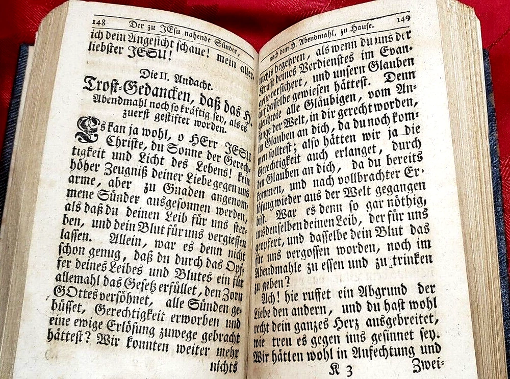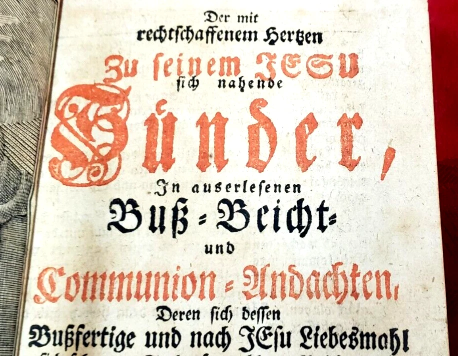 RARE. This is a 1781 Full Leather hardcover devotional work on prayer, worship, confessional, and communion in all German Text. It offers prayers, encouragement, and is a guide for worship and communion. The only illustration in the book is the frontispiece woodcut. All page edges are in Gold Gilt with Gauffered top and bottom corners to the page edges as shown in the 4th photo. VERY GOOD Condition with some soiling and wear, missing the front endpapers and blank pages- starts with frontispiece illustration. There is no writing, no loose or torn pages and a tight, firm binding and secure hinges. Rare. This item is being sold by Books and Collectibles, LLC. International buyers pay $9.99 shipping to eBay hub. U.S. Shipping is $9.99 for USPS Ground Advantage insured. If you buy more than one book for sale right now I will combine shipping costs and save you money. ADD AS MANY ADDITIONAL BOOKS FOR AN ADDITIONAL $2.00 PER BOOK & SAVE MONEY. How? Add $2 extra for each additional one purchased to the one with the highest priced shipping cost. Let me know when you are done and I will send you an adjusted invoice with the new, discounted shipping cost. Wait to pay until I have invoiced you the adjustment and have let you know. example: you bought 4 books with shipping costs of three at $5.99 shipping each and one at $6.99 shipping. The new, combined shipping cost will be $12.99 for all four instead of $24.96.