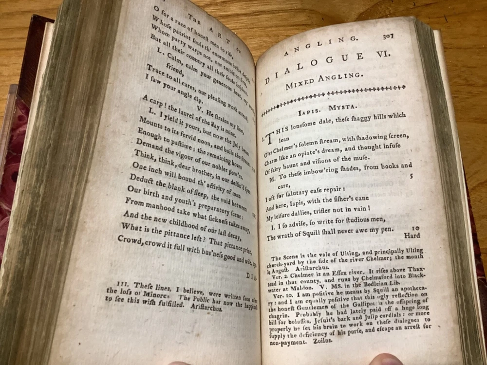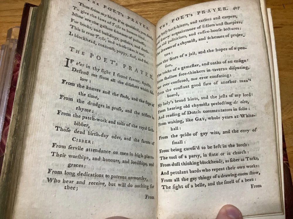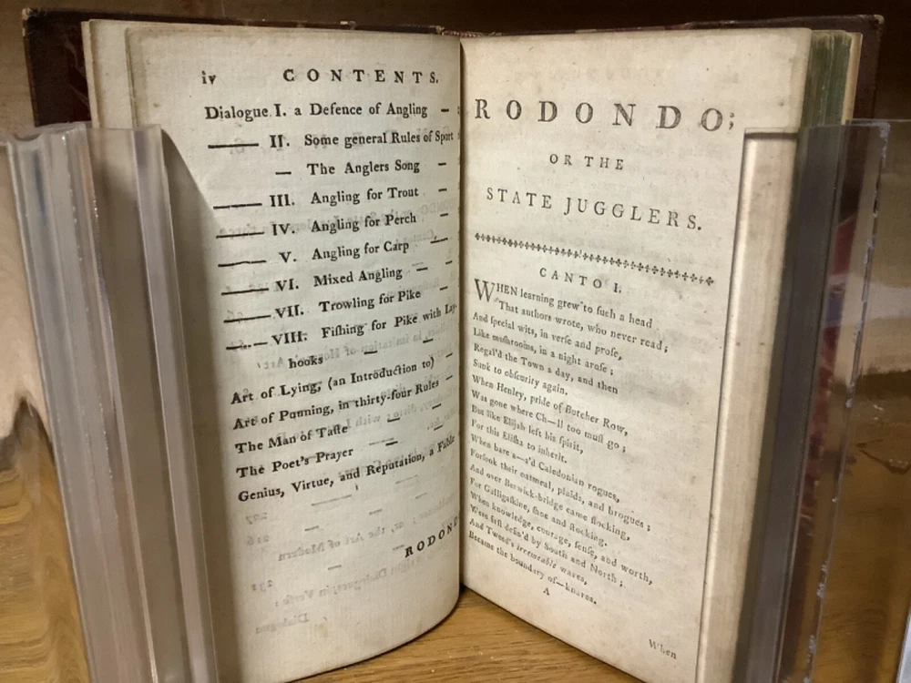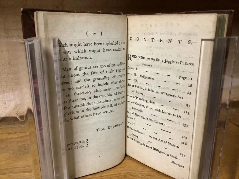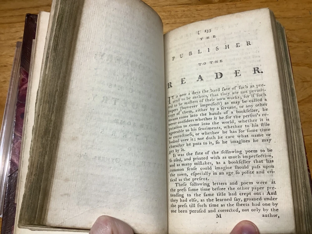 A Collection of Scarce, Curious, and Valuable Pieces, Both in Verse and Prose, Chiefly Selected from the Fugutive Productions of the Most Eminent Wits of the Present Age. Printed in Edinburgh by Thomas Ruddiman. 1785, 412 pp, 6.75” x 4.25”, 8vo, hardcover 3/4 leather. In good condition, with minor rubbing and wear to boards and spine, primarily along edges and corners. Some cracking to hinges at front and rear. Bookplate to front pastedown. Text block remains bound well. Light markings and marginalia. General age-related toning to pages, along with periodic foxing and wear. Please see photographs and ask any questions prior to purchasing. A scarce collection of pieces, including the satirical The Art of Cookery , and dialogues regarding Angling. Beautifully bound by Andrew Grieve in Edinburgh and stamped “Andrew Grieve Edinb” at bottom of first end page. COLL1785DLMP 0224-aj0957