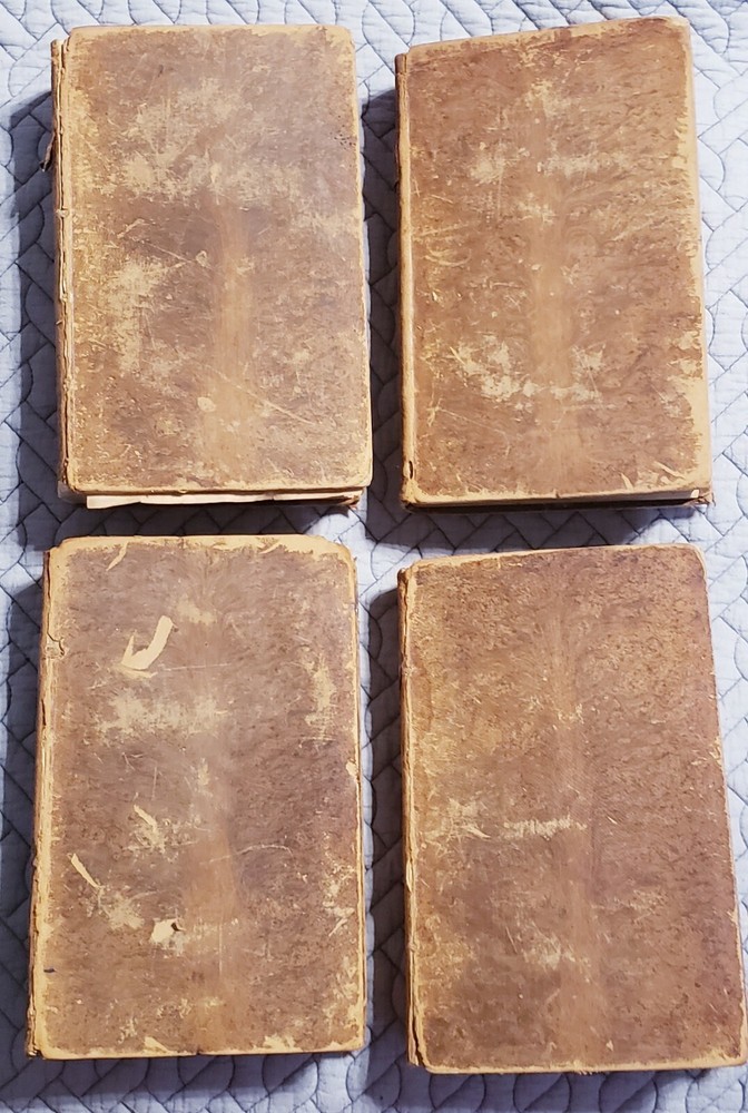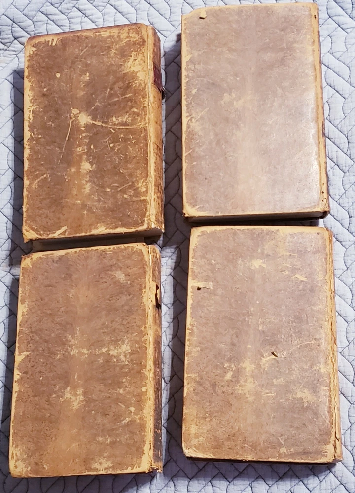 1787 HISTORY REIGN EMPEROR CHARLES V, 4 VOLUME SET, LEATHER BOUND ENGRAVINGS. Title: THE HISTORY OF THE REIGN OF THE EMPEROR CHARLES V, WITH A VIEW OF THE PROGRESS OF SOCIETY IN EUROPE FROM THE SUBVERSION OF THE ROMAN EMPIRE TO THE BEGINNING OF THE SIXTEENTH CENTURY Author: WILLIAM ROBERTSON, D.D. Date: 1787 6th edition Publisher: Strahan, Cadell, Balfour Size: 4 1/4 X 7" Condition: GOOD Notes: Published in 1787, leather bound, complete set of 4 volumes, 10th edition, edgewear and rounding of corners, scratching and scuffing to the covets and spines (see photos, they are part of the description), pages have browned with age, bindings are fairly tight (no spine breaks), some writing inside especially in front and rear matter, each volume has a different engraving frontspiece. All pages appear intact, with the exception of one frontpage which is loose.