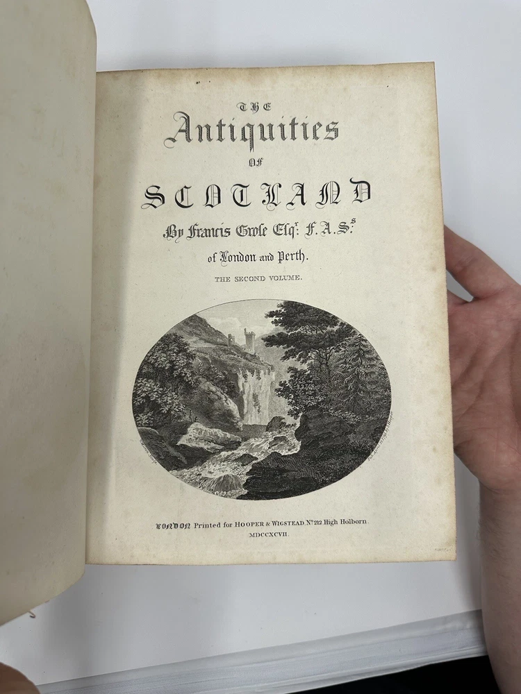 1797 - The Antiquities Of Scotland By Francis Grose - Volumes 1 & 2 Set. "The Antiquities of Scotland" by Francis Grose, published in 1797, is a notable work that focuses on the historical and architectural heritage of Scotland. In this book, Grose provides a detailed account of various Scottish antiquities, including castles, abbeys, churches, and other historic sites. He also includes illustrations and engravings to accompany his descriptions. The book serves as a valuable resource for those interested in the cultural and historical heritage of Scotland, offering insights into the architecture and historical significance of these sites. Grose's work is a significant contribution to the study of Scottish antiquities and remains of interest to historians and enthusiasts of Scottish history and architecture. - General statement on used books we sell. All books are in acceptable pre-owned condition with possible cosmetic issues. Please refer to photos for condition. Smoke free home. Due to its age, it may contain imperfections such as marks, notations, marginalia and flawed pages, flawed book binding. Hyrum’s Rare Books: We actively sell as well as purchase Latter-day Saint books, other religious or interesting books, historical artifacts, documents, and other hard to find items. Our core is rare Latter-day Saint (LDS) or Mormon books. Terms: All orders ship within two business days. Standard mail is USPS Media Mail. We offer combined shipping on multiple orders, please message to give a head’s up as to additional shipping on your part, and to have an updated invoice created when finished to reflect combined shipping pricing.