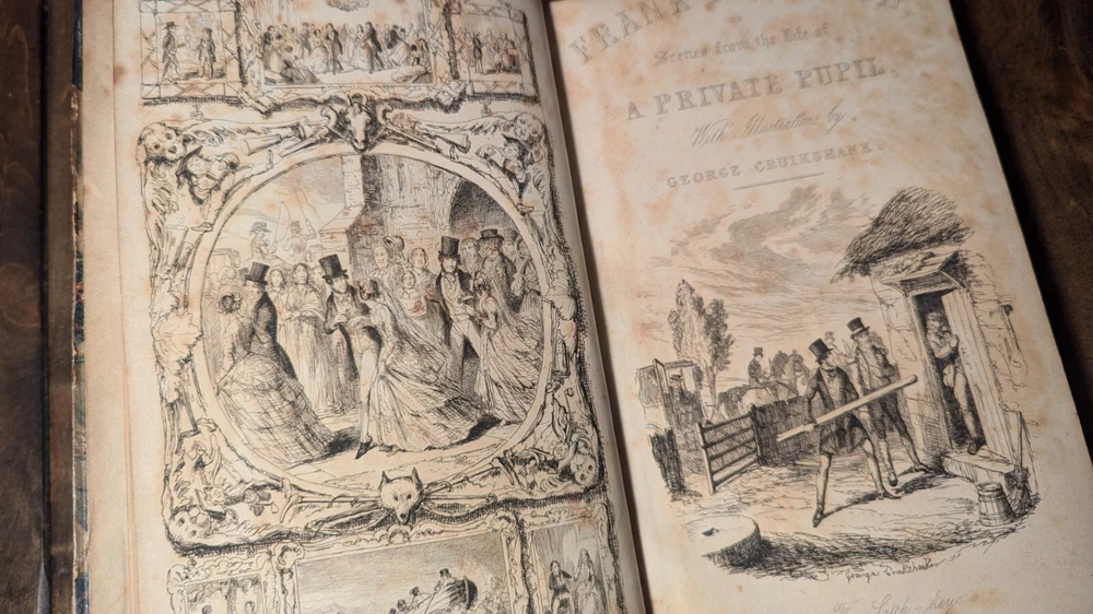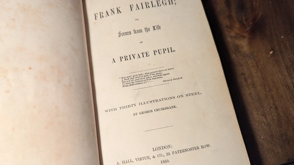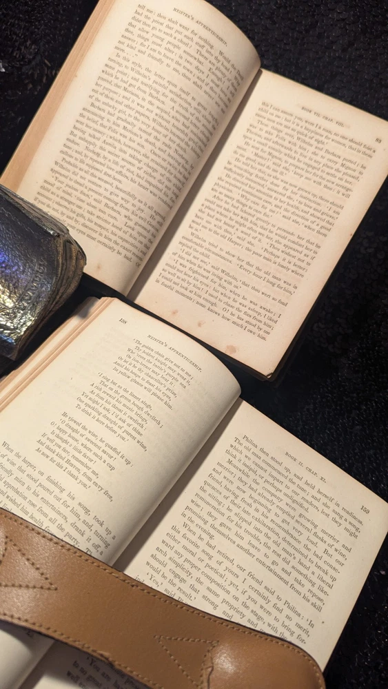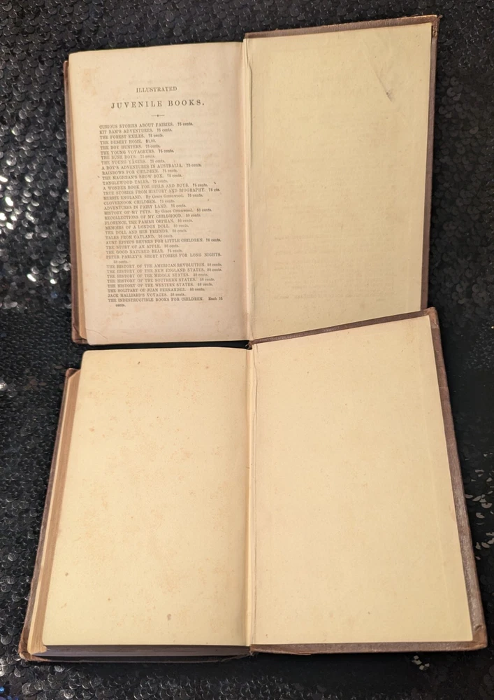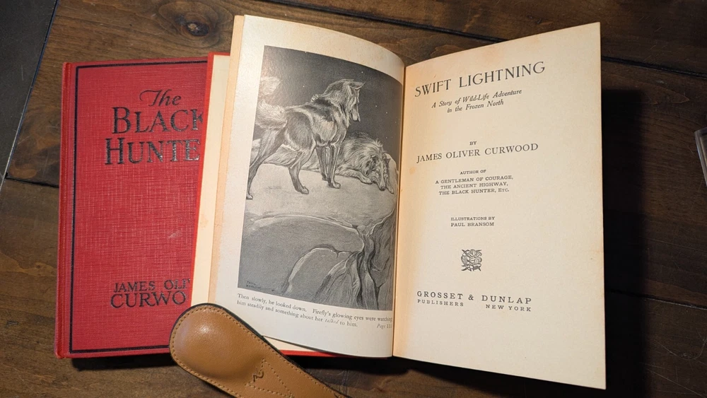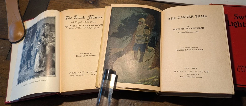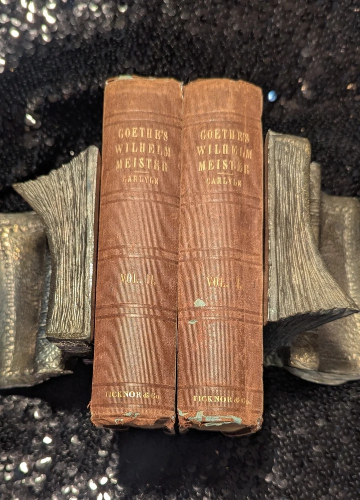 For over 30 years Truth & Tales has been selling rare & scarce antiquarian volumes, contemporary & classic first editions and great vintage reading. Now, through BookCandy, we are selling our entire antique & vintage inventory at incredible discounts. Most items will be initially discounted by 50% as compared to currently available items of the same condition. Scarce to rare items, and those that are in VG+ to Fine condition will begin with discounts of 30%. These are "buy-it-now" deeply discounted final sales, so when these one-of-a-kind gems are gone, they're gone. Items will be added to the dropdown lists AND PRICES WILL BE REDUCED to rotate stock, so please check back often. Check our other auctions for decorative, leather, gilt, beautifully-bound antique volumes, classic literature, First Editions, fascinating non-fiction and vintage fiction. All wins and purchases shipped Media Mail with appropriate insurance. ADDITIONAL PURCHASES RECEIVE EVEN DEEPER DISCOUNTS AND REDUCED SHIPPING when shipped together. To make an offer or for questions regarding edition, condition, prices, photos, etc., please send us a message. Dealers welcome! Thank you. NOTES: 1851 Wilhelm Meister 2 vol. set Wolfgang Von Goethe Ticknor Reed & Fields Wilhelm Meister (2 vol. set), Wolfgang Von Goethe Published by Ticknor, Reed, & Fields 1851. Complete, nice old 2 vol. edition. Taupe blind-stamped decorations to front and back, Overall GD to VG. Wear-through to blue boards, just a bit of foxing here and there, slight spine slant, possible repair to one of the spines as binding is very tight, bookplates, ads at back with free endpaper adhered to rear pastedown, one raised oval seal on free endpaper, tear on free endpaper of other volume, all of which can be seen in the photos, as well as how nice the pages are in general. Very scarce. Lot of 3 James Oliver Curwood, all in very nice condition, Danger trail pictorial cover bit of wear blank piece of paper attached to front pastedown, other 2 have neat owner name on upper corner of ffep, black hunter smudge on front, pls see photos. Ken Ward in the Jungle by Grey Zane Pub Walter J. Black Near fine. VERY rare.