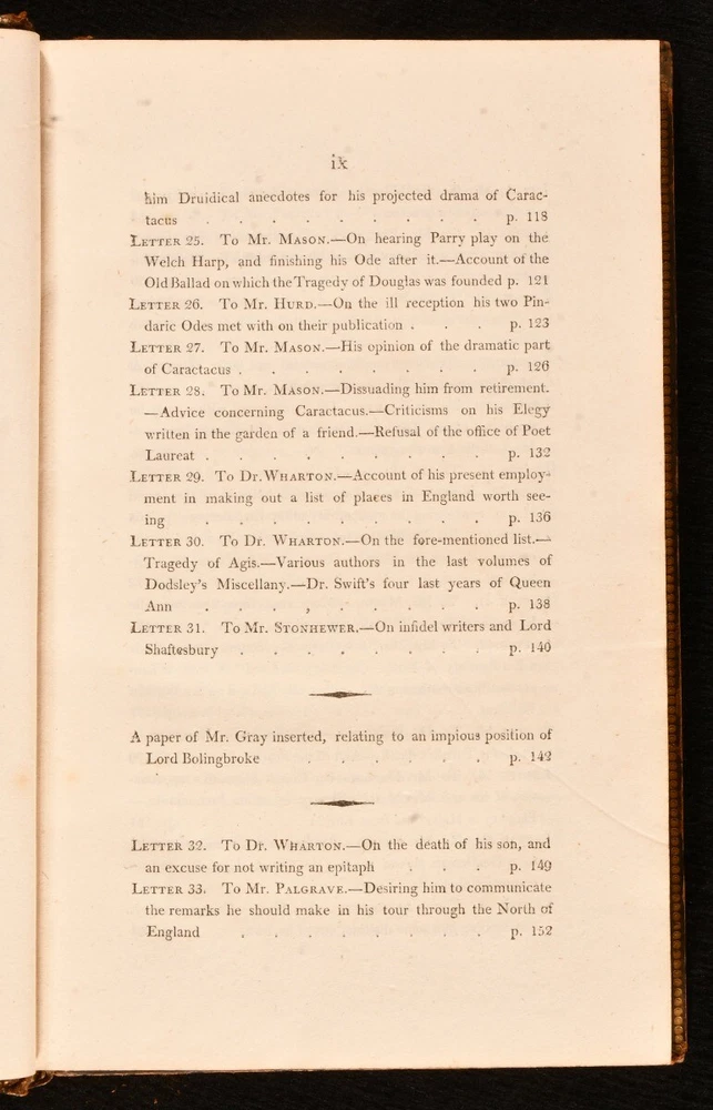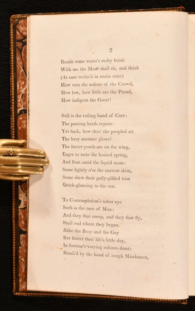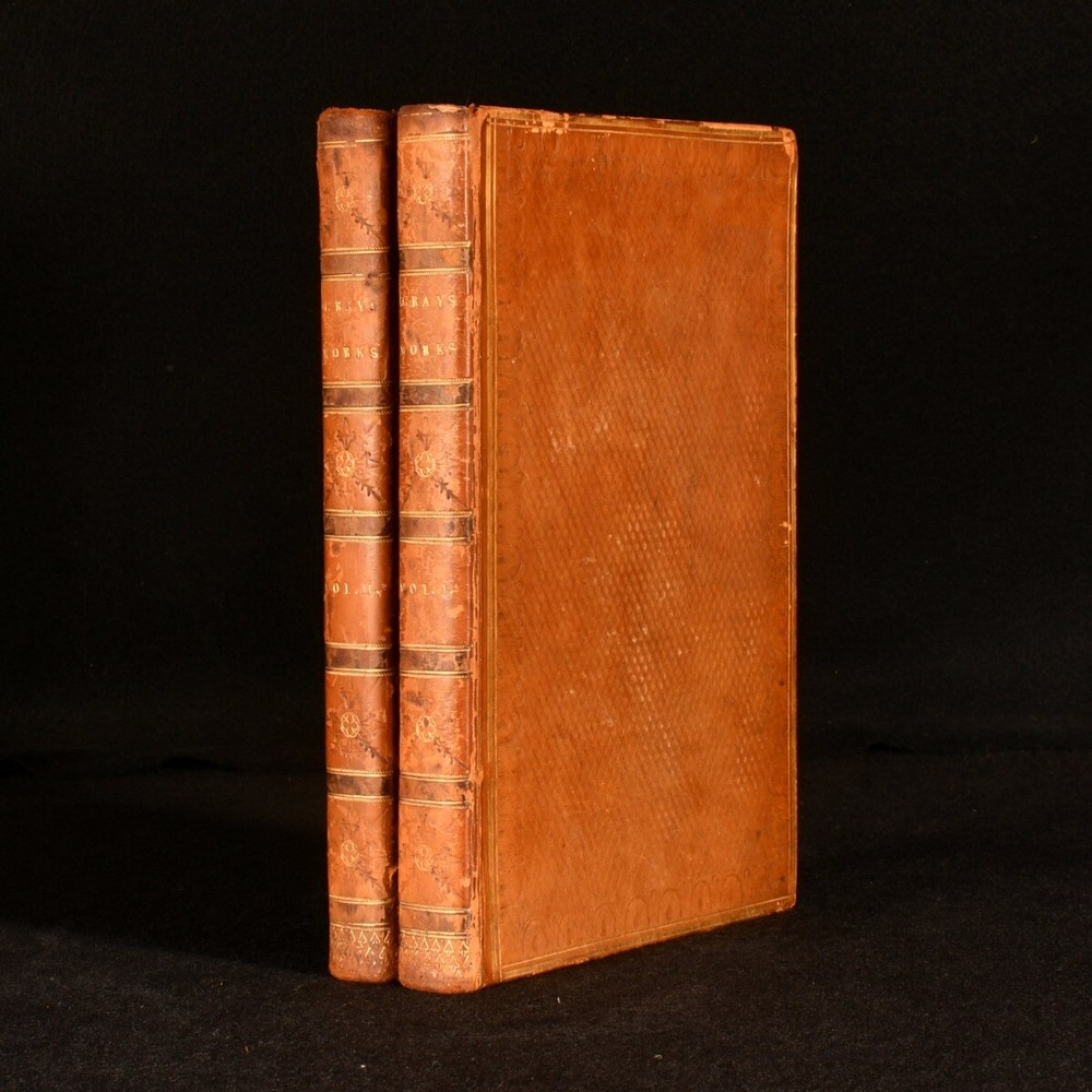 Click here to see our other books! The Works of Thomas Gray; Containing his Poems, and Correspondence with Several Eminent Literary Characters To Which are Added, Memoirs of His Life and Writings Thomas Gray; W. Mason (Ed) 1807 Vernor, Hood and Sharpe : London 8.5" by 5" 316; xiii, [2], 324pp. SUMMARY A complete two volume set of works by Thomas Gray, including poetry and important correspondences, bound in full diced calf. Illustrated,Leather Binding Overall Condition: Very Good This book weighs 0.75 KG when packed UK Postage: £ 3.99 US Postage: £ 19.99 EU Postage : £ 15.99 European Postage: £ 16.99 Asia Postage: £ 21.99 Worldwide Postage: £ 25.99 DESCRIPTION The third edition. Two volumes. Complete in two. Illustrated with a portrait frontispiece to 'Volume I'. Bound in full diced calf with gilt details. This two volume set features the works of English poet and classical scholar Thomas Gray. The works showcase the poetry and writings of Gray including select correspondences between himself and important members of the literary world with additional memoirs of his life written by W. Mason. CONDITION Bound in full diced cloth. Externally very smart with marks to the boards, bumping to the extremities, rubbing to the joints and spine and fading to the spine. Past owner's bookplate with light spotting to the front pastedown with the initials 'D. J. M' , rubbing to the joints of the endpapers, minor marks and slight offsetting to the rear to 'Volume I'. Internally firmly bound with generally bright pages and the odd spot and minor mark, heavier to the front and rear. Slight loss to the tail corner to the rear blank and offsetting to the title page to 'Volume I' and offsetting to the rear blanks to 'Volume II'. Overall Condition: Very Good GLOSSARY OF TERMS Overall Condition (Dustwrapper condition rating is shown after that for the book itself, where a dustwrapper is present) Fine - Very well preserved copy showing very little wear Very Good Indeed - Only one or two minor faults, really a very attractive copy Very Good - Quite a wide term meaning no major faults but probably several smaller ones often expected given the age of the book, but still a respectable copy Good - Meaning not very good. Some more serious faults as will be described in the condition report under 'condition' Good Only - Meaning one or more faults that could really do with repair Fair - As with good only above but with other faults leaving a compromised copy even after repair Poor - Really bad and possibly seriously incomplete. We only sell books in this condition where their rarity or value makes them attractive none the less. Major defects will be described. GUARANTEE We offer a full money back guarantee on our descriptions. Please ask for details and conditions. We prefer PAYPAL. If you pay via PAYPAL we will post the item off the same or the next working day with the postage you have selected. Please note we cannot accept USD cheques