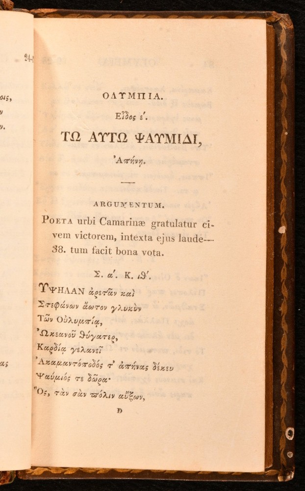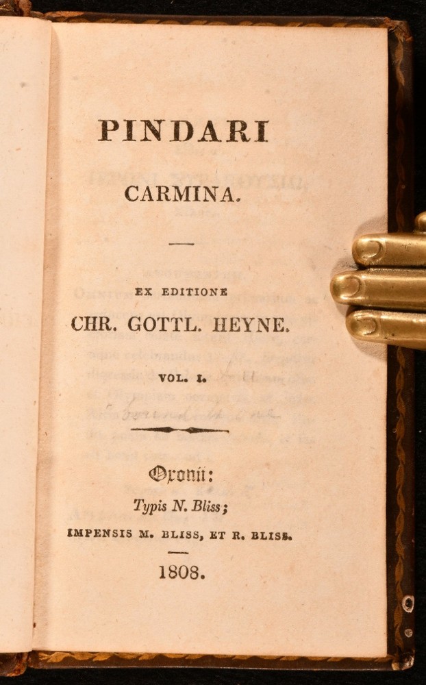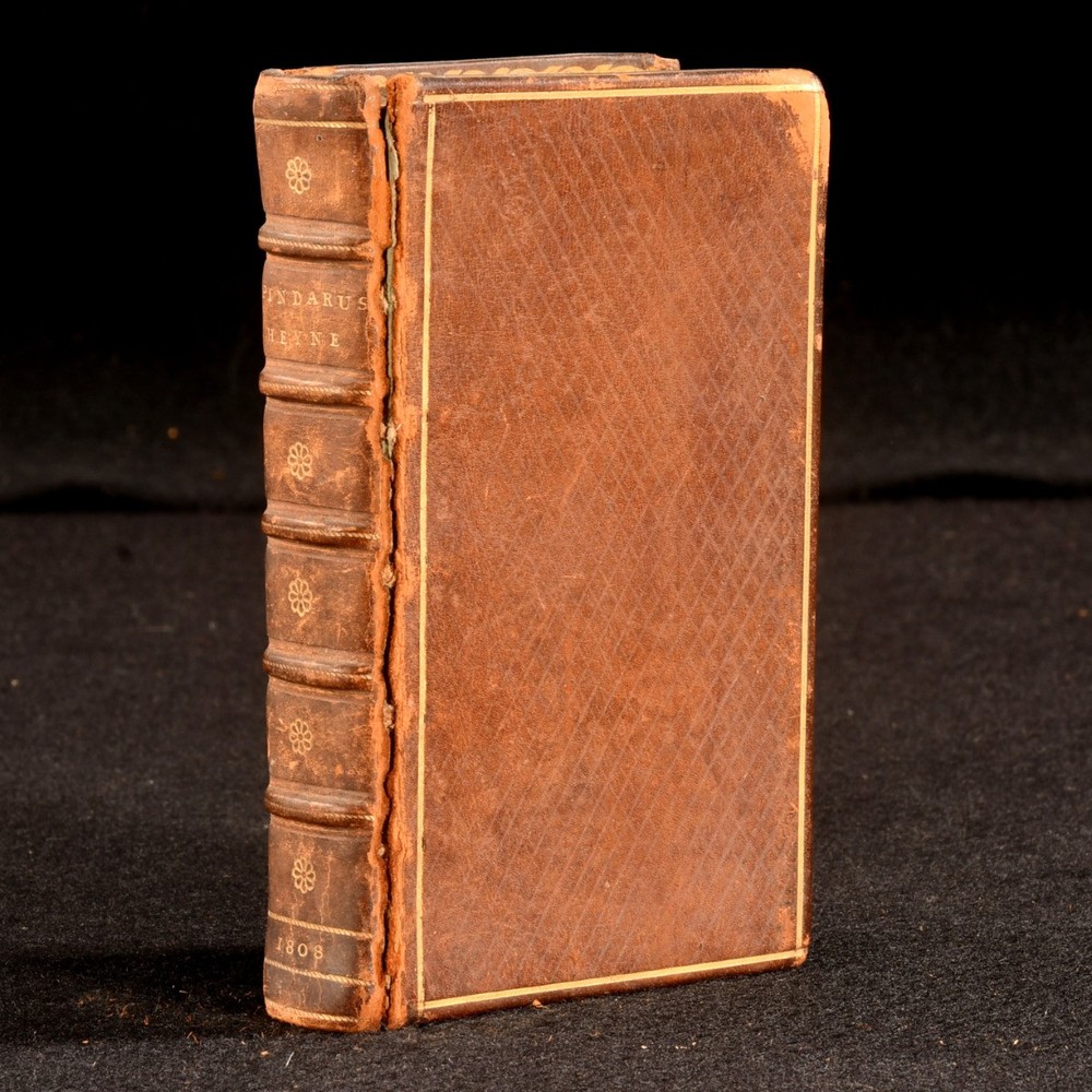 Click here to see our other books! Pindari Carmina Pindar; Christian Gottlieb Heyne 1808 N. Bliss : Oxford 4.5" by 3" 230, 137pp. SUMMARY A very original pocket sized collection of Pindar's works, two volumes bound in one. In the original Ancient Greek and Latin languages. Leather Binding,Original Binding,Publishers' Original Binding Overall Condition: Good This book weighs 0.5 KG when packed UK Postage: £ 3.99 US Postage: £ 15.99 EU Postage : £ 13.99 European Postage: £ 14.99 Asia Postage: £ 18.99 Worldwide Postage: £ 19.99 DESCRIPTION Ancient Greek and Latin language. Two volumes bound into one. The works of Pindar with commentary, including the Victory Odes, which are named after the Olympian, Pythian, Isthmian and Nemean games. Written by Pindar, an Ancient Greek lyrical poet from Thebes and one of the nine canonical lyric poets of Ancient Greece. With commentary from Christian Gottlieb Heyne, a German classical scholar. CONDITION In the original full calf binding. Externally, smart with light shelf wear and bumping to the extremities. Fading to the spine. Rear joint starting but firm, front joint tender but still reasonably firm. Internally, firmly bound. Pages are very bright and clean. Library bookplate to the front pastedown. Overall Condition: Good GLOSSARY OF TERMS Overall Condition (Dustwrapper condition rating is shown after that for the book itself, where a dustwrapper is present) Fine - Very well preserved copy showing very little wear Very Good Indeed - Only one or two minor faults, really a very attractive copy Very Good - Quite a wide term meaning no major faults but probably several smaller ones often expected given the age of the book, but still a respectable copy Good - Meaning not very good. Some more serious faults as will be described in the condition report under 'condition' Good Only - Meaning one or more faults that could really do with repair Fair - As with good only above but with other faults leaving a compromised copy even after repair Poor - Really bad and possibly seriously incomplete. We only sell books in this condition where their rarity or value makes them attractive none the less. Major defects will be described. GUARANTEE We offer a full money back guarantee on our descriptions. Please ask for details and conditions. We prefer PAYPAL. If you pay via PAYPAL we will post the item off the same or the next working day with the postage you have selected. Please note we cannot accept USD cheques