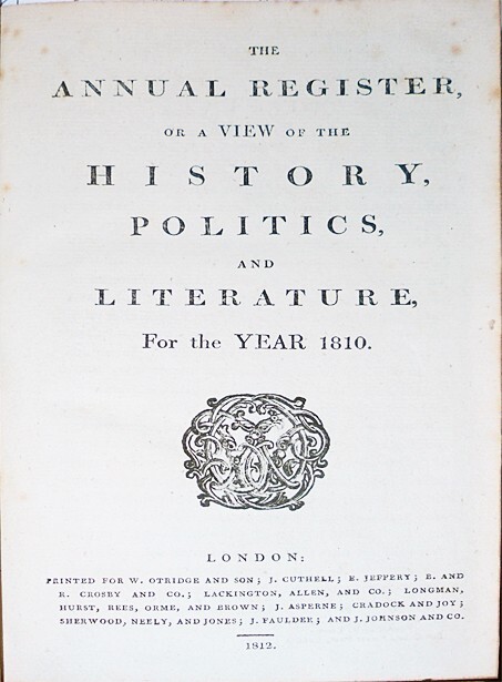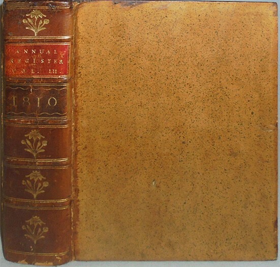 This week, we will be listing a Wonderful Collection of Antiquarian Books and Historical Memorabilia, including numerous Annual Register volumes. Please, check out our other items to save of shipping. Good Luck! This is a Great, Rare, Early "The Annual Register, or A View of The History, Politics, and Literature, For The Year 1810 " book . This wonderful Old piece has a Great, Early design, with a Gold Gilt embossed Leather binding, is Loaded with 500+ pages of Historical information & the News of the day, is an Original, Antique piece and Rare to Find. This includes: America : History of British Disputes with America - Pre-War of 1812 President James Madison - Proclamation of Non-Intercourse with Britain - Leads to War of 1812 Albert Gallatin - Secretary of Treasury "The Creole Planter" - Slave And More! Other : England Crime Stats - Fold-Out Slave Trade - Abolition Peninsular War - Extensive Coverage Spanish America - Cuba, Mexico, etc. Napoleon Bonaparte - Several - Marriage Thanksgiving Tunis Gold Coins Beer William Pitt's Death Sir Walter Scott "Description of Africa and The Negro" "The Negro's Home and Country" "Christian Negroes" And Lots More! This appears to be in Nice, Tight condition. #5249 - 4 Payment is expected within 7 days of purchase. Thanks
