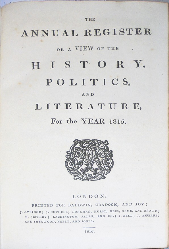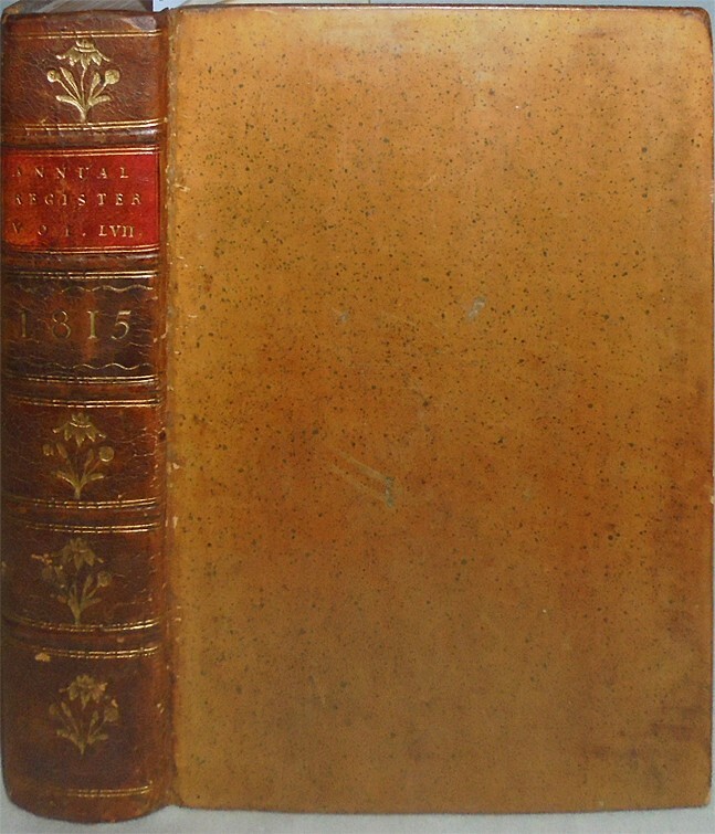 This week, we will be listing a Wonderful Collection of Antiquarian Books and Historical Memorabilia, including numerous Annual Register volumes. Please, check out our other items to save of shipping. Good Luck! This is a Great, Rare, Early "The Annual Register, or A View of The History, Politics, and Literature, For The Year 1815 " book . This wonderful Old piece has a Great, Early design, with a Gold Gilt embossed Leather binding, is Loaded with 500+ pages of Historical information & the News of the day, is an Original, Antique piece and Rare to Find. This includes: War of 1812 : Battle of New Orleans - General Andrew Jackson New York City Staten Island USS President Commodore Decatur Fort Mobile Captured Ghent Treaty And More! America : President James Madison President John Quincy Adams Creek Indian Treaty And More! Other : Napoleon Bonaparte Battle of Waterloo Slave Trade - "Repugnant" China Hemp And Lots More! This appears to be in Nice, Tight condition. #6715 - 3 Payment is expected within 7 days of purchase. Thanks