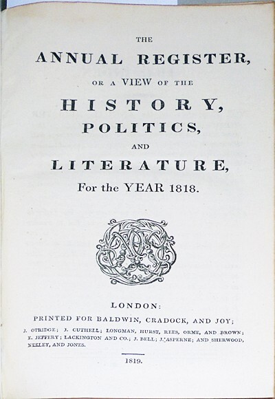 This week, we will be listing a Wonderful Collection of Antiquarian Books and Historical Memorabilia, including numerous Annual Register volumes. Please, check out our other items to save of shipping. Good Luck! This is a Great, Rare, Early "The Annual Register, or A View of The History, Politics, and Literature, For The Year 1818 " book . This wonderful Old piece has a Great, Early design, with a Gold Gilt embossed Leather binding, is Loaded with 500+ pages of Historical information & the News of the day, is an Original, Antique piece and Rare to Find. This includes: America : President James Monroe - State of The Union Address Seminole Indian War - President Monroe Addresses Congress John Quincy Adams - Secretary of State And More! Other : Slave Trade Abolished - Slavery Japan Greenland Australia And More! This appears to be in Nice, Tight condition. #5879 - 3.5 Payment is expected within 7 days of purchase. Thanks