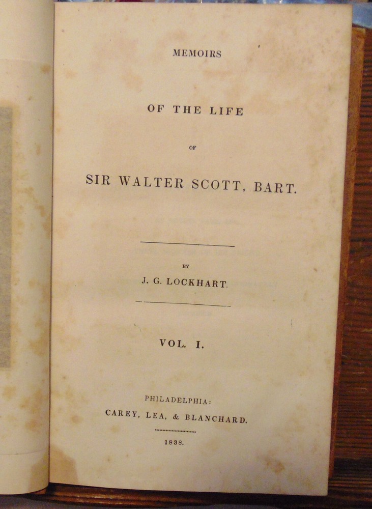 Memoirs of the life of Sir Walter Scott, bart Lockhart, J. G. (John Gibson), 1794 - 1854 . / Philadelphia, Carey, Lea, & Blanchard 1838 2 Leather bound Volumes