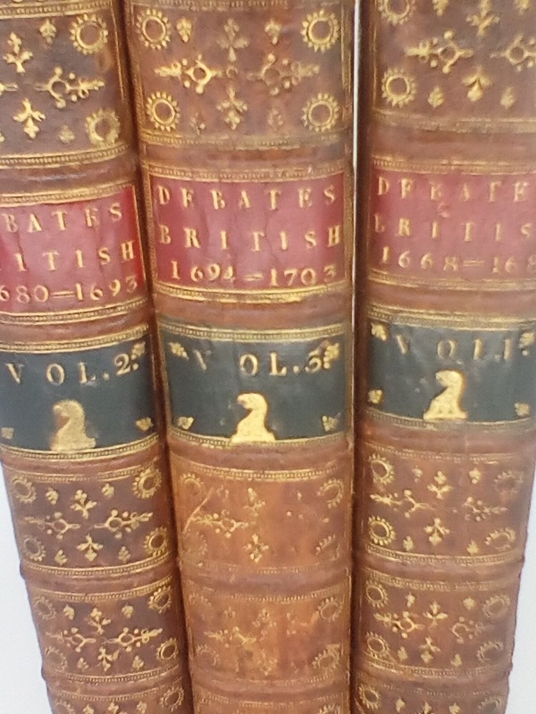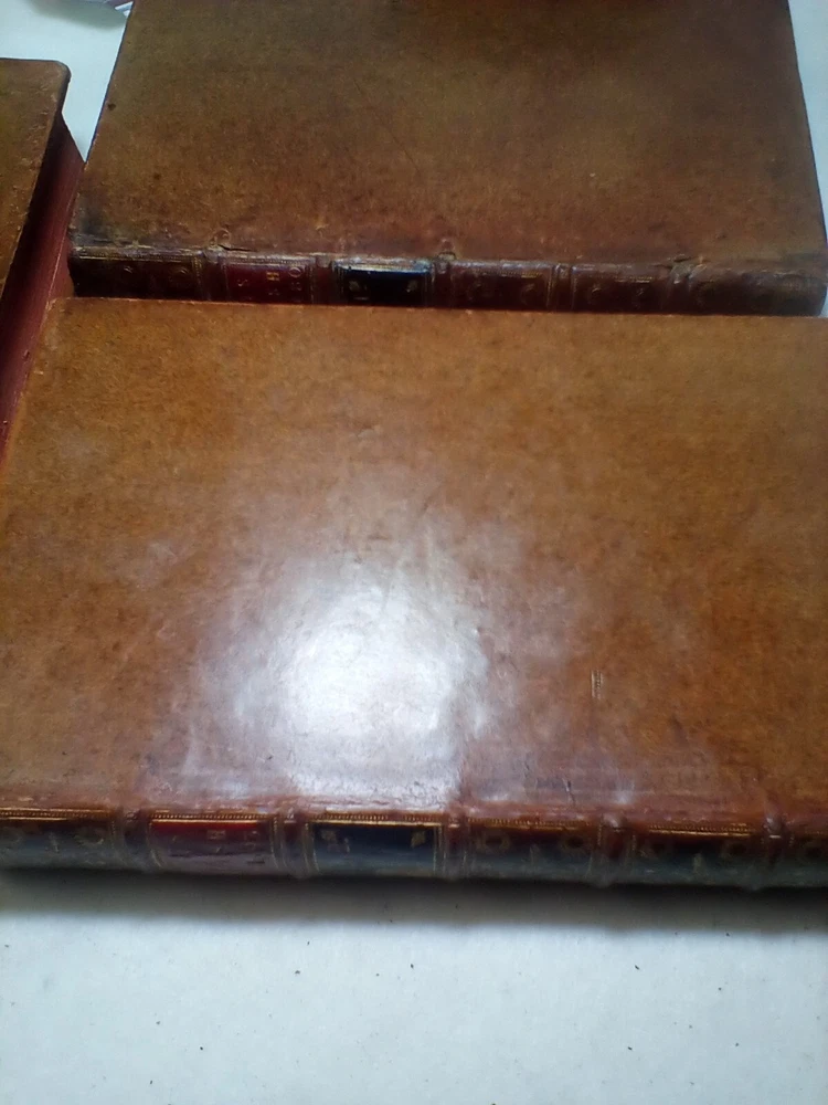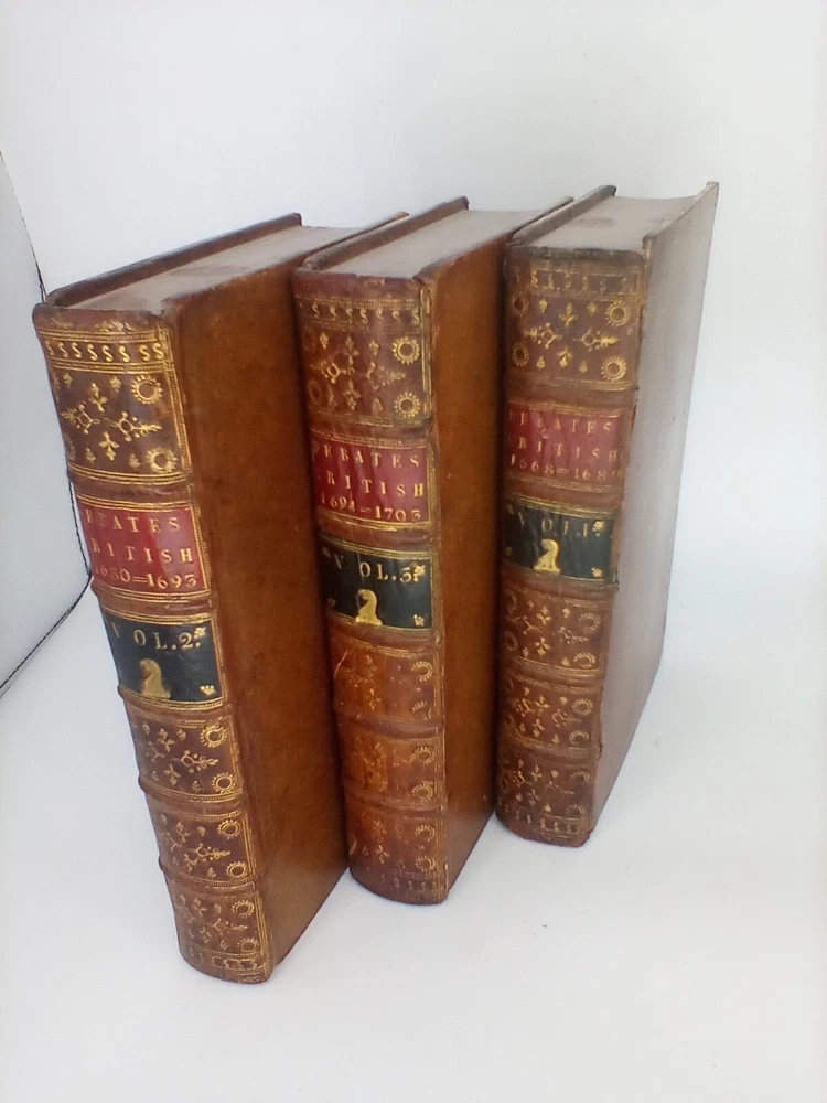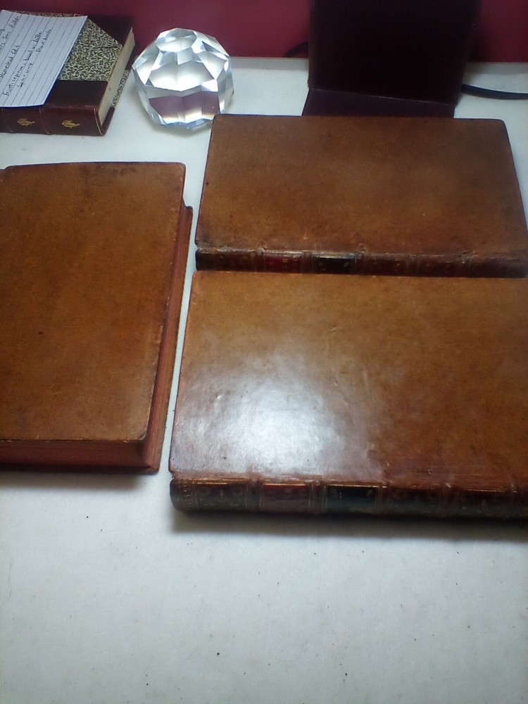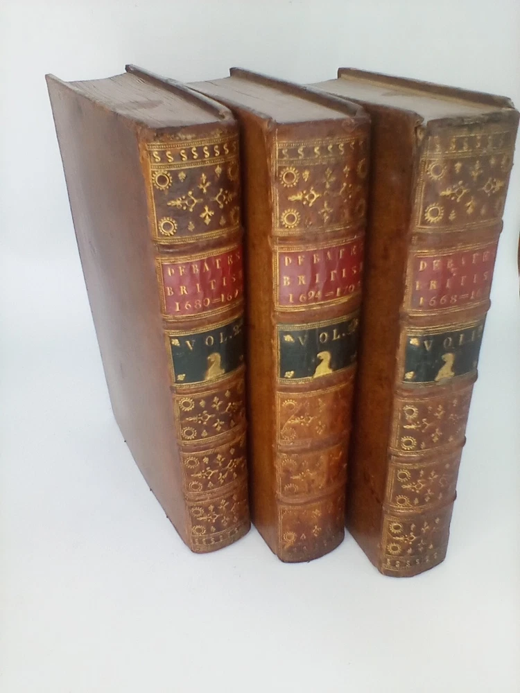 All leather, spines are cracked but intact Minimal bumping and scuffs to boards Pages clean. A beautiful set! VOLUME 1,2 AND 3....