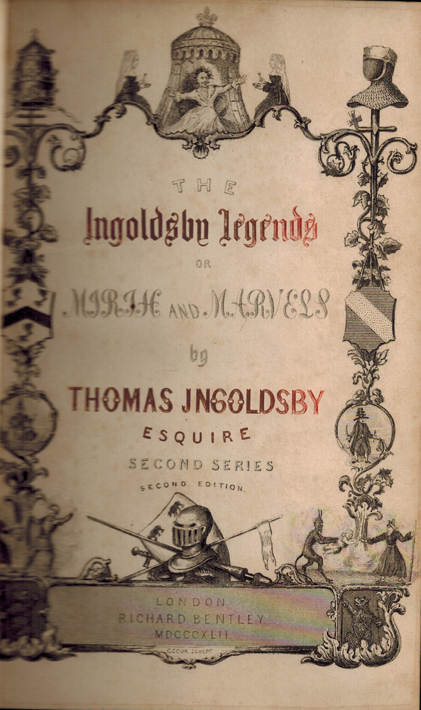 THE INGOLDSBY LEGENDS OR MIRTH AND MARVELS by Thomas Ingoldsby, Esquire - Second Series, Second Edition - illustrated with numerous drawings Published by Richard Bentley, London, 1843 A collection of myths, legends, ghost stories and poetry written supposedly by Thomas Ingoldsby of Tappington Manor , actually a pen-name of an English clergyman named Richard Harris Barham. F