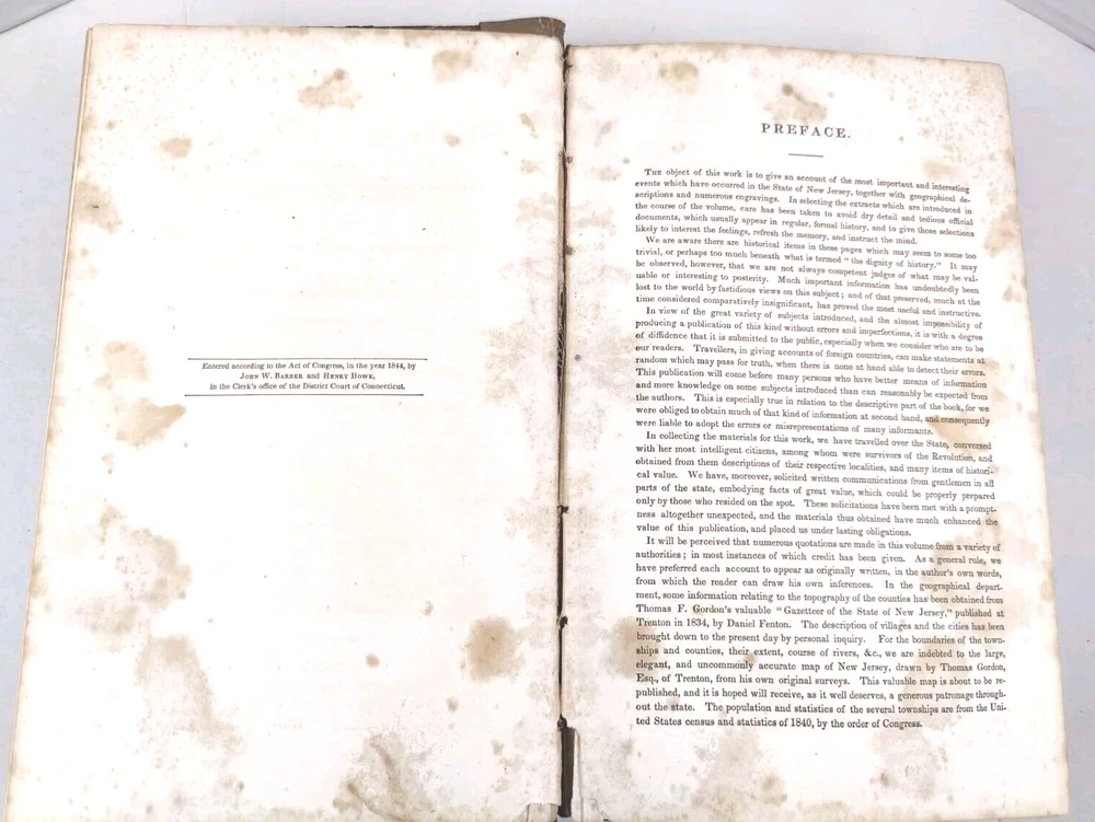 Historical collections of the state of New Jersey A general collection of the most interesting facts, traditions, biographical sketches, anecdotes etc. by John W. Barber and Henry Howe from the Preface: "The object of this work is to give an account of the most important and interesting events which have occurred in the state of New Jersey, together with geographical descriptions and numerous engravings." Sections of writings include History and antiquities with geographical descriptions of every township in the state. Illustrated by 120 engravings. New York Published by S. Tuttle, 194 Chatham-Square 1847 6'' by 9" 512 Pages I have been an eBay seller since 2000, and a collector/treasure hunter since I was in elementary school. I love being able to rescue items that were destined for the trash heap and find new homes for them with people who will appreciate them. All reasonable offers will be considered! I do my best to describe my items as accurately as possible, but may miss details or make mistakes from time to time. However, if you are unsatisfied for any reason, please reach out to me so I can work to make things right. Thank you for your interest! 100% satisfaction guarantee or receive a quick refund 20% of the sale of this item will be donated to a youth-serving organization EB 270.2