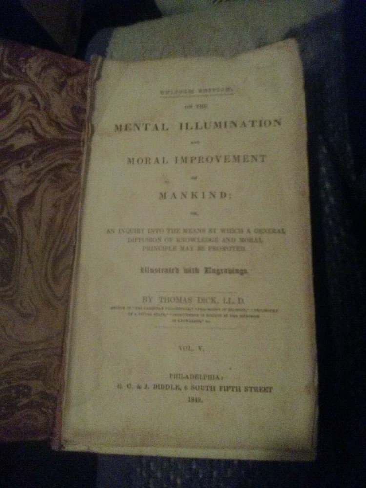 1849 edition of Dick's work, only one board remaining is detached. Text complete and excellent with engravings at 304 pages....