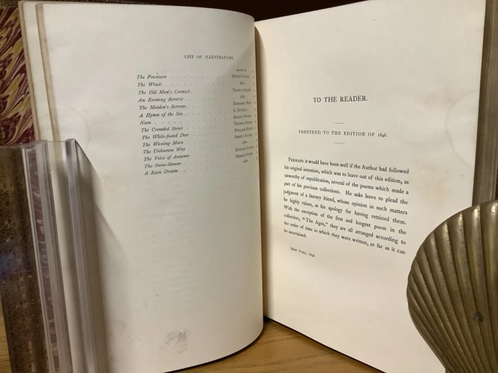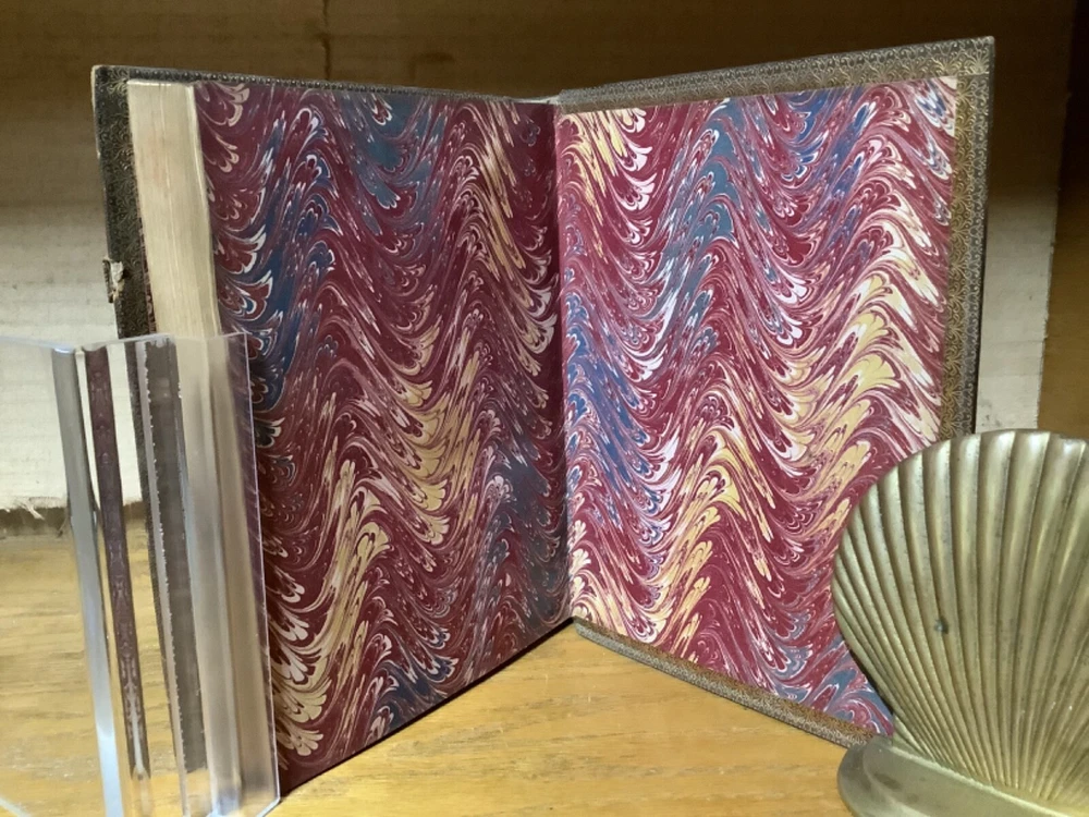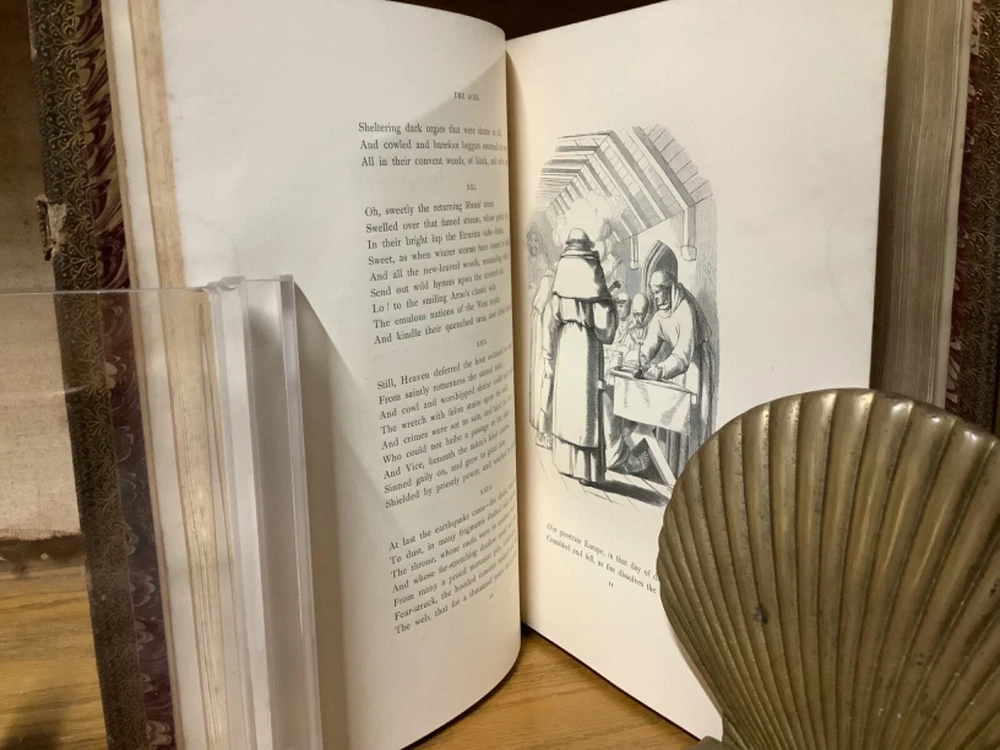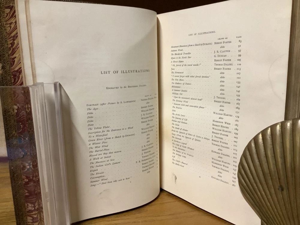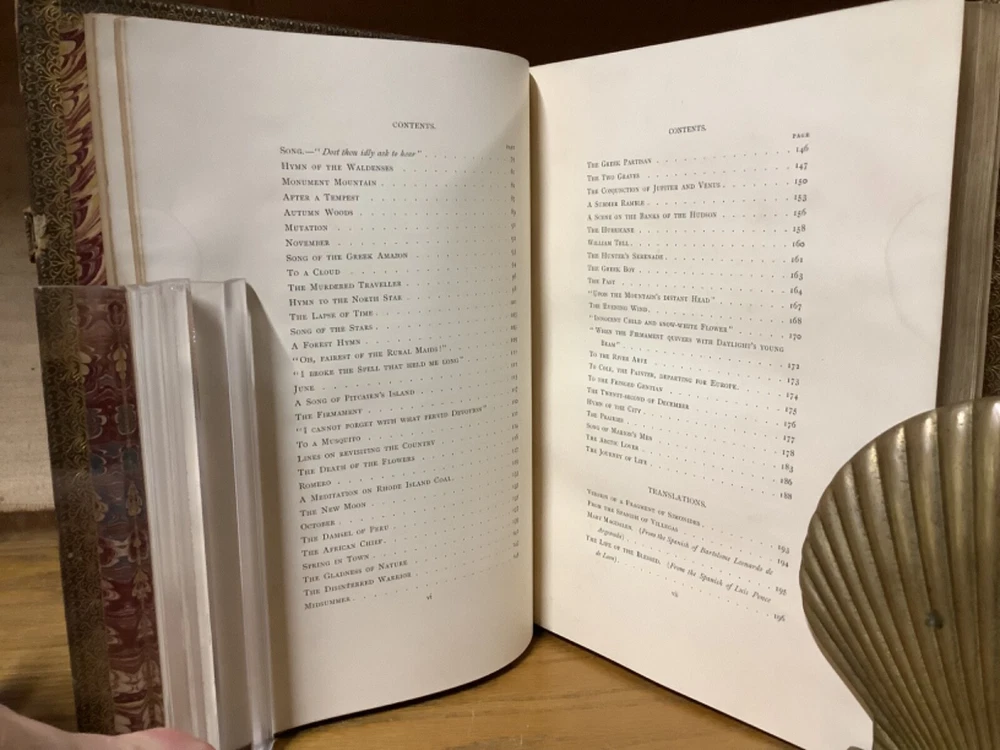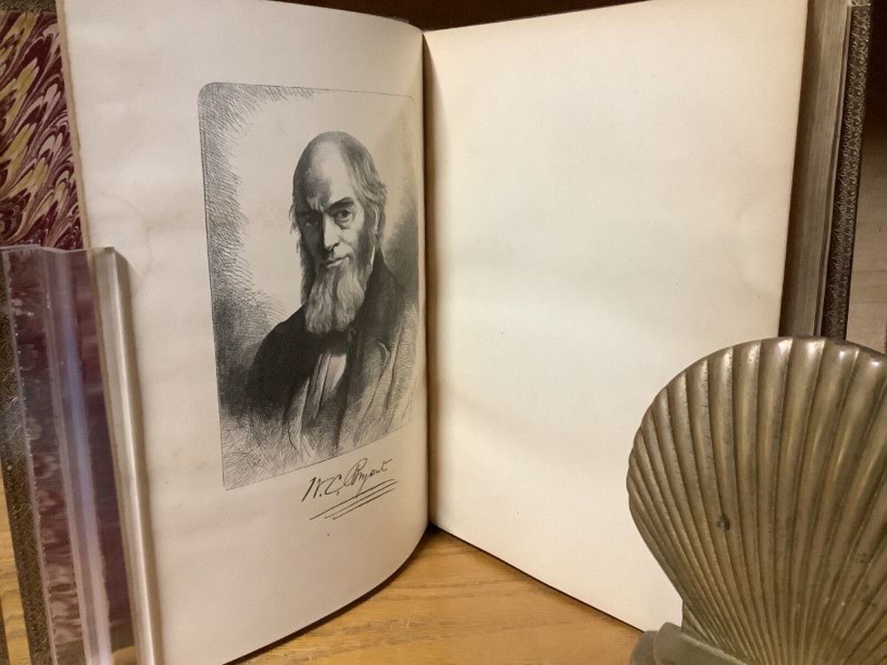 Poems of William Cullen Bryant. Collected and Arranged by the Author. Printed in New York City by D. Appleton and Company. 1854, 344 pp, 9” x 6.75”, 8vo, decorative full leather. Overall very good, with minor rubbing and wear around extremities. Small instance of damage to leather to edge of front board. Hinges remain in good condition with minimal rubbing and text block remains bound well. Light markings and marginalia, along with some staining remnants, the latter primarily at rear of book. Periodic black-and-white engravings throughout. General age-related toning to pages, along with periodic foxing and wear. Please see photographs and ask any questions prior to purchasing. A scarce and attractive copy of the earlier poetical works of American writer and journalist William Cullen Bryant (1794-1878). COLL1854ABEX-0324-aj1164