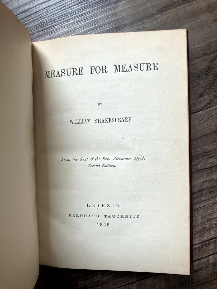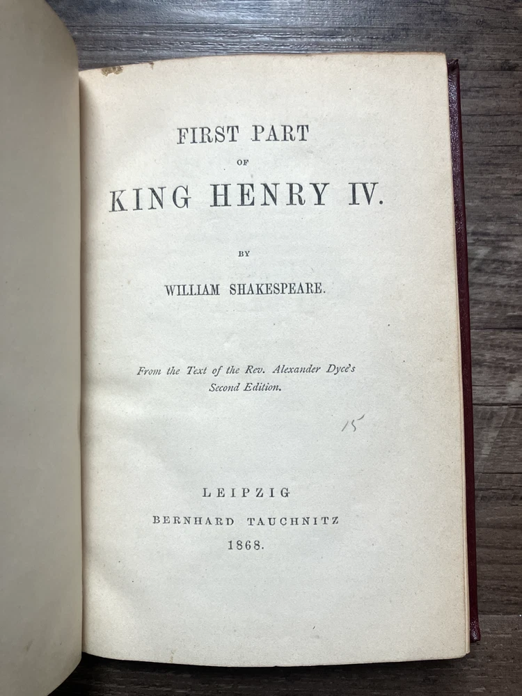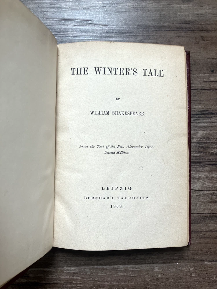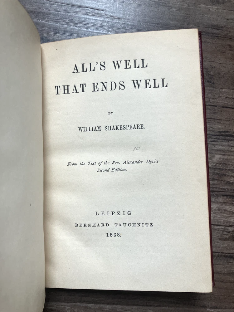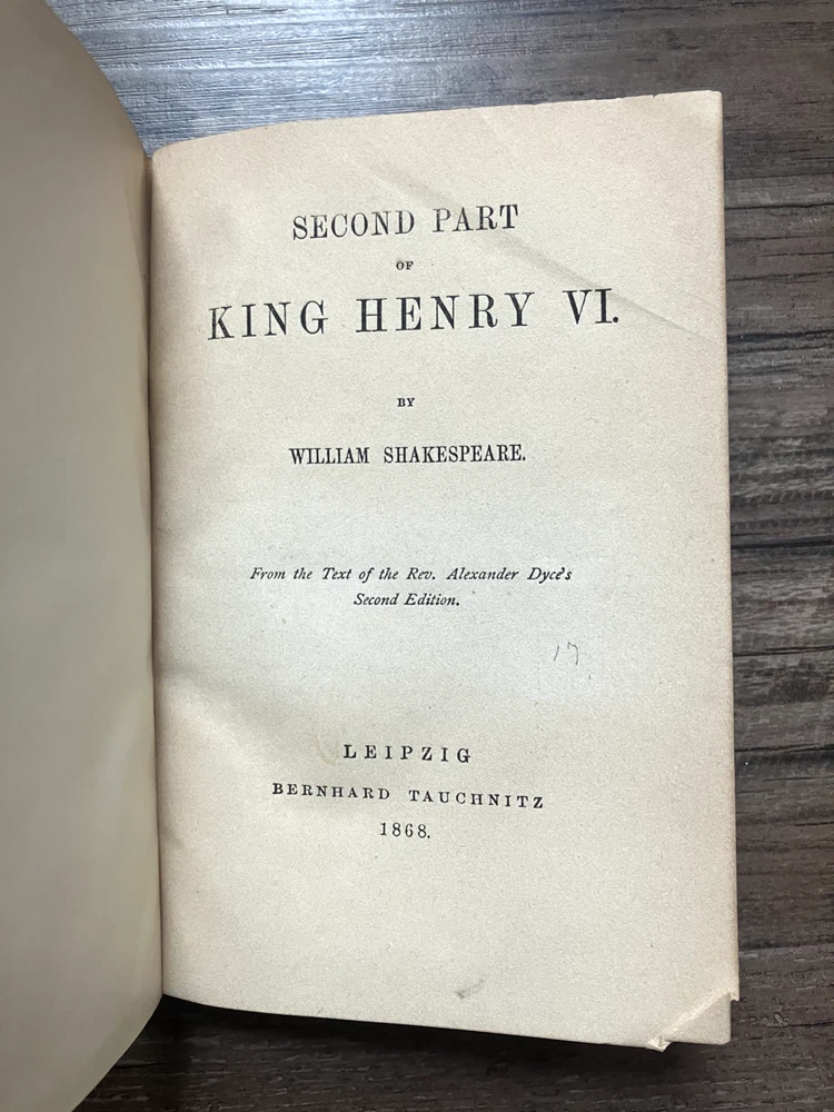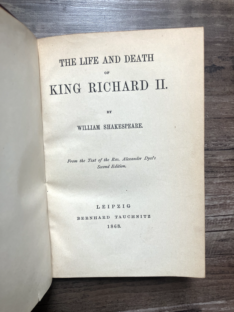 Antique 18 volume collection of William Shakespeare plays. Collection includes: The Life and Death of King Richard II, Antony and Cleopatra, King Lear, Coriolanus, Troilus and Cressida, Much Ado About Nothing, Measure for Measure, Othello: The Moor of Venice, As You Like It, All's Well That Ends Well, Merry Wives of Windsor, The Tempest, The Winter's Tale, The Two Gentleman of Verona, First Part of King Henry IV, King Henry V, Second Part of King Henry VI, King Henry VIII. Books are listed as numbered in the collection.