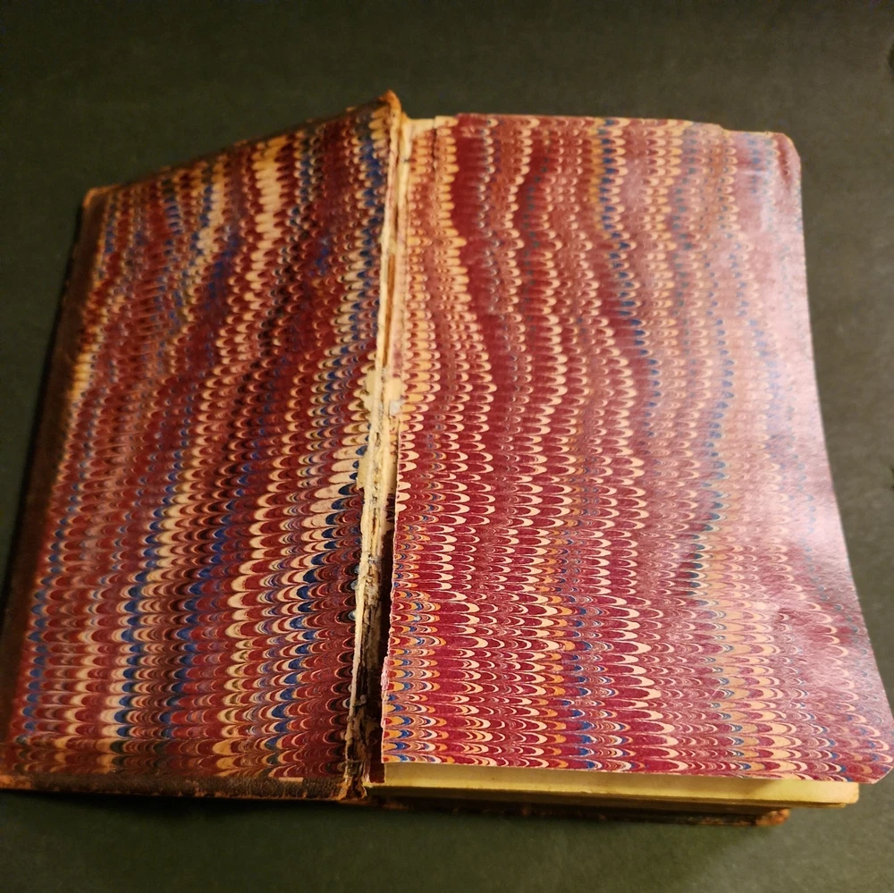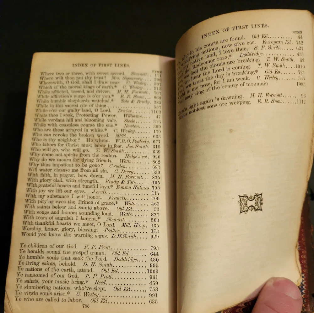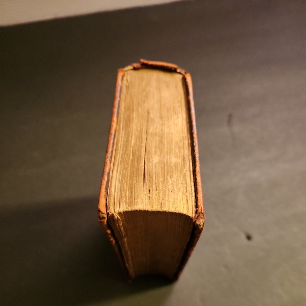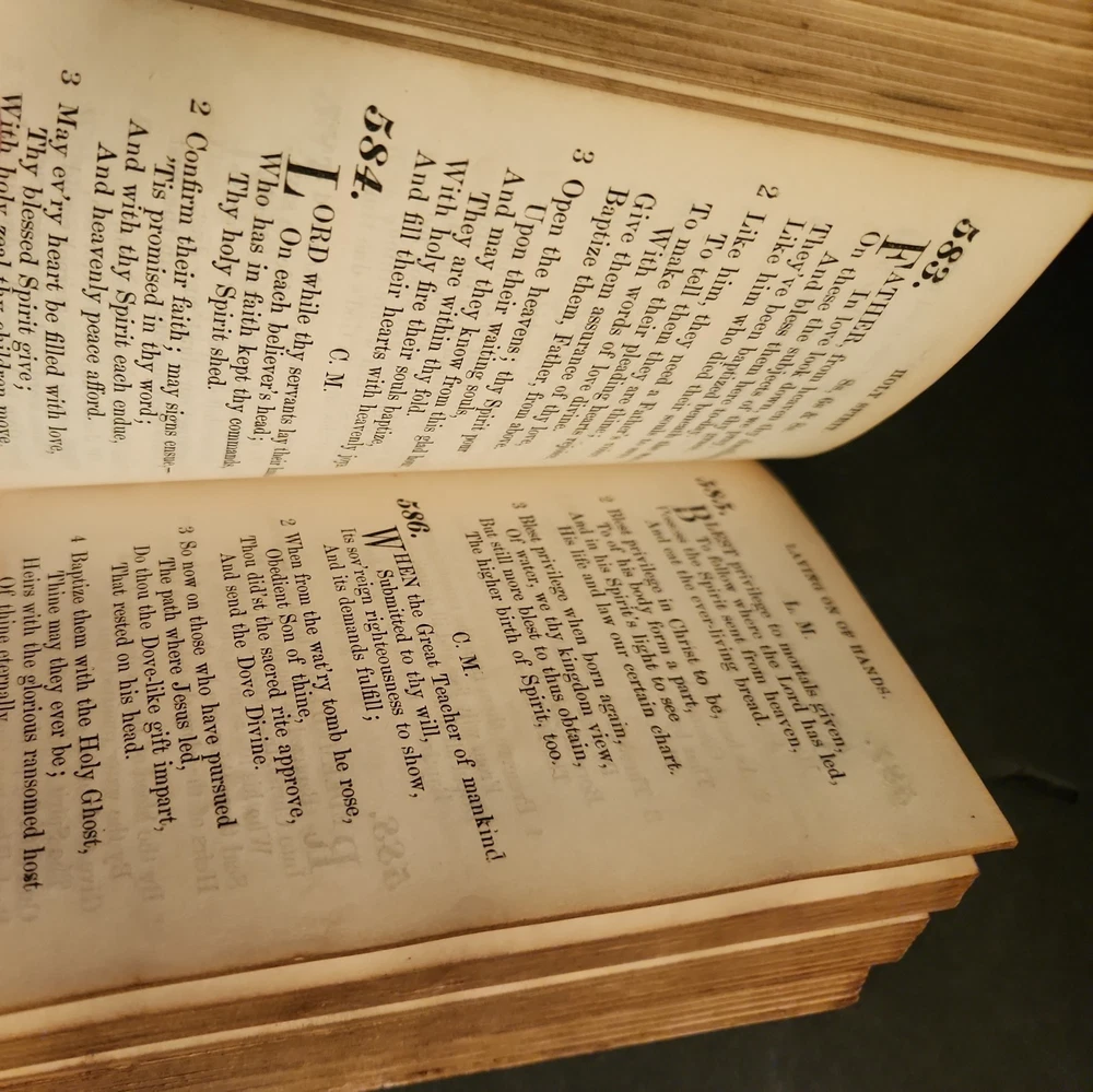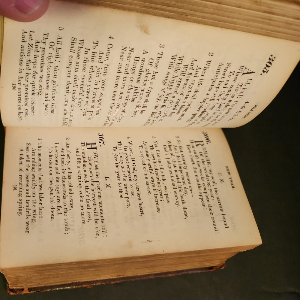 The product is a leather hardcover collection of hymns and spiritual songs titled "The Saints Harp," published by Rlds in 1871 in Plano, Illinois. It is a limited edition collector's item with a miniature size, featuring hymns in English language. The book reflects the theme of religion and spirituality, making it a valuable addition for collectors interested in hymnals from the 19th century. this is a small leather-bound hymnal with 792 pages . it does have alot of wear scratches and scrapes bending and wrinkles fading and yellowing of pages. Bent corners creases and bent pages it has cracking on spine . fraying and loose pages. binding is intact. missing a page at very back of book . staining and tape on page. acceptable condition. see pictures. missing pieces of leather. clean text. no hilighting.