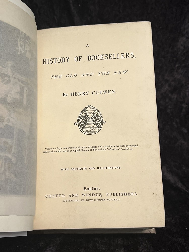 [BOOKSELLERS: BOOKS ABOUT BOOKS] The History of Booksellers London, c1873 A History of Booksellers, The Old And The New; George Curwen. Chatto and Windus, London, c 1873. Quarto [App. 7.75 x 5.5 in.] Frontis, numerous illustrations, new quarter calf, raised bands, title label inset on morocco, gilt lined. Very good condition. A fine study- absorbing reading - and must for the book-lover. As Carlyle said "Ten ordinary histories of kings ... were well exchanged against the tenth part of one good history." ___________ _________________________ _ Items listed on eBay are merely representative of our broader inventory. We specialize in early printed works in English, with a particular focus on first editions and significant printings of the Bible in English. Our stock includes a range of Tyndale New Testaments, as well as first editions of the Coverdale Bible (1535), the Matthews Bible (1537), the Great Bible (1539), the Geneva Bible (1560), the Bishops Bible (1568) and the King James Bible (1611). Please do not hesitate to enquire regarding other early printed books and manuscript s.
