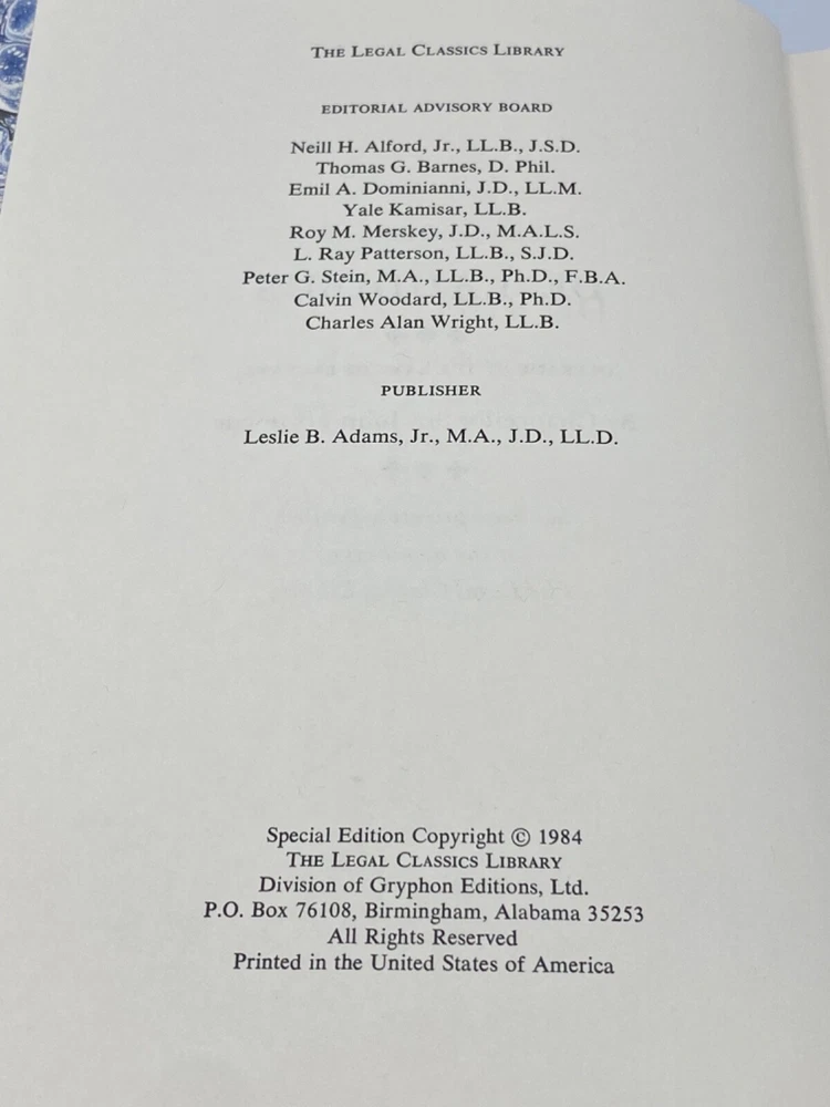 MAKES THE PERFECT GIFT FOR ANY FAN OF VINTAGE LEGAL CLASSICS / LAWYER / HISTORY OF ENGLAND’S JUDICIARY ** PLEASE READ : Mahalo for taking the time to look at our listing. We truly appreciate it. We always do our BEST to give you the most accurate description of these beautiful books. If, however, you have any SPECIFIC questions about the SIZE of the book, NUMBER of pages, TYPE of leather, SMELL or FEEL of the book, PLEASE email us through EBay’s mail system BEFORE you bid, and we will be HAPPY to give you more information. We want you to be completely happy with your purchase and keep you as our customers for years to come!** DESCRIPTION: Legal Classics Library by Gryphon Editions FULL LEATHER edition of IN PRAISE OF THE LAWS OF ENGLAND by FORTESCUE. GRYPHON editions are very similar to Easton Press and Franklin Library editions, bound in full-leather with gorgeous boards . THIS IS A SCARCE HEIRLOOM LEGAL CLASSICS EDITION WITH GORGEOUS DEEP GILT IMPRESSIONS TO THE BOARDS AND BEAUTIFUL ORNATE PASTEDOWNS. IT IS A FACSIMILE OF THE ROBERT CLARKE & CO. 1974 EDITION. 🍍 NOT INCLUDED… 😃 ABOUT THE BOOK: Fortescue's dialogue in praise of the laws of England, written for the instruction of Henry VI's son, is one of the essential sources for English legal history, and has always been renowned among lawyers for its lucidity of style and for the unique account it gives of the workings of contemporary English law. CONDITION: Book is in LIKE NEW condition for its age with only a couple of faint, negligible rubs to the gilt page ends, barely worth noting (SEE PICS FOR BETTER DETAILS). NO ATTACHED BOOKPLATES, WRITING FROM PREVIOUS OWNER, ETC. It is a GORGEOUS edition. SHIPPING: FREE to US ADDRESSES ONLY. INTERNATIONAL $ based on location. WE PRIORITY MAIL & PACK VERY WELL. Please check out our other listings of Easton Press, Franklin Library, Limited Editions Club, First Edition Library, Heritage Press, International Collectors Library, and Folio Society editions. WE DO COMBINE SHIPPING IF YOU PURCHASE MORE THAN ONE COPY. Mahalo for looking at our listings! By bidding/purchasing this item, you are helping a very grateful family who sends you our WARMEST ALOHA & MAHALO!