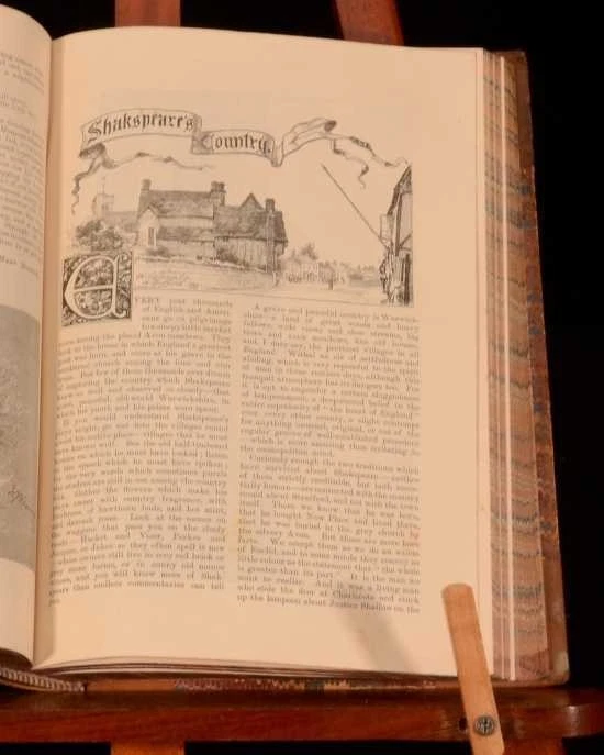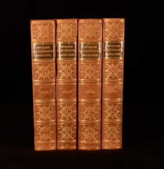 Click here to see our other books! The English Illustrated Magazine In Four Volumes Various 1884 - 1887 Macmillan and Co : London 10" by 6.5" (viii) 784pp; (viii) 817pp [+ illustrations]; (viii) 832pp; (viii) 824pp. SUMMARY A collection of some editions of The English Illustrated Magazine by Various Contributors. Illustrated,Leather Binding Overall Condition: Good This book weighs 7 KG when packed UK Postage: £ 4.49 US Postage: £ 53.99 EU Postage : £ 30.99 European Postage: £ 55.99 Asia Postage: £ 89.99 Worldwide Postage: £ 189.99 DESCRIPTION In four volumes. These cover the years 1883-1884, 1884-1885, 1885-1886 and 1886-1887. With a Table of Contents to the front of each volume. The English Illustrated Magazine was a monthly publication that ran for 359 issues between October 1883 and August 1913. Features included travel, topography, and a large amount of fiction and were contributed by writers such as Thomas Hardy, Henry James, Stanley J. Weyman and Max Pemberton. Illustrators included Walter Crane, Carlo Perugini, Alma Tadema, Louis Davis and Louis Wain. When it began publication, it was the only illustrated competitor to Cassell's Magazine. CONDITION In half calf bindings with marbled paper covered boards. Externally, sound with slight rubbing. There is some minor loss to the leather. Joints are cracking, and backstrip is lifting on the 1885 volume. There is a paper label to the front board on the 1887 volume. There is a bookbinder's label to the rear pastedown in all volumes. Internally, generally firmly bound, though some hinges are tender. Pages are generally bright and clean. There is a bookplate to the front pastedown in all volumes. Overall Condition: Good GLOSSARY OF TERMS Overall Condition (Dustwrapper condition rating is shown after that for the book itself, where a dustwrapper is present) Fine - Very well preserved copy showing very little wear Very Good Indeed - Only one or two minor faults, really a very attractive copy Very Good - Quite a wide term meaning no major faults but probably several smaller ones often expected given the age of the book, but still a respectable copy Good - Meaning not very good. Some more serious faults as will be described in the condition report under 'condition' Good Only - Meaning one or more faults that could really do with repair Fair - As with good only above but with other faults leaving a compromised copy even after repair Poor - Really bad and possibly seriously incomplete. We only sell books in this condition where their rarity or value makes them attractive none the less. Major defects will be described. GUARANTEE We offer a full money back guarantee on our descriptions. Please ask for details and conditions. We prefer PAYPAL. If you pay via PAYPAL we will post the item off the same or the next working day with the postage you have selected. Please note we cannot accept USD cheques