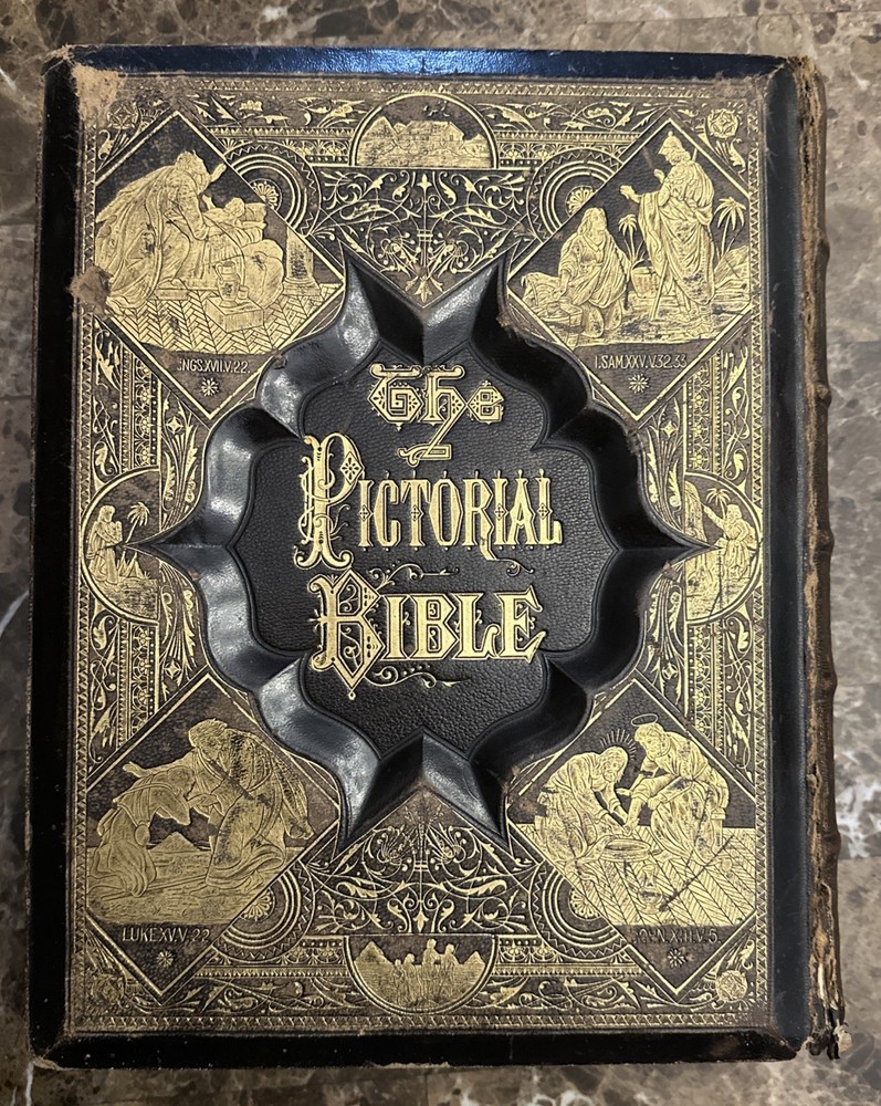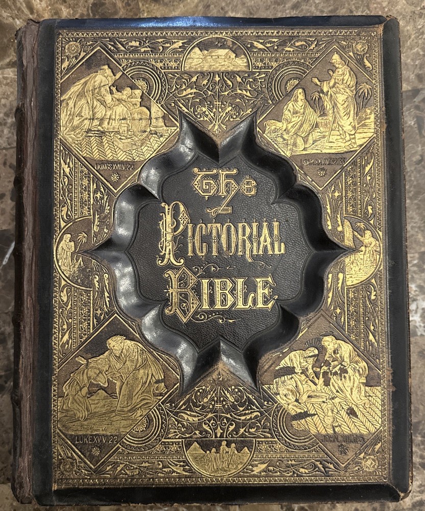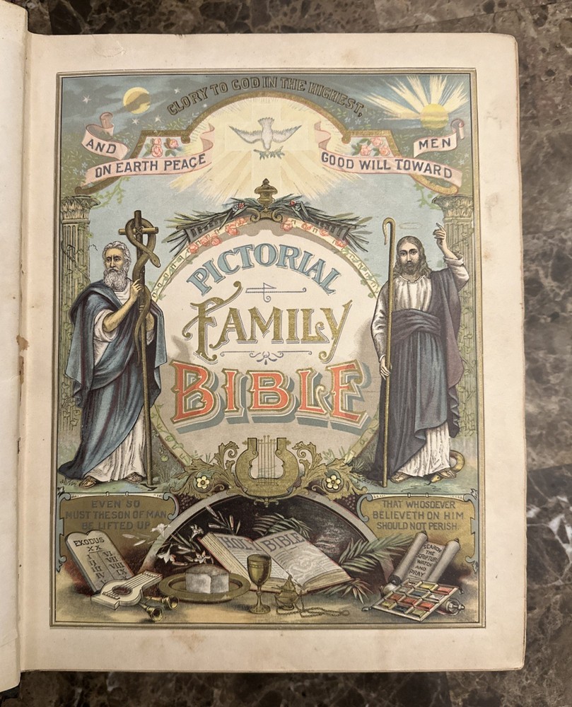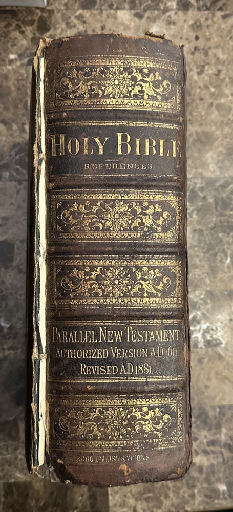 1885 Antique Leather Bound Holy Bible w/ Illustration