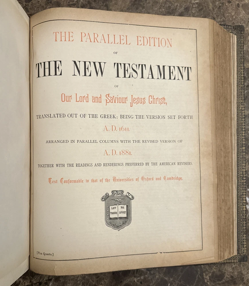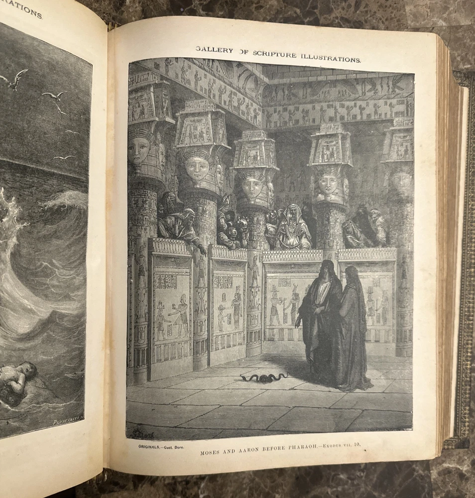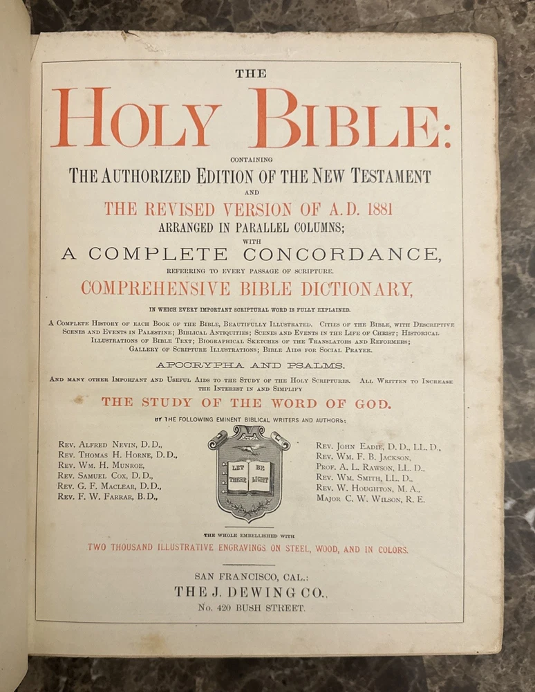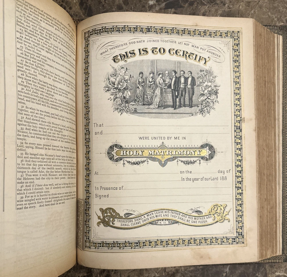 1885 Antique Leather Bound Holy Bible w/ Illustration