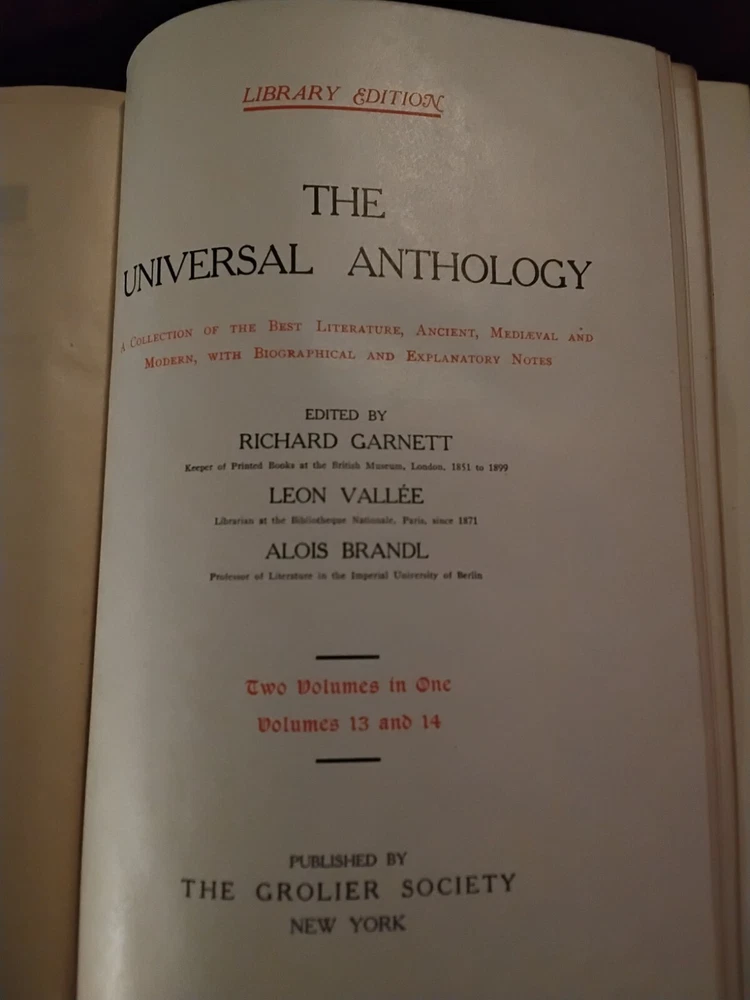 Dive into the rich tapestry of history with the 1899 The Universal Anthology, Library Edition, volumes 13 & 14, bound in leather. These volumes are a testament to the literary craftsmanship of the past, curated by the esteemed Grolier Society. An ideal addition for collectors and history enthusiasts alike, the book offers a glimpse into the diverse narratives and stories that have shaped our world. Some color prints & Photogravures & Raised color prints. Good condition for it's age ,gold trim page's. There is wear to the binding ,some pages are yellowing and some writing in book,