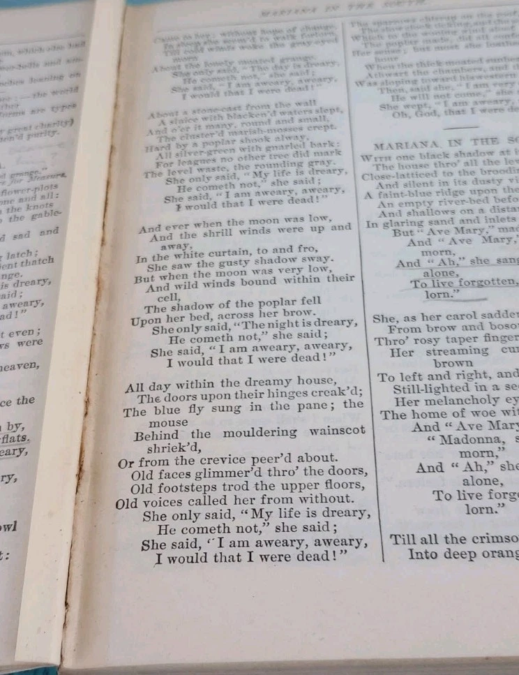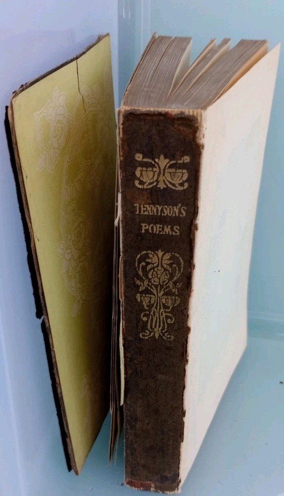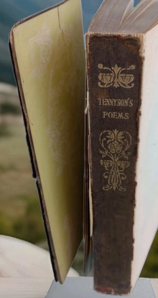 Distressed MISSING A COVER Poor condition Early Edition 1897 and 1900 on copyright page Very old antique book The Complete Poetical Works of Alfred Tennyson Leather Covers are detached Distressed outer spine Binding intact all pages are there There Is a photo portrait of Tennyson Smoke free environment and pet friendly environment....