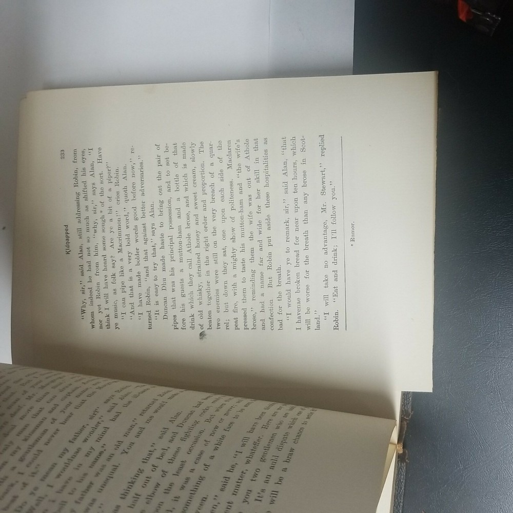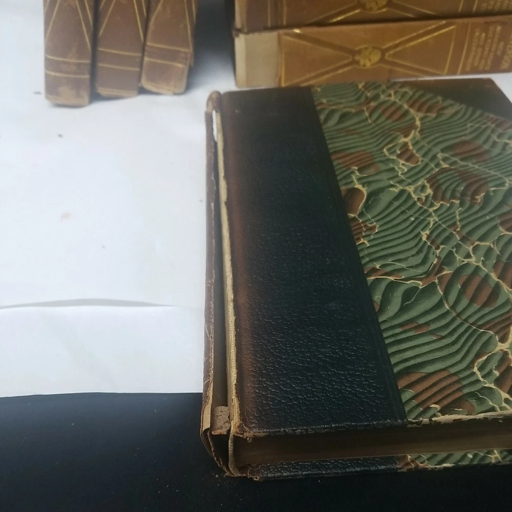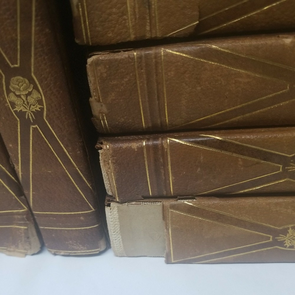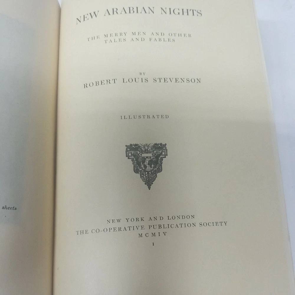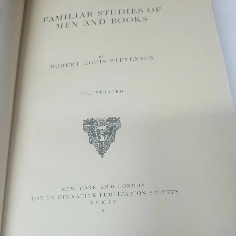 1904 WORKS OF ROBERT LOUIS STEVENSON 8 VOL Illustrated Co-operative Publications. 1904 WORKS OF ROBERT LOUIS STEVENSON 8 VOL SET circa 1904 Published by Co-Operative Publications See photos Volumes are solid and tight with sound hinges. Spines are all sunned, with light tearing at the top as pictured. Some spots on spines. Beautiful looking set lined up on the shelf, marbled boards sharing the cover with leather to make Book that looks good and feels good in the hand. Weight is 18 lb. 9 oz. Without packaging. 9¼" x 6⅝" x 10⅝" Offers always considered. Thank you for looking. PS1-1b.120923