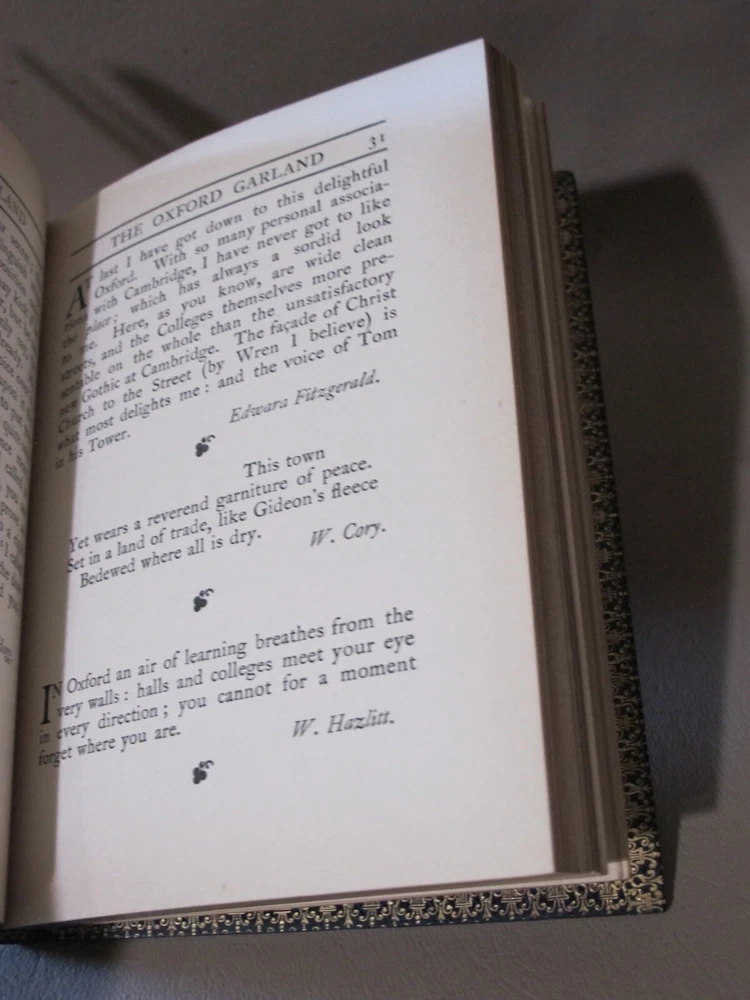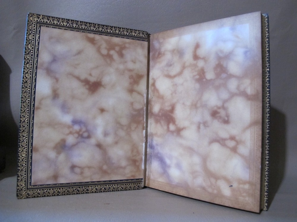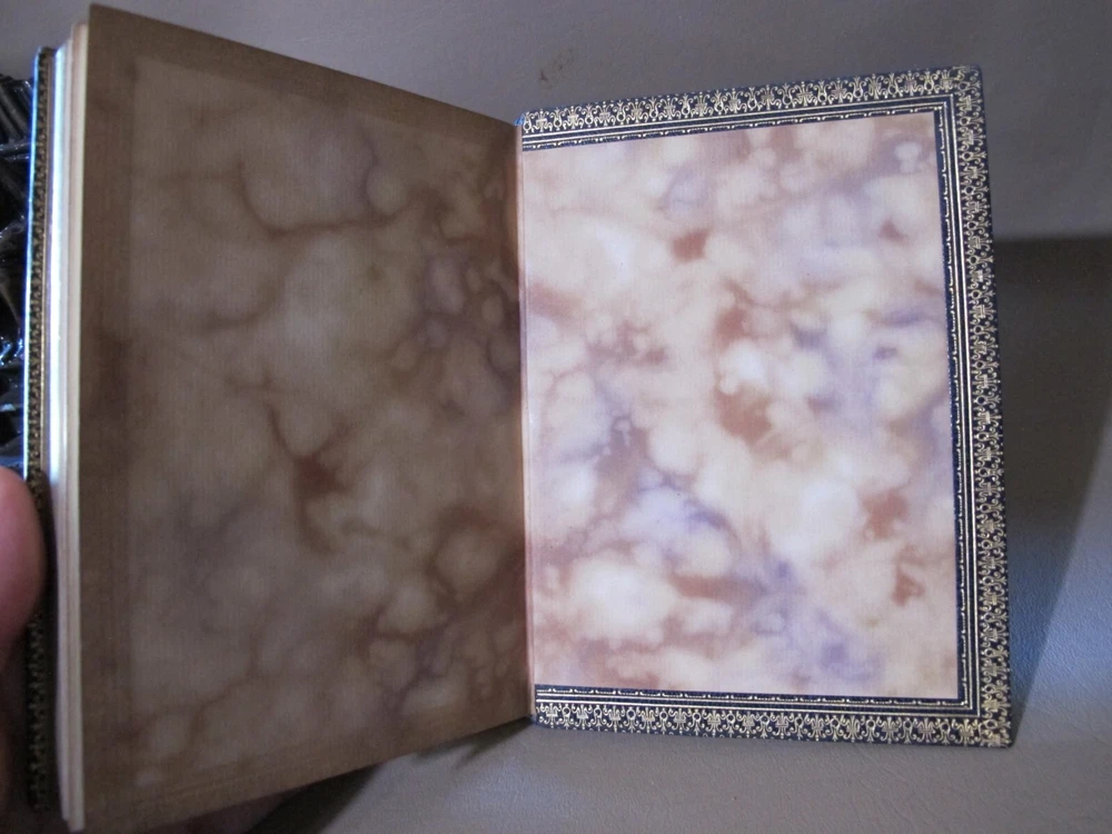 Bound in full crushed Morocco leather with gilt borders around painted end papers, and gilt page edges on all sides. Illustrated with one tissue guarded frontispiece. Title printed in blue and black, and text divided by simple printers devices. Gift inscription dated 1922 on the first free end paper. 6.5" x 5.75" with 96 numbered pages. Near fine condition, wear between spine and front cover and top inch or so is just starting; otherwise excellent condition antique book. No reserve! Be sure to check out our other auctions on now too! Track Page Views With Auctiva's Counter