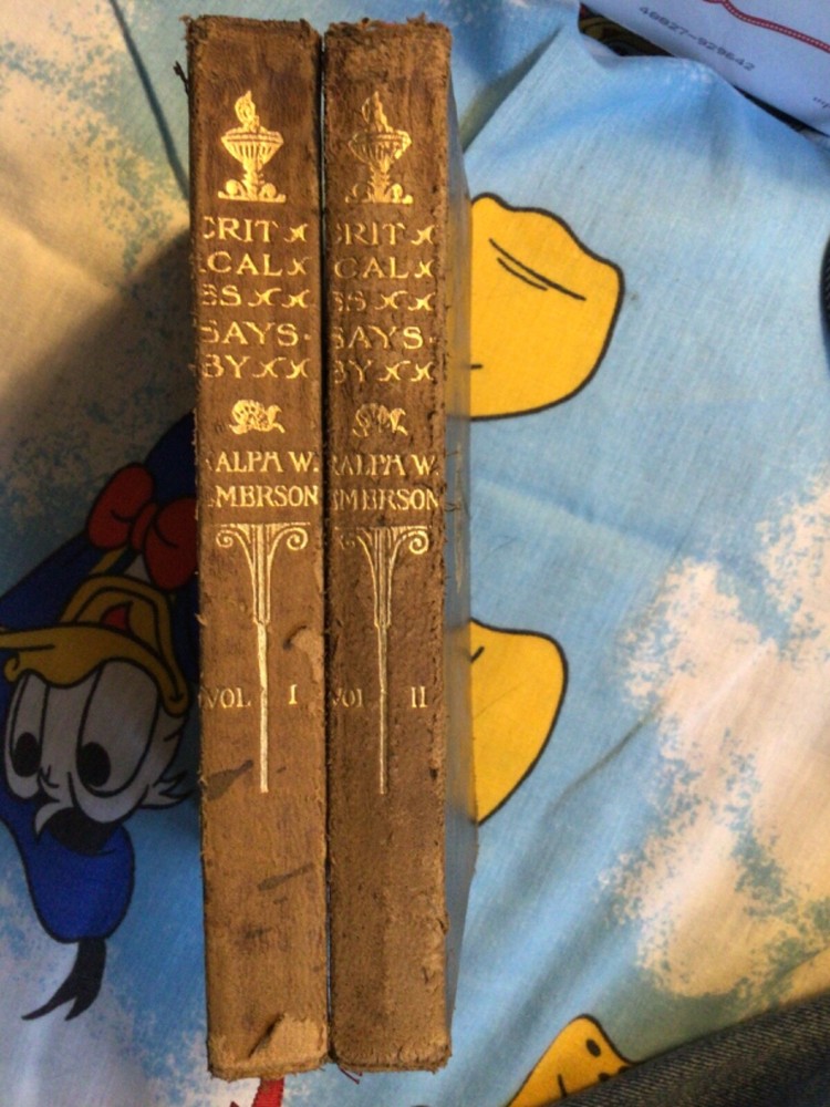 Delve into the profound world of philosophy and literature with "1910 Critical Essays by Ralph Waldo Emerson," available in a luxurious two-volume set, each encased in elegant leather covers. Published by Thomas Y. Crowell & Company, these books offer a timeless collection of essays that explore the realms of religion and spirituality, intricately woven with Emerson's signature insights. Crafted in the English language and originating from New York City, NY, this original edition embraces the rich heritage of North American thought and culture. A treasure for both bibliophiles and enthusiasts of classic literature, this set is a testament to Emerson's enduring legacy and a distinguished piece for any collector's library. Looks like they’ve never been read. Very solid binding and clean pages. USA shipping only