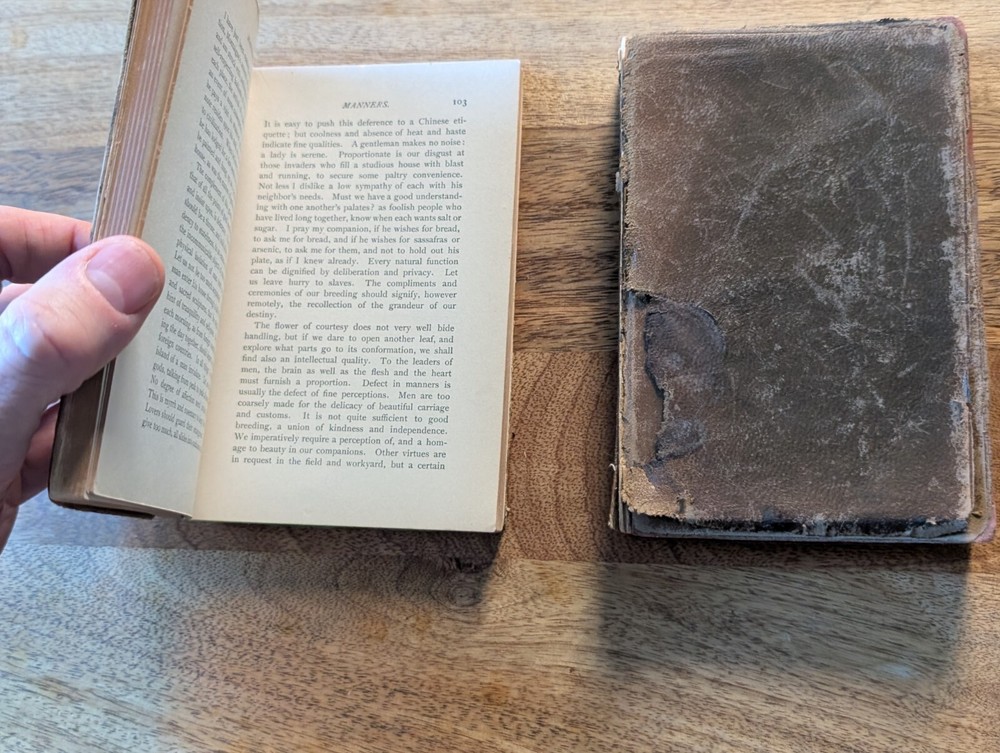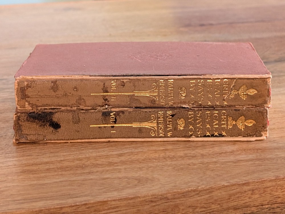 Classic leather-bound edition of Ralph Waldo Emerson's two volumes of essays.