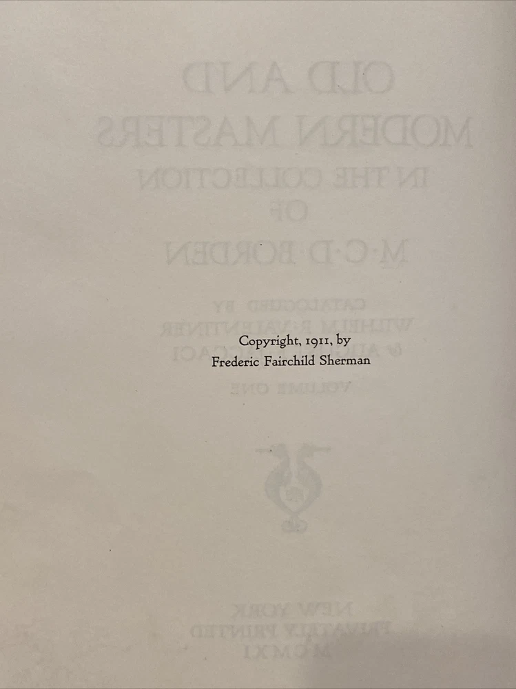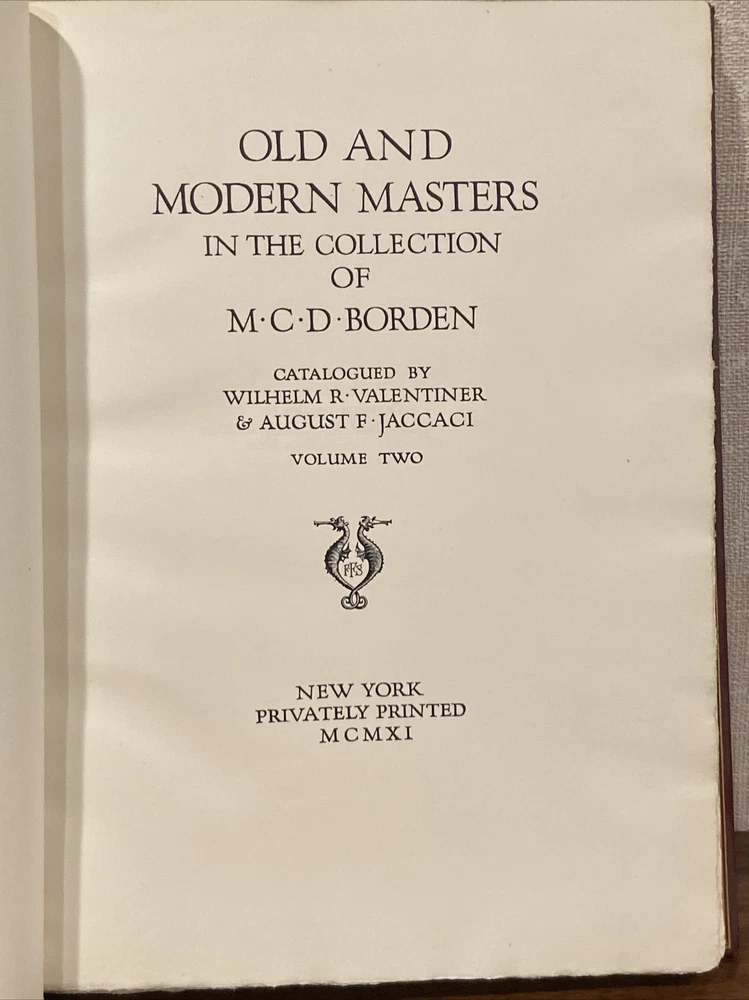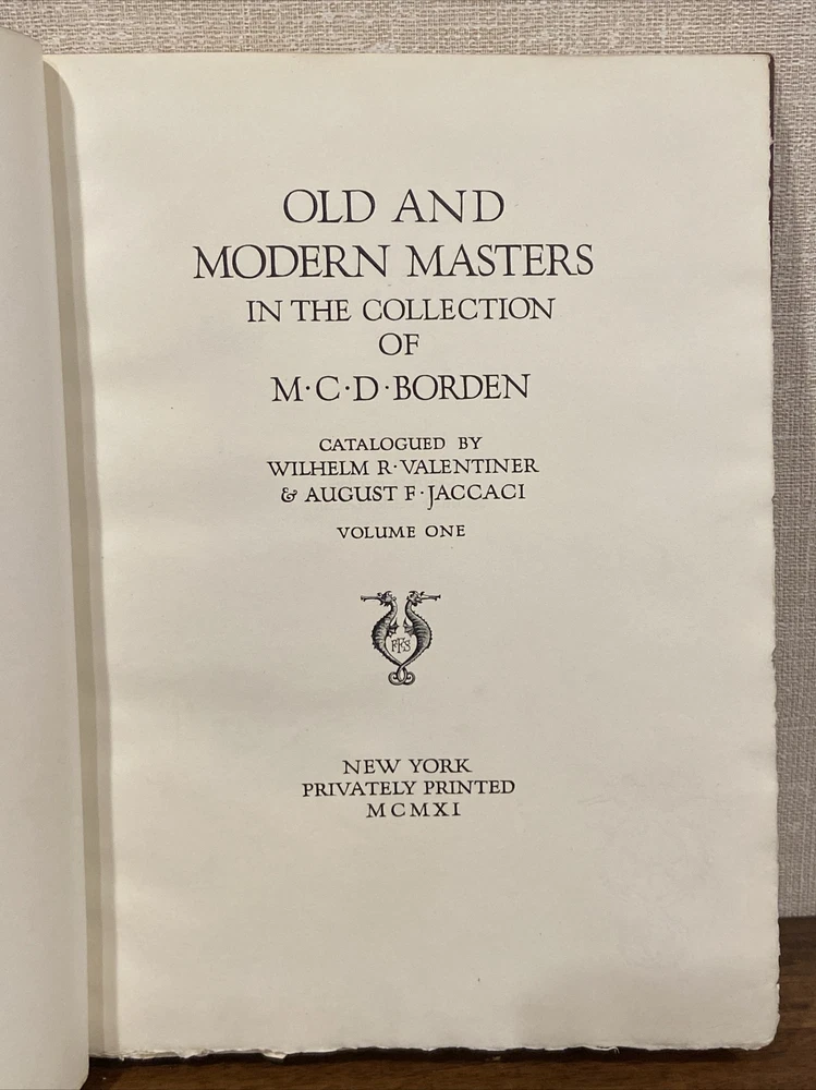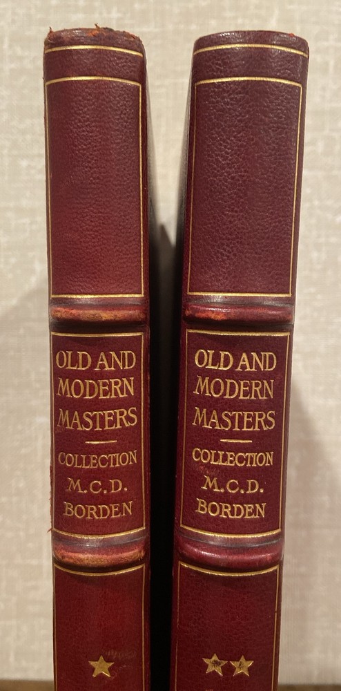 This is a beautiful and rare complete two volume set of the first edition 1911 Old and Modern Masters in the Collection of M.C.D. Borden Cataloged By Wilhelm Valentier and August Jaccaci. This set is in full leather binding with a vibrant red color and they are in fantastic condition. They do have stamps in the front of both books as shown from a gallery on 5th Avenue. They are quite large and measure about 11” by 14” tall each. Please judge for yourself from the photos and feel free to contact with any questions. Shipping policy: Flat rate shipping charge to the lower 48 US states. Alaska/Hawaii may require additional shipping charges. If from Alaska or Hawaii, please contact ahead of any purchases. All international shipments are handled by the eBay Global Shipping Program (GSP).