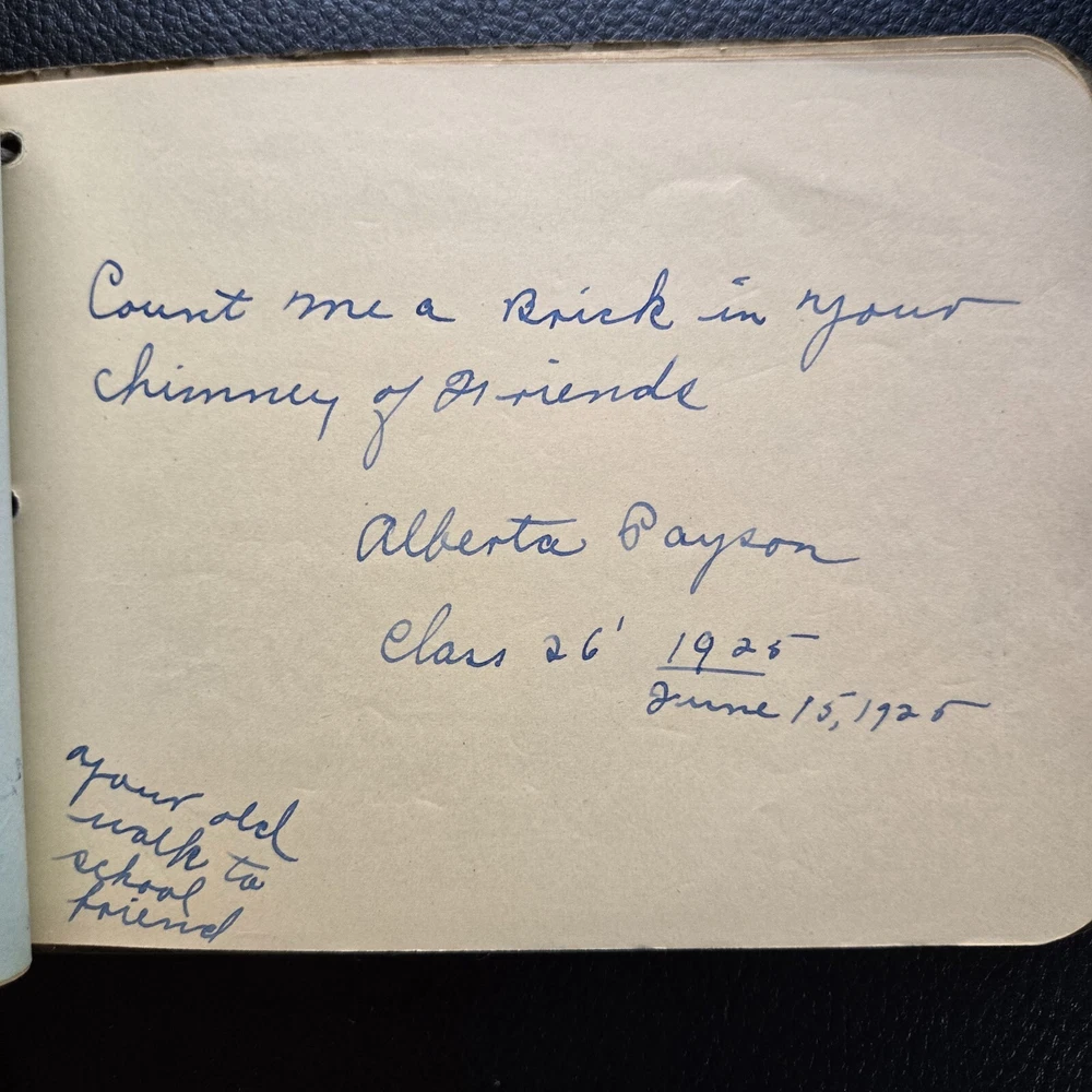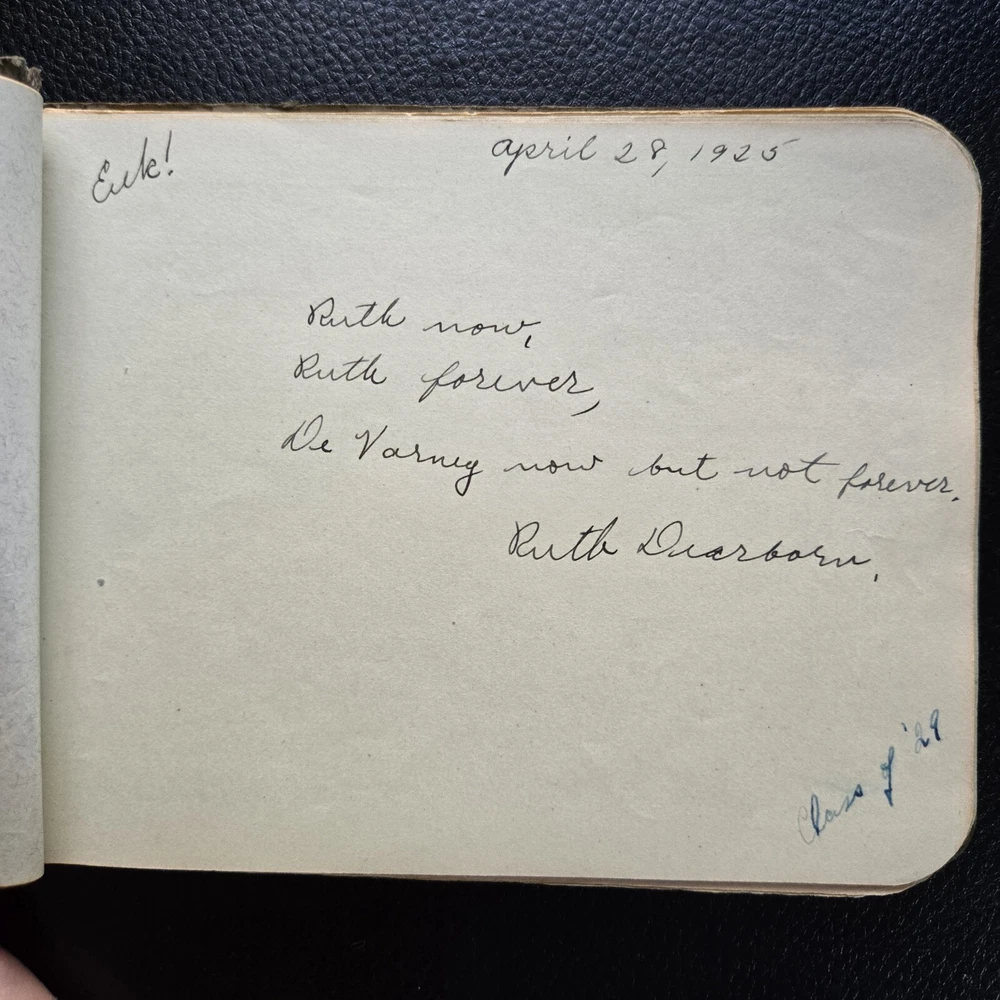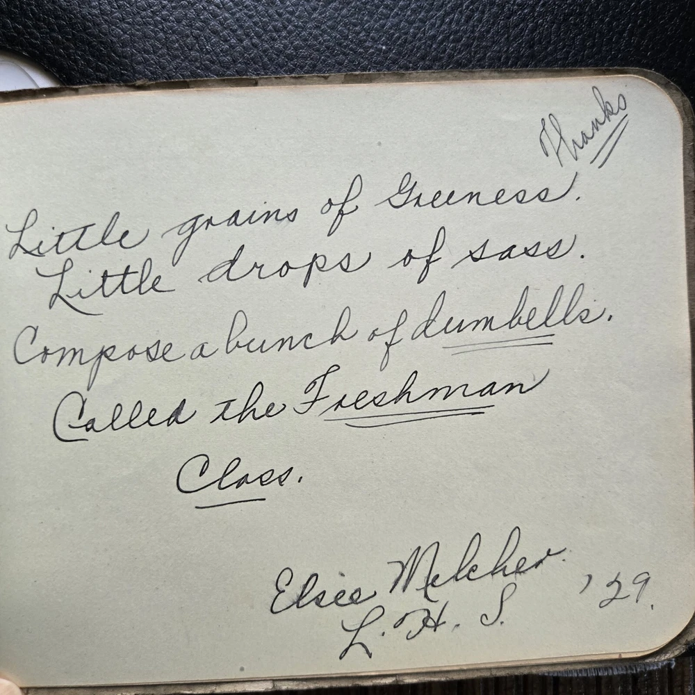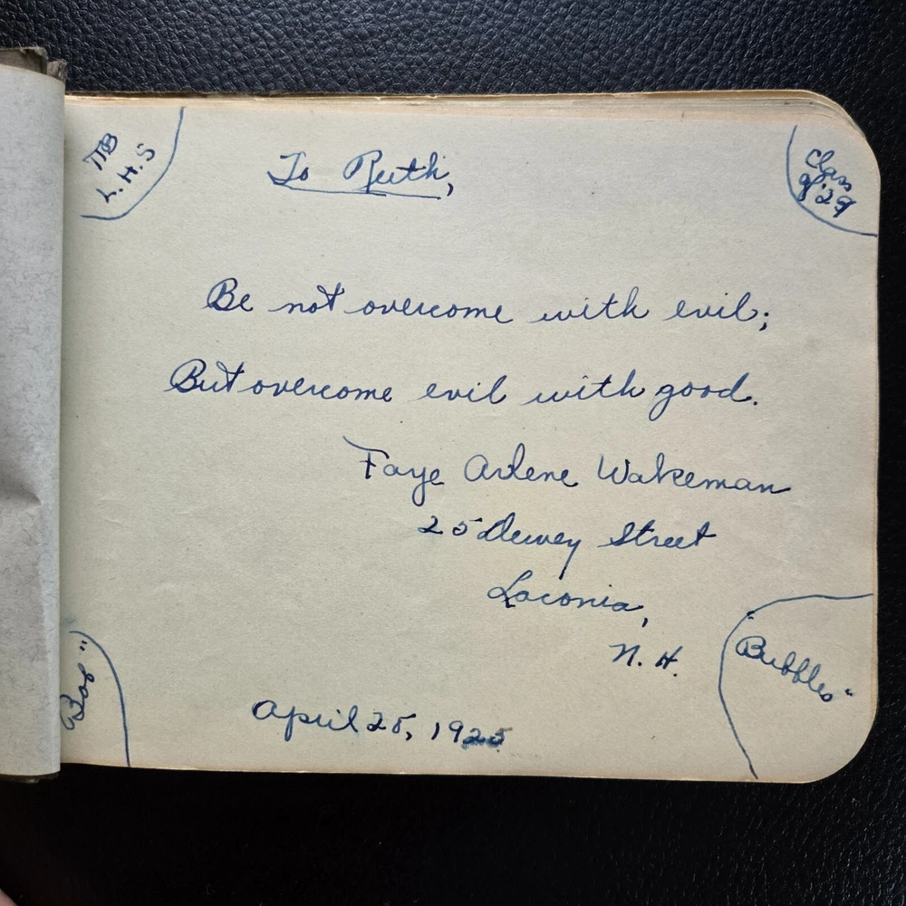 This vintage 1920s autograph book is such a charming piece of history! The leather cover shows its age with lovely wear, and the handwritten notes from Laconia High School students give it so much character. About half the pages are filled with personal messages, making it a heartfelt time capsule. The original binding ribbon is still intact, and there are no unpleasant smells—just pure nostalgia. A perfect find for collectors or anyone who loves historical memorabilia. Shipping was fast, and the item arrived just as described in the photos. Absolutely thrilled with this treasure!