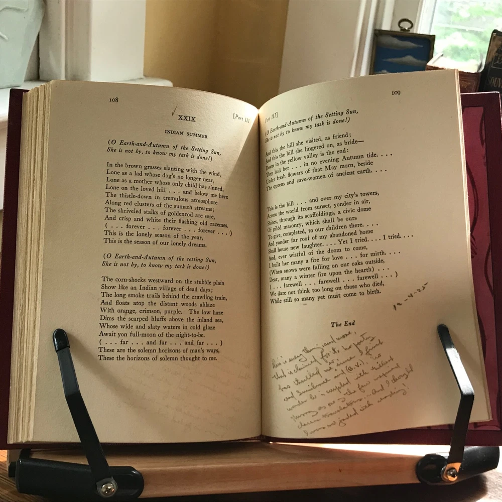 This finely bound 1925 edition of *Two Lives* by William Ellery Leonard is a stunning piece of craftsmanship. The Deco-style leather boards and vibrant pink-and-purple endpapers add elegance, while the gilt top edge and tight binding ensure durability. Light wear and a few handwritten notes by Jefford F. Oller give it character without distracting from its beauty. A true collector's gem—both visually striking and well-preserved. Perfect for poetry lovers and vintage book enthusiasts alike!