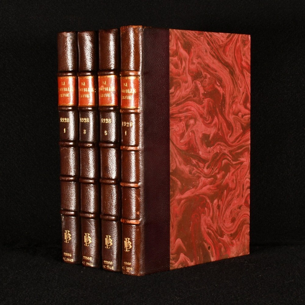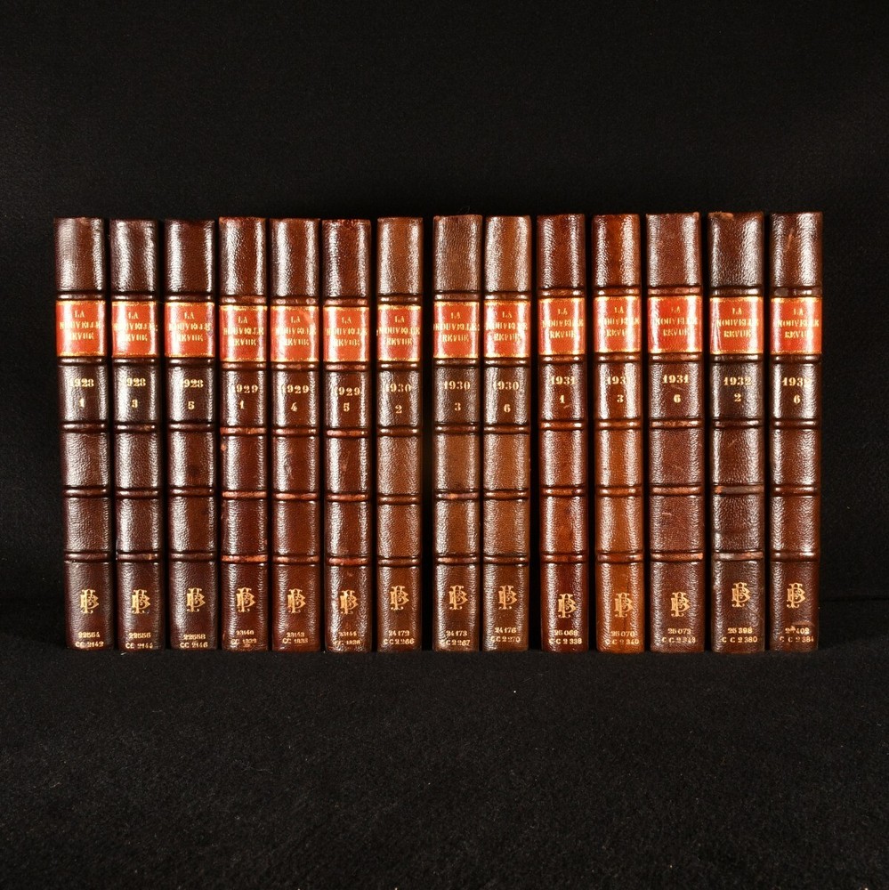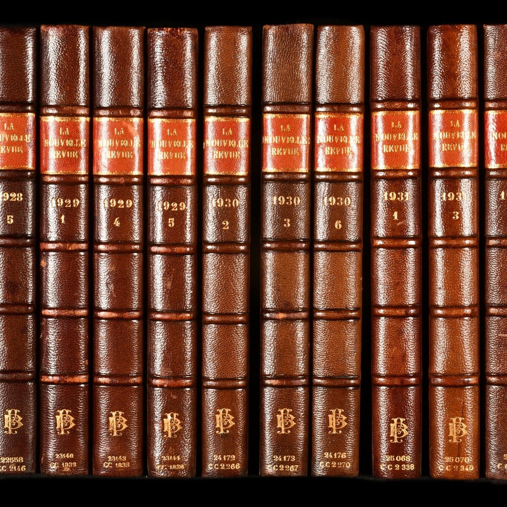 Click here to see our other books! La Nouvelle Revue Various 1928-1932 La Nouvelle Revue : Paris 9.5" by 6.5" [3] 319; [3] 318; [3] 319; [3] 319; [3] 318; [3] 316; [3] 317; [3] 319; [3] 317; [3] 320; [3] 316; [3] 319; [3] 318; [3], 318pp SUMMARY A very smart set of selected periodicals from 'La Nouvelle Revue' through the years 1928 to 1932, uniformly bound in quarter morocco. In French. Leather Binding,Rebound,Very Scarce Overall Condition: Very Good Indeed This book weighs 15 KG when packed UK Postage: £ 4.49 US Postage: £ 79.99 EU Postage : £ 40.99 European Postage: £ 75.99 Asia Postage: £ 159.99 Worldwide Postage: £ 249.99 DESCRIPTION Comprised of fourteen volumes published from 1928 to 1932. This set of selected works is comprised of periodicals from the French bimonthly review of print media, 'La Nouvelle Revue'. This periodical espoused Republican values, and was intended to oppose the other Republication periodical 'Revue Des Deux Mondes', which considered too conservative. This periodical was founded in October of 1879 by French socialite, writer, and republican, Juliette Adam. This set is comprised of the following volumes: Volumes XCIII, XCV, and XCVII from 1928 Volumes XCIX, CII, and CIII from 1929 Volumes CVI, CVII, and CX from 1930 Volumes CXI, CXIII, and CXVI from 1931 Volumes CXVIII and CXXII from 1932 Previously housed in the Banque de France Bibliotheque, with library stamps to the title pages. All volumes are also uniformly bound in the Banque de France quarter morocco binding, making it a very attractive and unique set. CONDITION Handsomely bound in quarter morocco with marble covered boards. Externally, excellent, with minimal shelf wear. Slight fading to the paper covered boards to Volume CX from 1930. Banque de France Bibliotheque library stamp to the title page of each volume. Internally, all volumes firmly bound. Page 6 to Volume CX from 1930 has a closed tear that has been crudely repaired. Pages slightly age-toned but otherwise clean throughout. Overall Condition: Very Good Indeed GLOSSARY OF TERMS Overall Condition (Dustwrapper condition rating is shown after that for the book itself, where a dustwrapper is present) Fine - Very well preserved copy showing very little wear Very Good Indeed - Only one or two minor faults, really a very attractive copy Very Good - Quite a wide term meaning no major faults but probably several smaller ones often expected given the age of the book, but still a respectable copy Good - Meaning not very good. Some more serious faults as will be described in the condition report under 'condition' Good Only - Meaning one or more faults that could really do with repair Fair - As with good only above but with other faults leaving a compromised copy even after repair Poor - Really bad and possibly seriously incomplete. We only sell books in this condition where their rarity or value makes them attractive none the less. Major defects will be described. GUARANTEE We offer a full money back guarantee on our descriptions. Please ask for details and conditions. We prefer PAYPAL. If you pay via PAYPAL we will post the item off the same or the next working day with the postage you have selected. Please note we cannot accept USD cheques