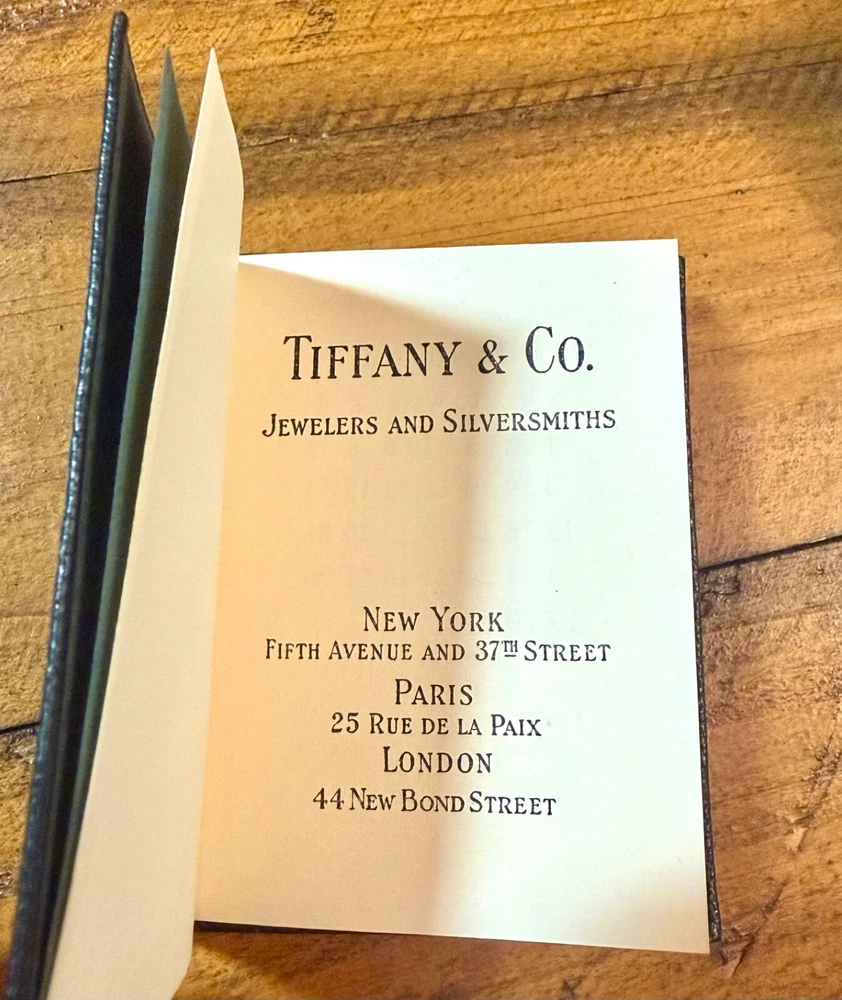 Up for sale is a VERY RARE 1933 "TIFFANY & CO" Mini Travel Calendar. FULL GREEN LEATHER BOUND w/ GOLD Gilt Decorations across the surface of Calendar. COMES FROM PET-FREE, CHILDREN-FREE, SMOKE-FREE HOUSEHOLD. Calendar Date: 1933 Condition: Brand new w/ no writings. Brand: Tiffany & Co. Book Material: Green Leather Bound Decoratives: "1933" Year Imprint in Gold Gilt Letterings Features: Page for each month of 1933, Legal US Holidays List, Birth Stone List, Wedding Anniversaries List & many more. Size: 3.5 inches x 2.5 inches VERY RARE COLLECTORS PIECE "TIFFANY & CO. LEATHER MINI CALENDAR. EXCELLENT OVERALL VINTAGE CONDITION. SOME SMALL SCRUFFS, SURFACE MARKS FROM VINTAGE AGE. SOME SMALL SMUDGE ON INSIDE OF THE LAST PAGE IN THE BOOK. NO MISSING PAGES, BREAKS, WRITTEN TEXT INSIDE OF BOOK. BEAUTIFUL GREEN LEATHER FULLY BOUNDED. HAS VERY NICE GOLD GILT LETTERINGS AND DECORATIONS OUTSIDE OF THE BOOK. HAS SOME INTERESTING PAGES IN THE BACK. THIS INCLUDES: - BIRTH STONE CHARTS BY MONTH - STERLING SILVER MARKS (USE 1854-55) - TIFFANY CO BRAND LOGO MARKS BY YEAR. - MEMORANDA PAGE - TIFFANY CO BRAND CHRONOLOGY HISTORY BY YEAR - U.S. LEGAL HOLIDAYS BY DATE - AND MORE. THIS IS AN EXCELLENT MINI BOOK FOR TIFFANY & CO COLLECTORS, ENTHUSIASTS AND GENERAL VINTAGE HISTORY BUFFS. __ Included in Sale: - 1933 TIFFANY CO. MINI LEATHER CALENDAR - VINTAGE TIFFANY CO. BOX **MANDATORY USPS SHIPPING INSURANCE __ FREE SHIPPING TO US STATES ONLY. πΊπΈ FOR INTERNATIONAL BUYERS - MESSAGE FIRST BEFORE PURCHASE. Payment must be completed 24 hours upon purchase. MANDATORY signature confirmation delivery.
