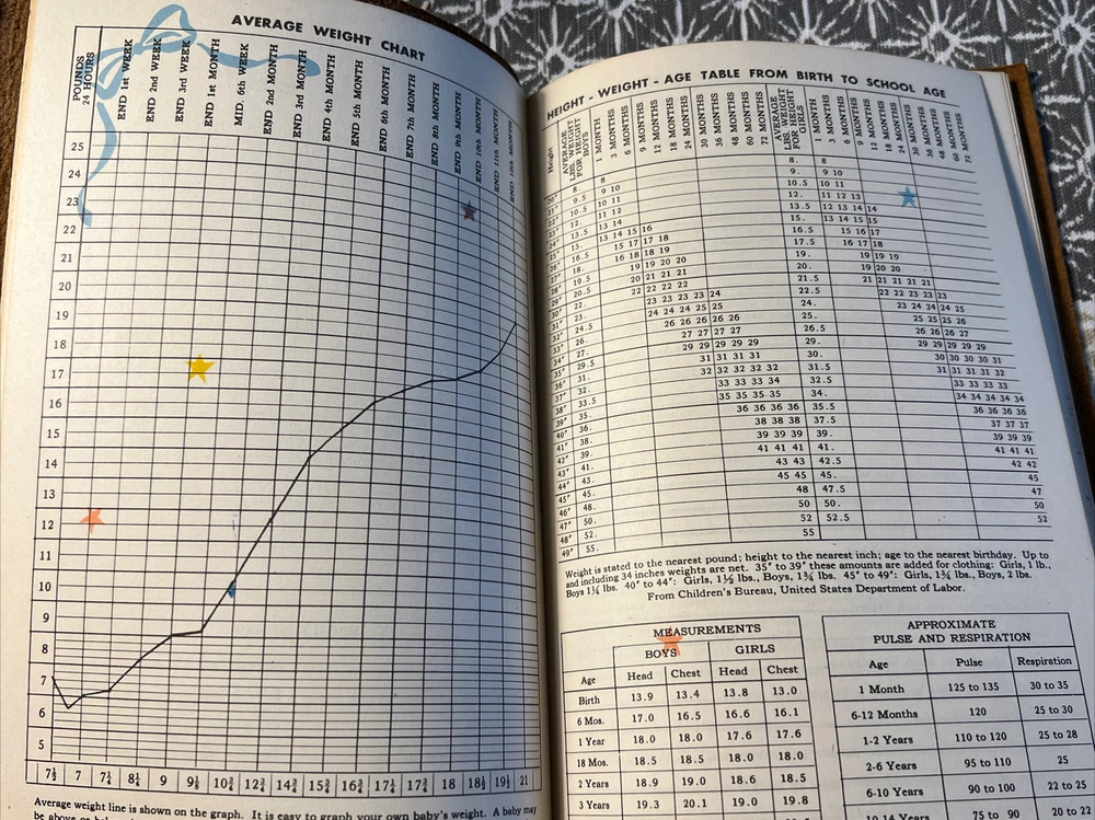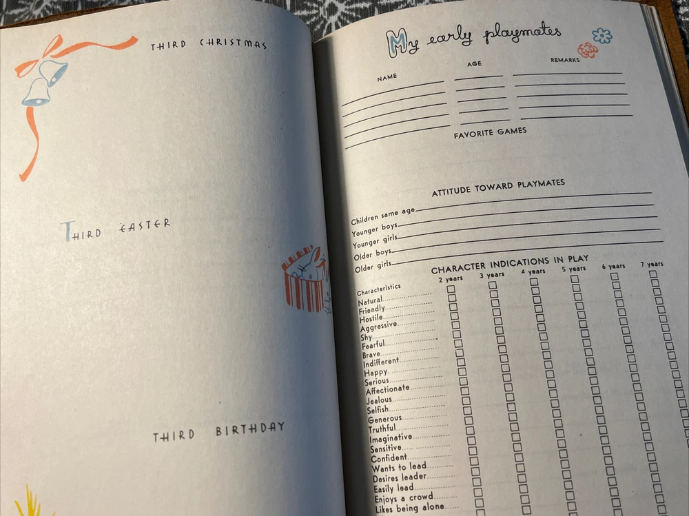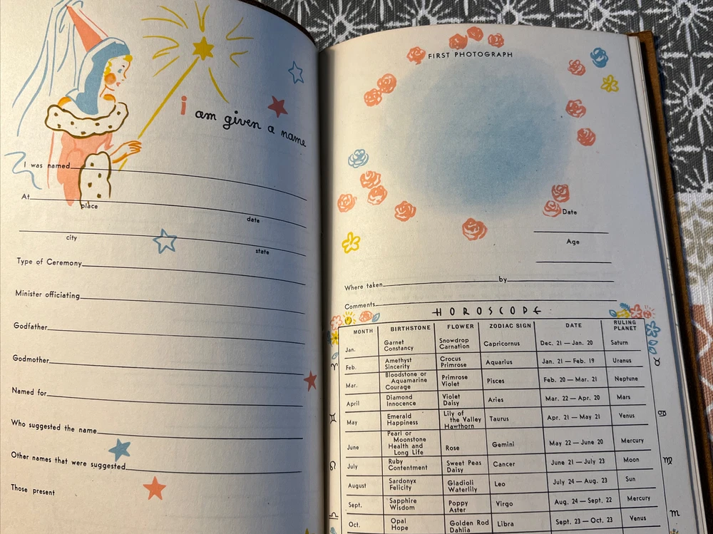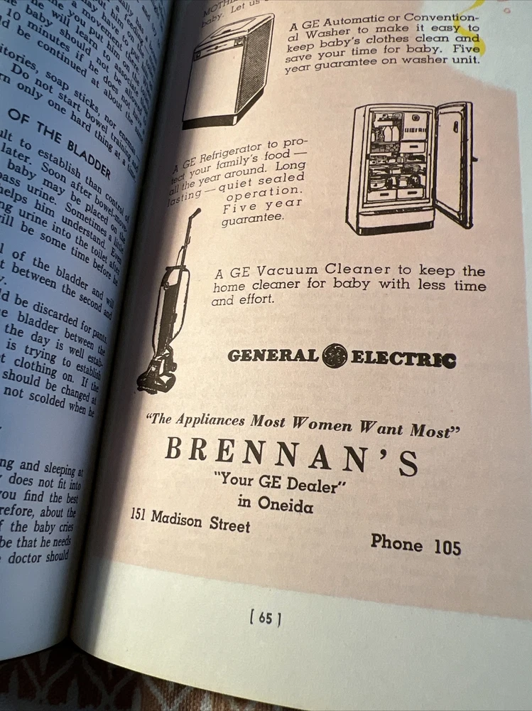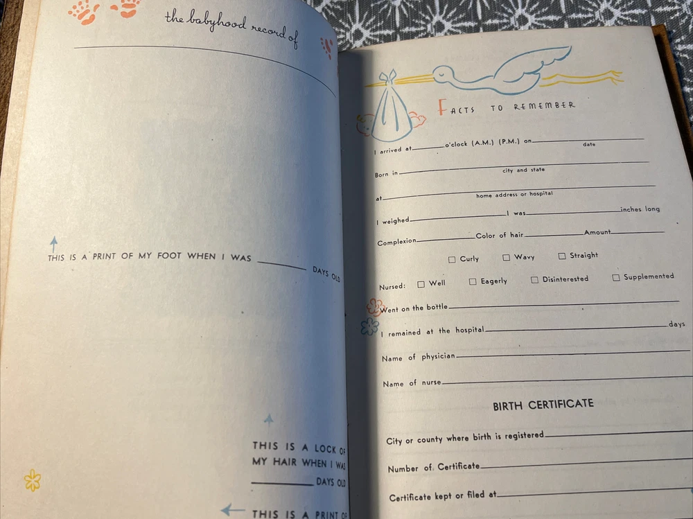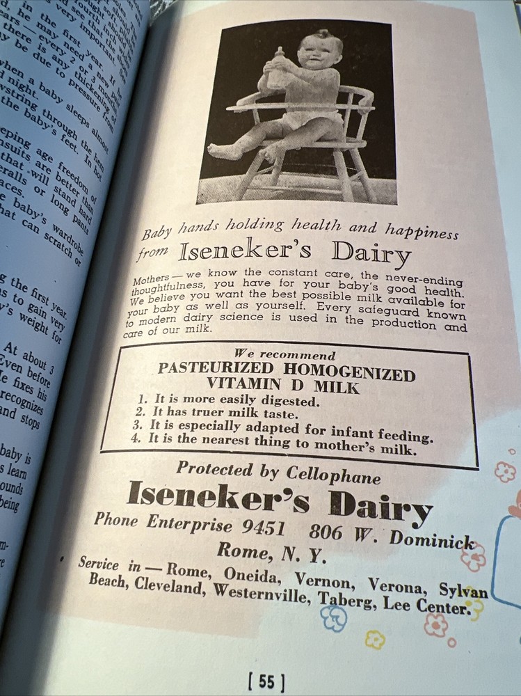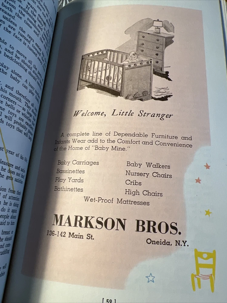Great 1947 journal/ledger from Oneida, New York. Measures 8 1/2” x 5 1/2”. 93 pages of great ads, graphics and spaces for baby’s and family information. “Theresa” in gold on the front. Please review photos carefully for condition and details. Feel free to ask any questions you may have before bidding. Vintage paper items are sold as is. Thank you so much!!
