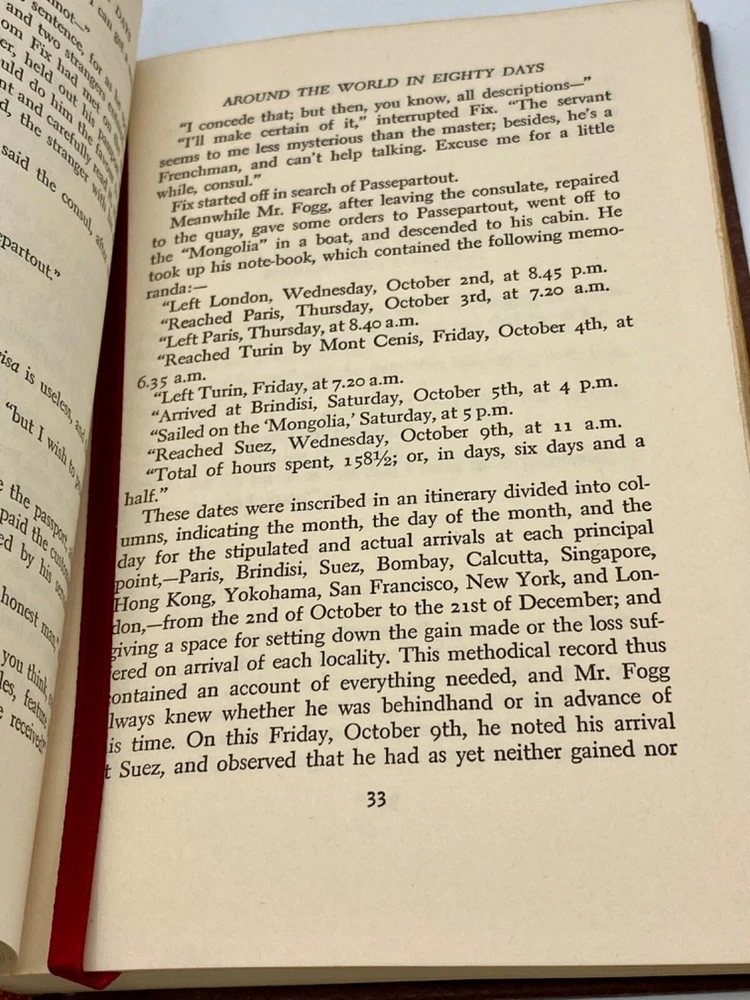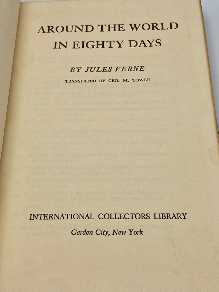 MAKES THE PERFECT GIFT FOR ANY FAN OF THE CLASSICS / VINTAGE FANTASY & SCIENCE FICTION NOVELS / JULES VERNE ** PLEASE READ : Mahalo for taking the time to look at our listing. We truly appreciate it. We always do our BEST to give you the most accurate description of these beautiful books. If, however, you have any SPECIFIC questions about the SIZE of the book, NUMBER of pages, TYPE of leather, SMELL or FEEL of the book, PLEASE email us through EBay’s mail system BEFORE you bid, and we will be HAPPY to give you more information. We want you to be completely happy with your purchase and keep you as our customers for years to come!** DESCRIPTION: INTERNATIONAL COLLECTORS LIBRARY’s fine leatherette binding, long out of print edition of AROUND THE WORLD IN 80 DAYS by JULES VERNE . THIS IS A VINTAGE HEIRLOOM ICL WITH LAVISH GILT IMPRESSIONS TO THE BOARDS AND SPINE DONE IN ACTUAL 24K GOLD . IT IS ONE OF THE MOST HIGHLY-PRIZED & MOST BEAUTIFUL EDITIONS OF THIS GREAT CLASSIC YOU CAN FIND. 🍍 NOT INCLUDED... 😃 The International Collectors Library was a book club series published by Doubleday Book & Music Clubs, Inc. from the late 1940’s through the late 1980’s. Generally, the books followed the 8-1/2″ x 5-3/4″ book size format. The binding designs were adapted based on old “Golden Age of Bookmaking” bindings, and made to look like leather-bound copies (leatherette). The bindings were embossed with 24K gold embellishments, and some copies had gilt edges (thin layer of gold leaf) applied. A sewn in satin ribbon marker was also added in most books. There were over 400 editions published in a variety of bindings. Some editions came with loose-leaf inserts that described the book club, the bindings and design styles, and a story synopsis of the book-in-hand. ABOUT THE BOOK: Around the World in Eighty Days is a classic adventure novel by the French writer Jules Verne, published in 1873. In the story, Phileas Fogg of London and his newly employed French valet Passepartout attempt to circumnavigate the world in 80 days on a £20,000 wager (roughly £1.6 million today) set by his friends at the Reform Club. It is one of Verne's most acclaimed works. The story starts in London on Tuesday, October 1, 1872. Fogg is a rich English gentleman living in solitude. Despite his wealth, Fogg lives a modest life with habits carried out with mathematical precision. Very little can be said about his social life other than that he is a member of the Reform Club. Having dismissed his former valet, James Foster, for bringing him shaving water at 84 °F (29 °C) instead of 86 °F (30 °C), Fogg hires a Frenchman by the name of Jean Passepartout as a replacement. At the Reform Club, Fogg gets involved in an argument over an article in The Daily Telegraph stating that with the opening of a new railway section in India, it is now possible to travel around the world in 80 days. He accepts a wager for £20,000 (equal to about £1.6 million today) from his fellow club members, which he will receive if he makes it around the world in 80 days. Accompanied by Passepartout, he leaves London by train at 8:45 P.M. on Wednesday, October 2, 1872, and is due back at the Reform Club at the same time 80 days later, Saturday, December 21, 1872. Description CONDITION: Book is in AMAZING condition for its age (67 YEARS OLD) with shelfwear to the edges of the boards & endpages, something very common in these very old editions (SEE PICS FOR BETTER DETAILS). NO ATTACHED BOOKPLATES, WRITING FROM PREVIOUS OWNER, ETC. It is a BEAUTIFUL edition. SHIPPING: FREE TO US ADDRESSES ONLY. INTERNATIONAL $ based on location. WE SHIP PRIORITY MAIL & PACK VERY WELL. Please check out my other listings of Easton Press, Franklin Library, Limited Editions Club, First Edition Library, Folio Society, Heritage Press, and International Collectors Library editions. WE DO COMBINE SHIPPING IF YOU PURCHASE MORE THAN ONE COPY. Mahalo for looking at our listings! By bidding/purchasing this item, you are helping a very grateful family who sends you our WARMEST ALOHA & MAHALO!