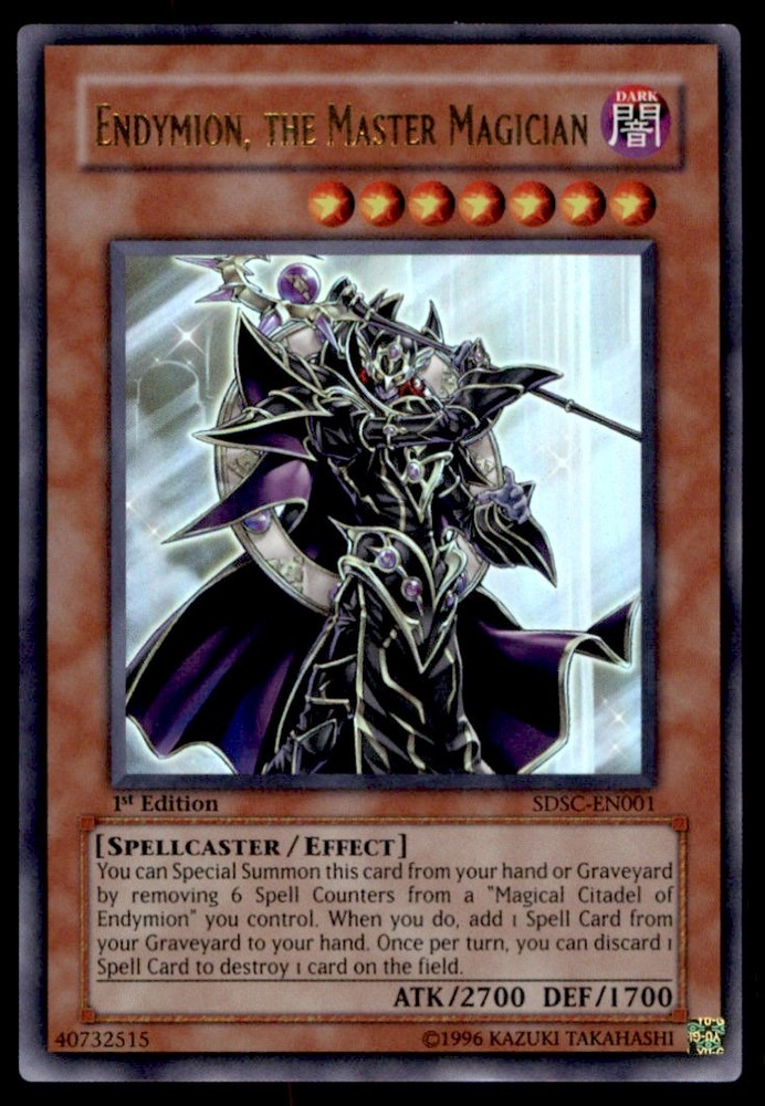 About Me Other Listings Feedback Add to Favorites Contact Me Bluenose 1996 Yu-Gi-Oh! Endymion, the Master Magician #SDSC-EN001 1st Edition Near Mint No stock photo / These are real scans or pictures Details Description: Endymion, the Master Magician Category: Yugioh Year: 1996 Product: Yu-Gi-Oh! Card Number: SDSC-EN001 Special: 1st Edition Near Mint Dimensions: 3¼" x 2¼" SKU: YU B0004 R01 R (29) Payment Payment for buy it now is required immediately and for auctions it must be paid within 72 hours. Shipping Shipments usually make their way out in 1-2 business days. Returns and Claims Please view listing photo and description prior to purchase of card to make sure the card and condition is right for you! About Us Please keep in mind the following conditions .-------------------------------------------Near Mint: a card that shows very little to no signs of ware or usage such as very little whiting. -------------------------------------------Light Play: A card that shows signs of ware such as but not limited to whiting, slight bend or scratches. -------------------------------------------Heavy Play: A card that shows signs of ware, whiting, bending, creasing, folding or other various issues.-------------------------------------------Damaged: a card in very bad condition can have some or all of the above mentioned condition notes including peeling, stains, writing, etc.-------------------------------------------The photo in ads are the EXACT card you will recieve. Listing By Kronocard trading cards software v2.8.2.3