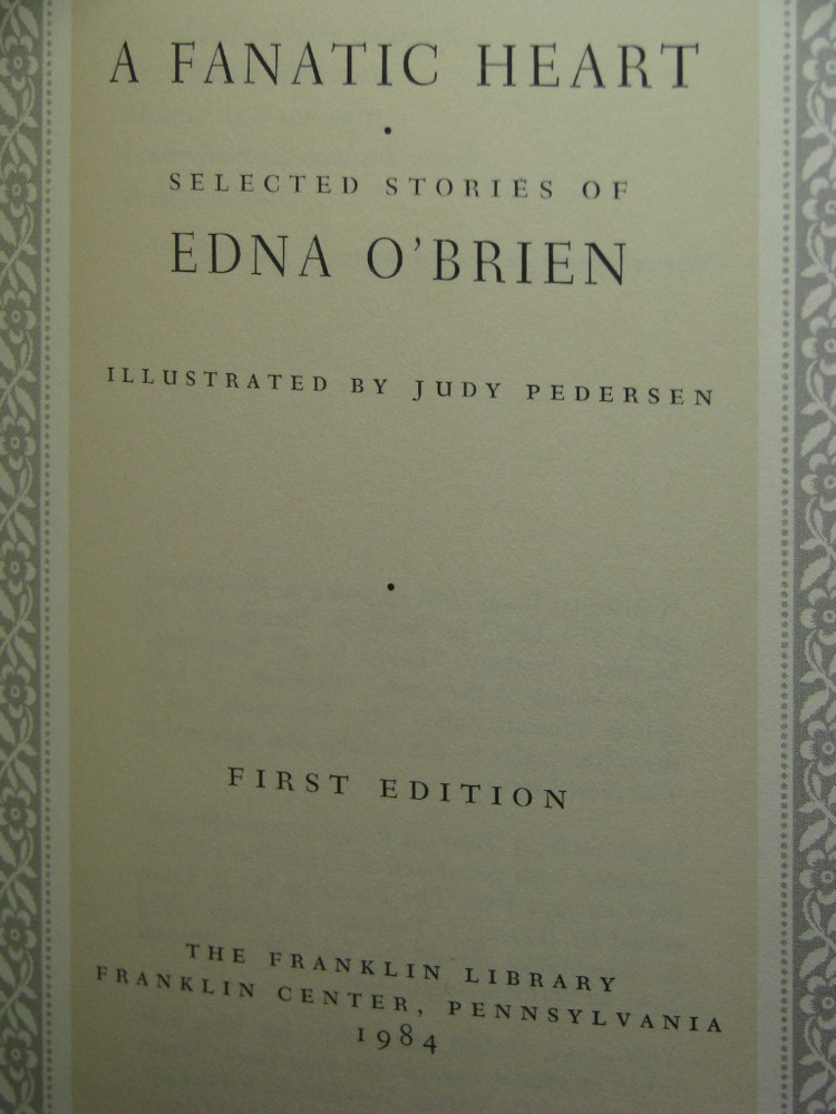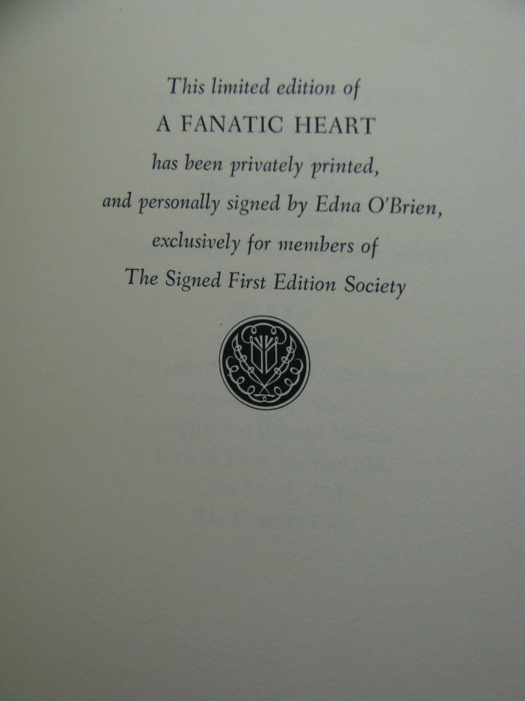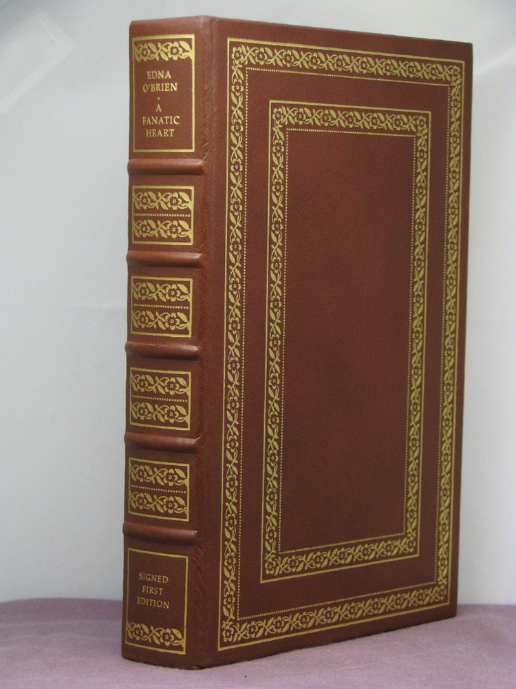 A Fanatic Heart by Edna O'Brien (signed) Foreword by Philip Roth Franklin Library First Edition Description: Leatherbound hardback book published by Franklin Library in 1984. Bound in top grade brown leather with 22kt gold lettering and cover artwork. Hubbed spine, acid neutral paper with page edges gilded, marbled endpapers, and a satin ribbon book mark sewn in. Collectors note laid in (not attached). Issued by Franklin Library signed by the author on a special signature page without inscription or personalization. Issued by Franklin Library to subscribers of the Signed First Edition Society. Synopsis: A collection of over 10 years of Edna O'Brien's short stories, including the entire volume of RETURNING, her 1981 collection that was published only in Great Britain, and four additional stories which appeared in The New Yorker between 1979 and 1981. Industry reviews: "These stories reveal a particular sympathy for internal exiles, the casualties of convention, but at their best the stories themselves are impersonal. the central character is usually a young girl, but it is her best friend or sister that takes the risks and pays the penalties. Although the girl looks on intently, in some way she is not involved." New York Times Book Review - Adam Mars-Jones (01/31/1985) Condition: Binding - very good, moderate scratching to the page edge gilding and one of the spine hubs is slightly bumped. Dust jacket - none, as issued. Our Business Policies: Use the Contact Seller link near the top of this listing to see our FAQs, which should answer most questions about our business and listing policies. We have moved the extensive text we used to have here to those FAQs. Shipping and Packing: General Information: We always ship in sturdy new boxes with premium heavy duty packing tape, bubblewrap and filler to keep the item(s) away from the sides of the box. The pictures below show the boxes that we use for shipping. A Note On Customs: When customs forms are required for a shipment, we fill them out honestly, stating that the contents are merchandise and giving the price you paid for the item (not including the shipping) as the value. Please do not ask us to do otherwise. Take any customs duty that you will have to pay into consideration before making your purchase. Please note that many countries have restrictions on the import of certain goods and sometimes on the maximum value that can be shipped to the country by various shipping methods. Priority Mail International insurance cannot be purchased for all countries and some limit the amount of insurance that can be purchased (default indemnity coverage seems to apply to all countries). Details on shipping conditions by country can be found on the United States Post Office web site.