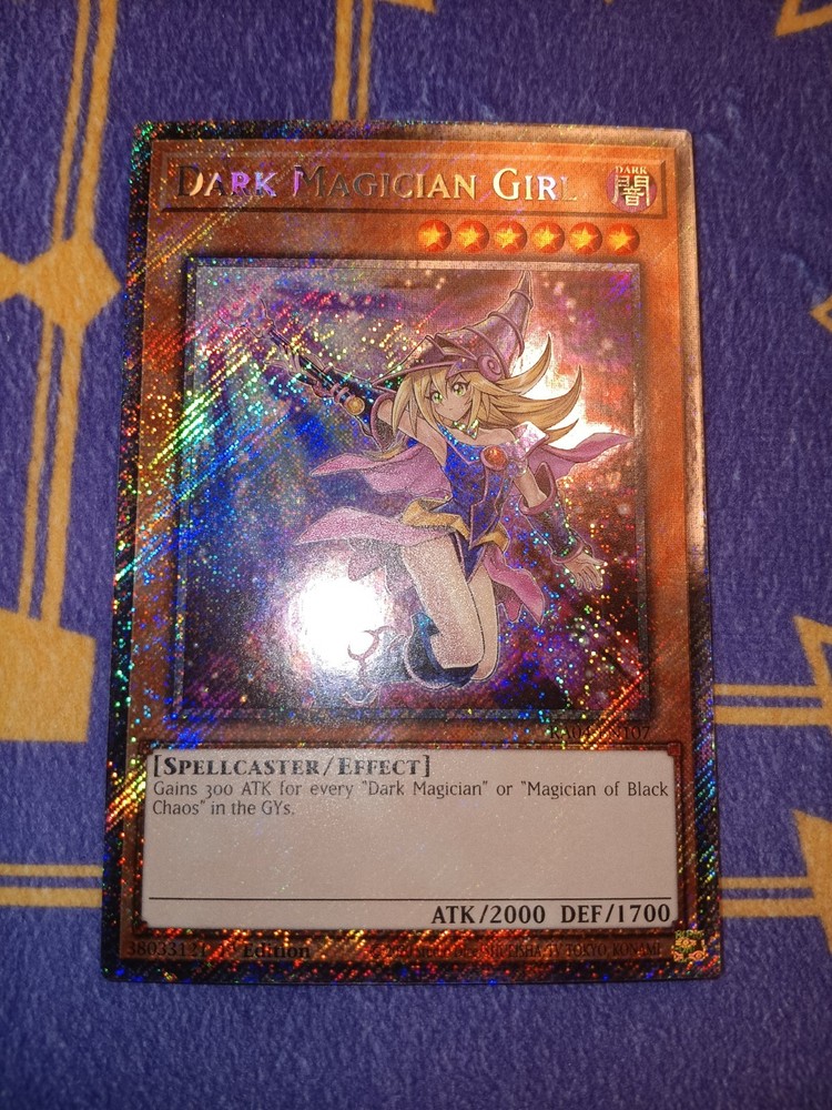 This Dark Magician Girl card is absolutely stunning—the platinum secret rare finish makes the artwork pop! The condition is flawless, just as pictured, and it’ll arrive safely in a top loader. A must-have for any Yu-Gi-Oh! collector, especially fans of this iconic character. Super happy with this purchase!