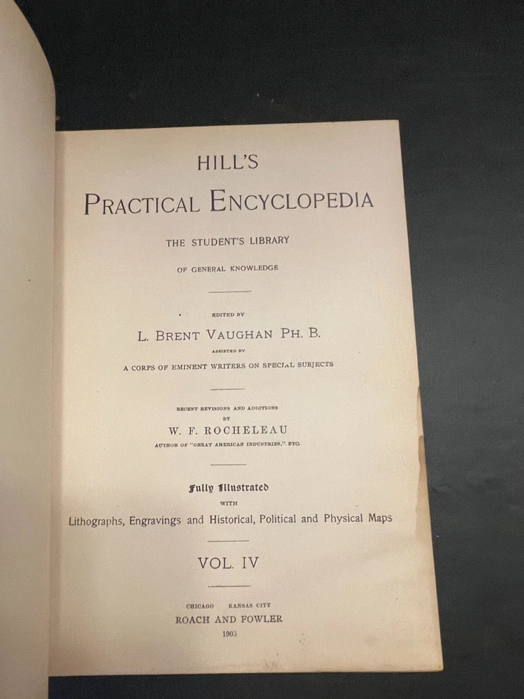Up for sell is 2 Hill's Practical Encyclopedia of General Knowledge Dated 1905. You will get Vol - III & IV. Pages are in good condition. Vol. III has 1 page that is no longer attached to the book. 1. We try to give the most accurate description as best as possible on all items we sale. Please look at all pictures and bid with confidence. We are more than glad to answer any questions that you might have. Item comes from a smoke free home. 2. Positive feedback will be left once we have received feedback. Please leave positive feedback once your item has arrived and you are pleased with your purchase. If there is a problem of any kind let us know and we will strive to make things right. 3. If you are bidding on more than 1 item, please let us know when all auctions you are bidding on end. Once all auctions have ended request an invoice and we will combine shipping on all your new treasures. 4. When purchasing more than 1 item from our store place all items in your cart and then click on request invoice. We will send an invoice with combine shipping. 5. We gladly accept returns; however, items must be returned in the stated condition as listed in the auction and must be returned in the original shipping box /bubble envelope it was received in along with all packing material to include bubble wrap, packing peanuts etc. If item came wrapped in cardboard, it must be returned in the original cardboard it was received it. Items returned damage will not receive a refunded.